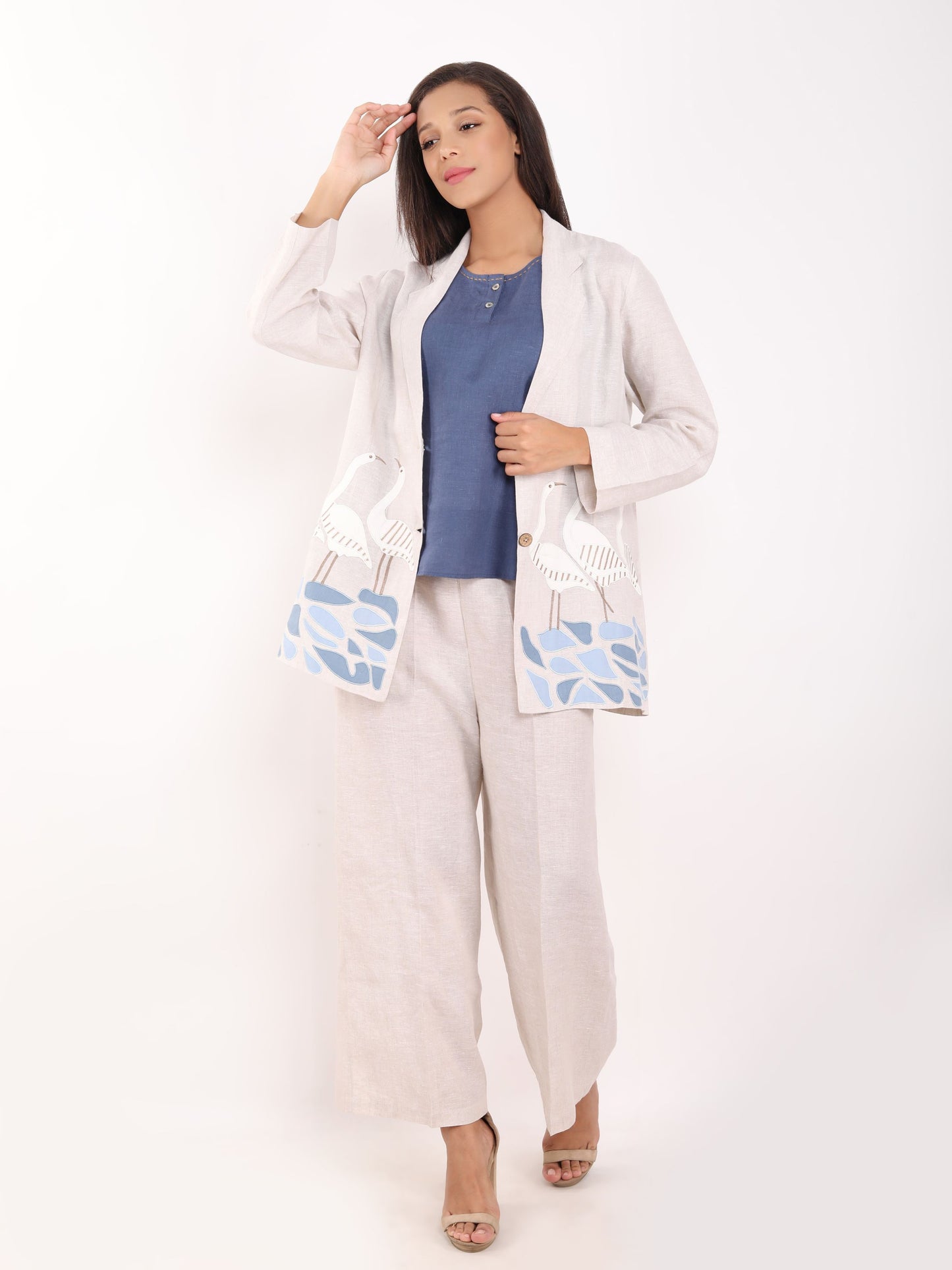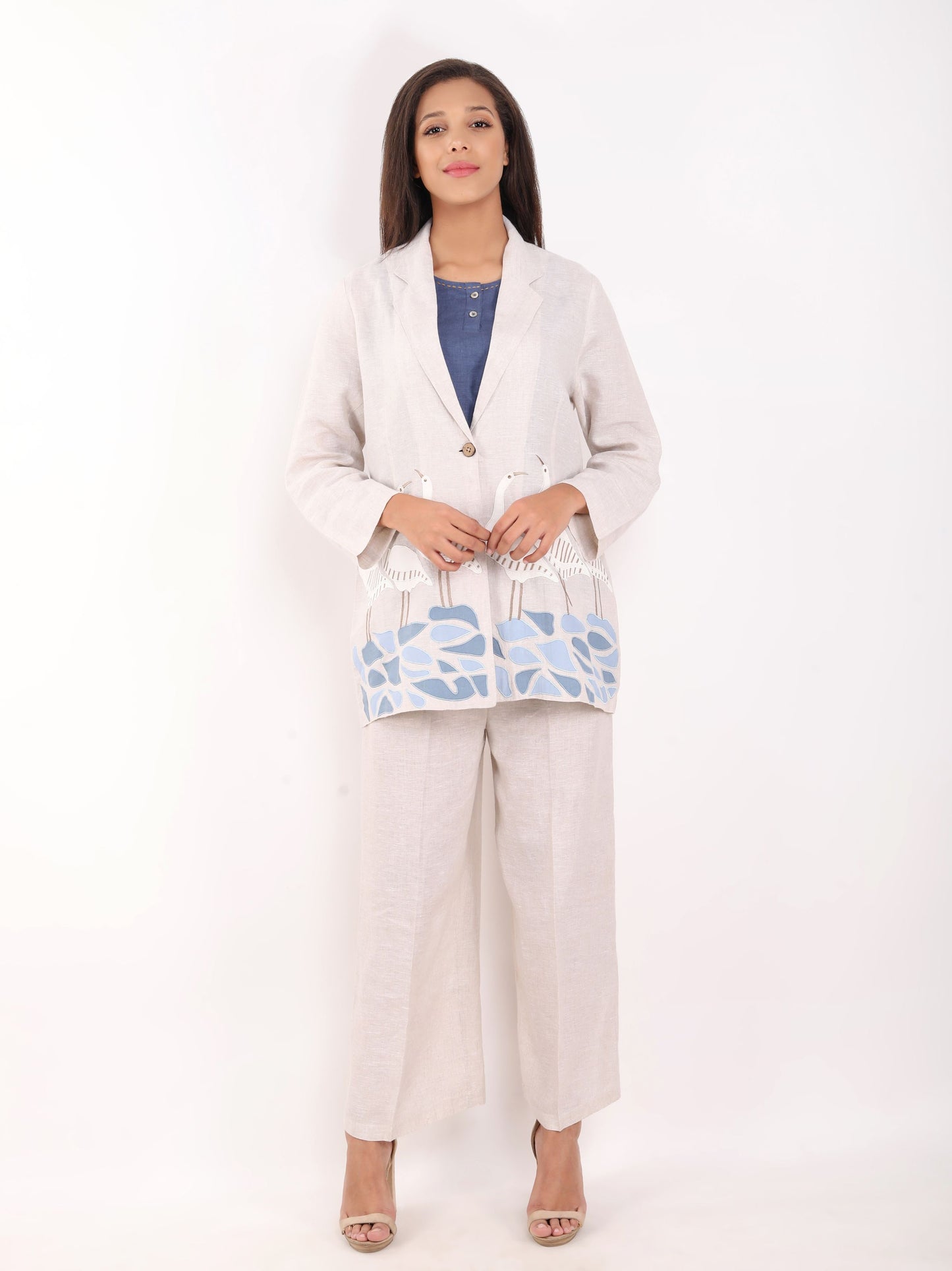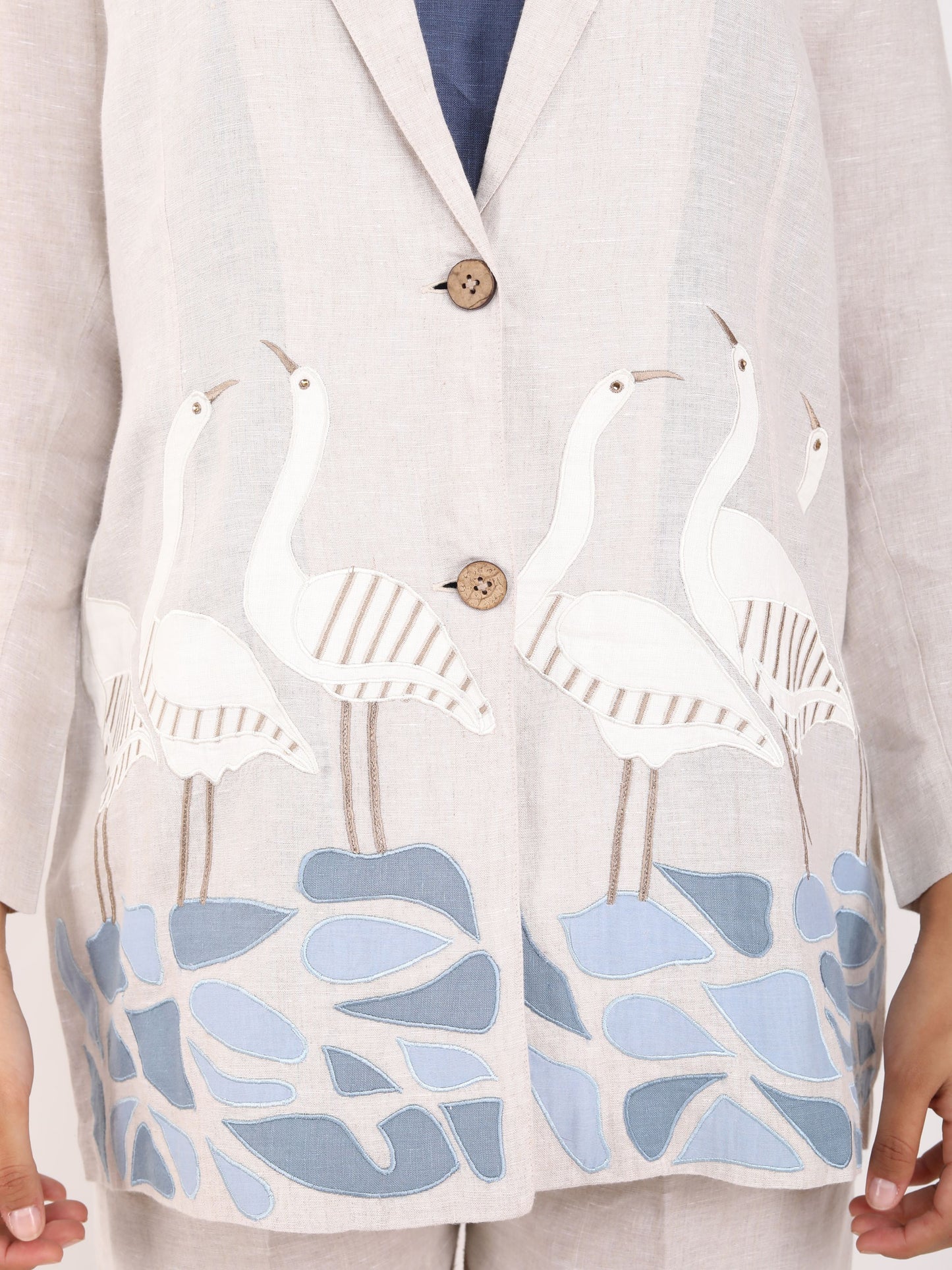 Beige Swan Embroidered Blazer