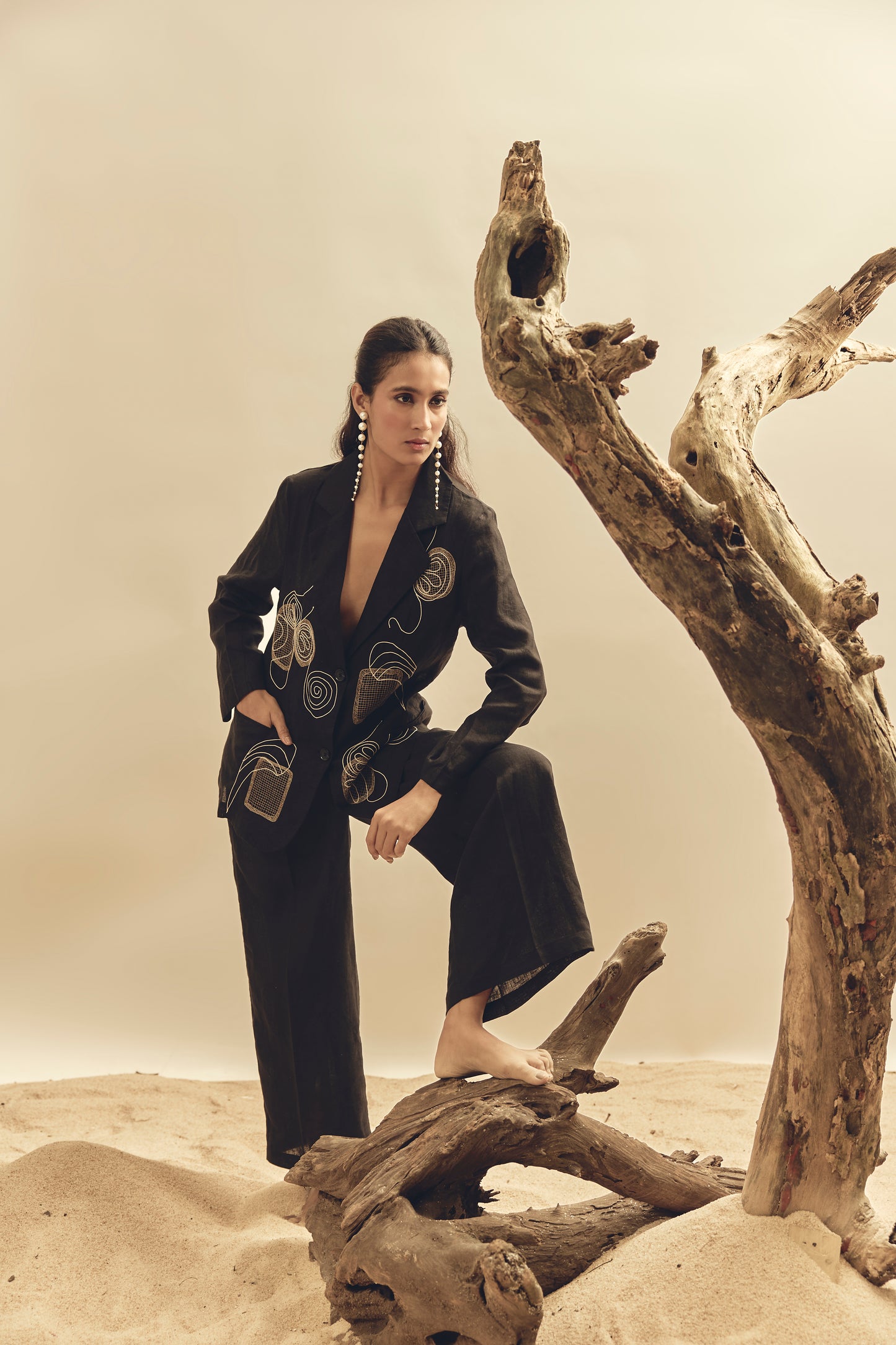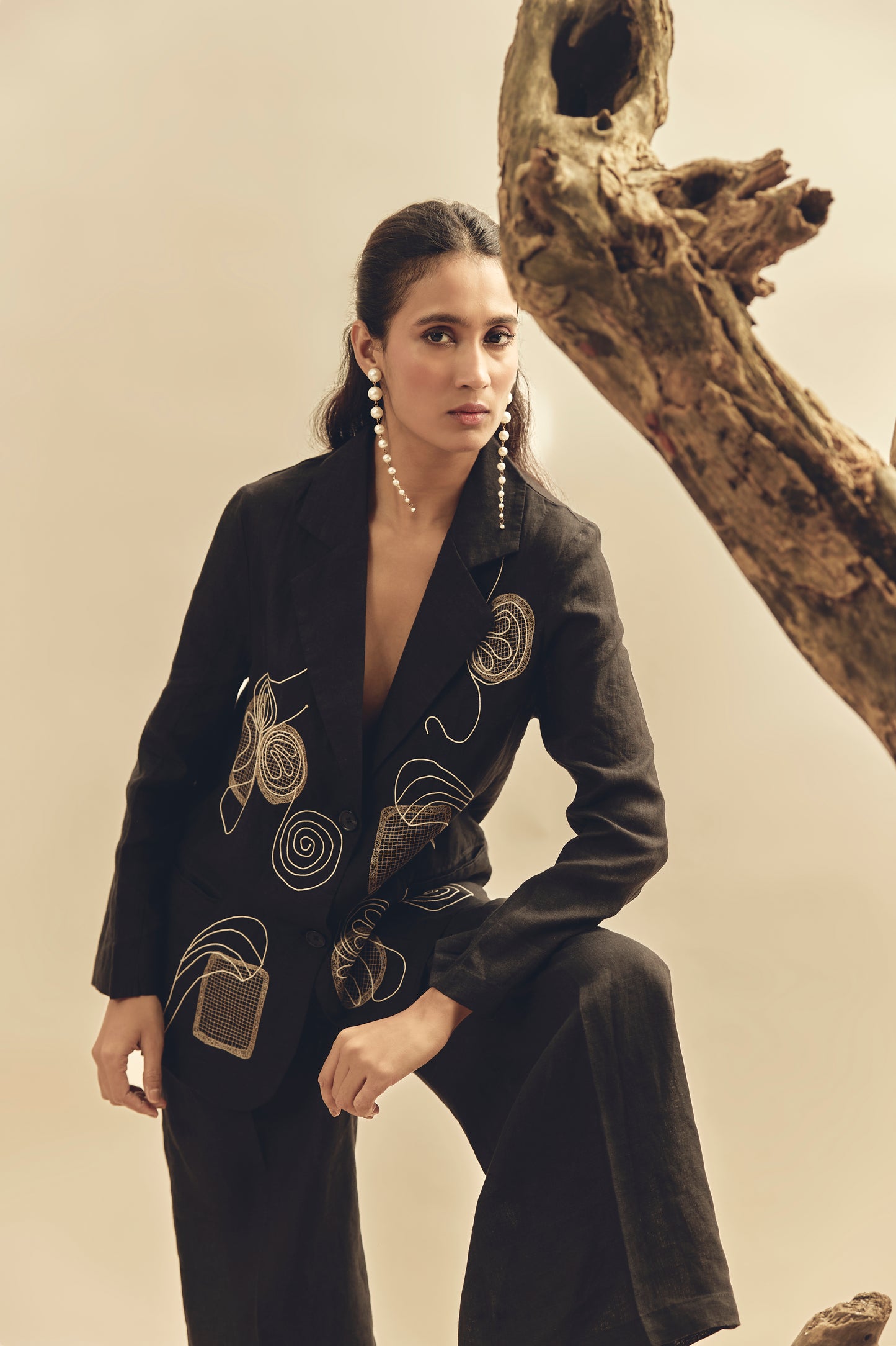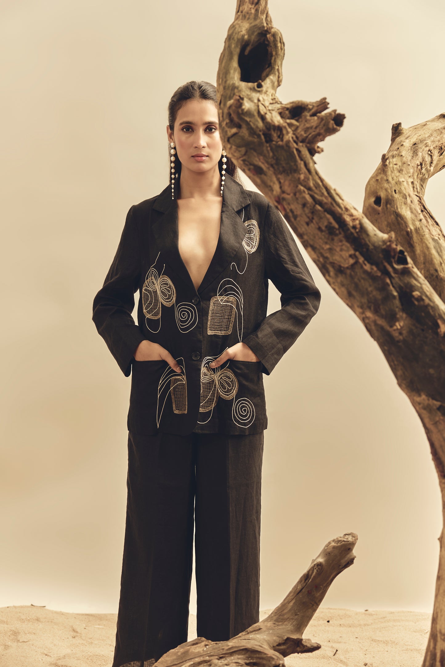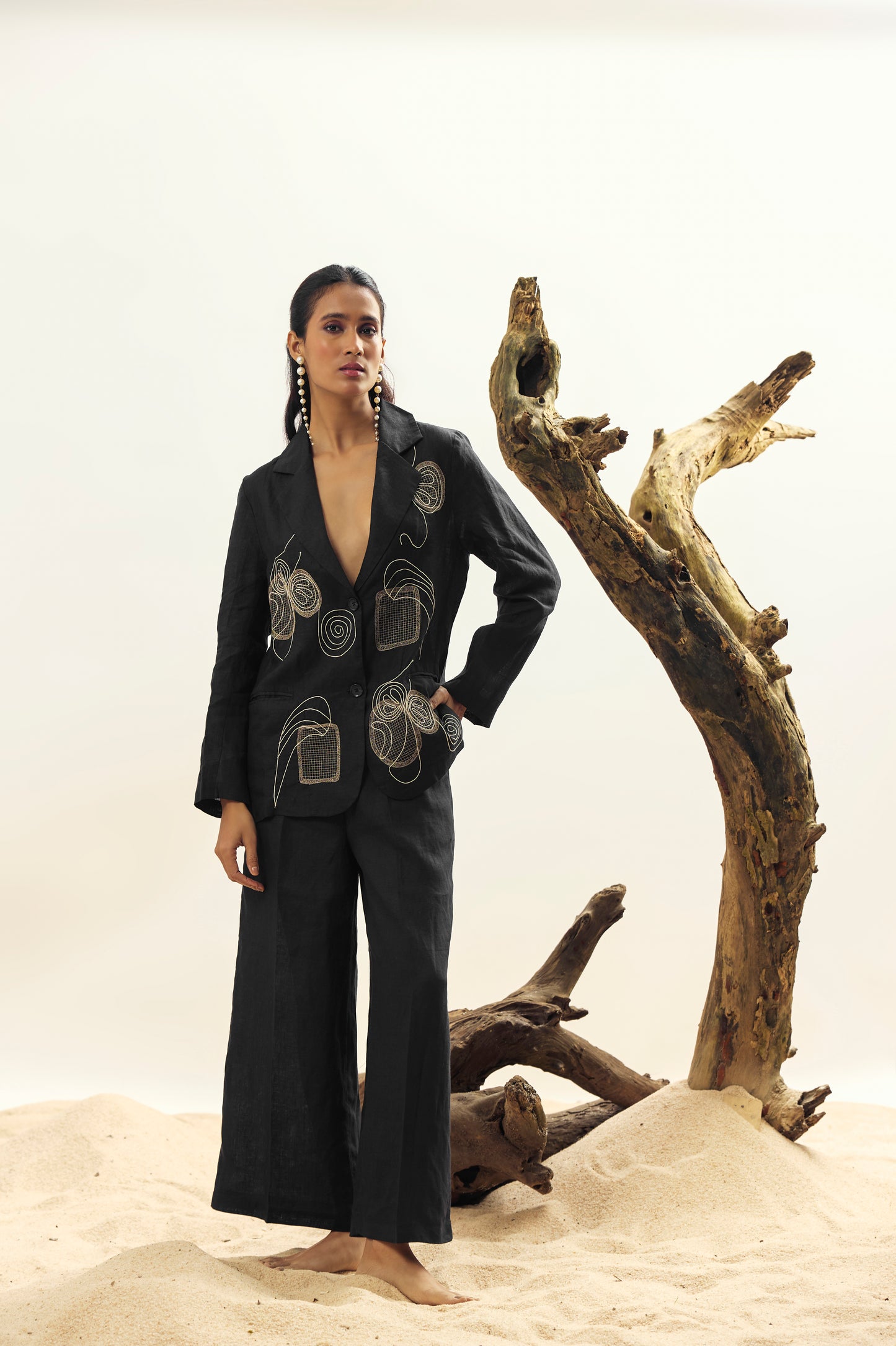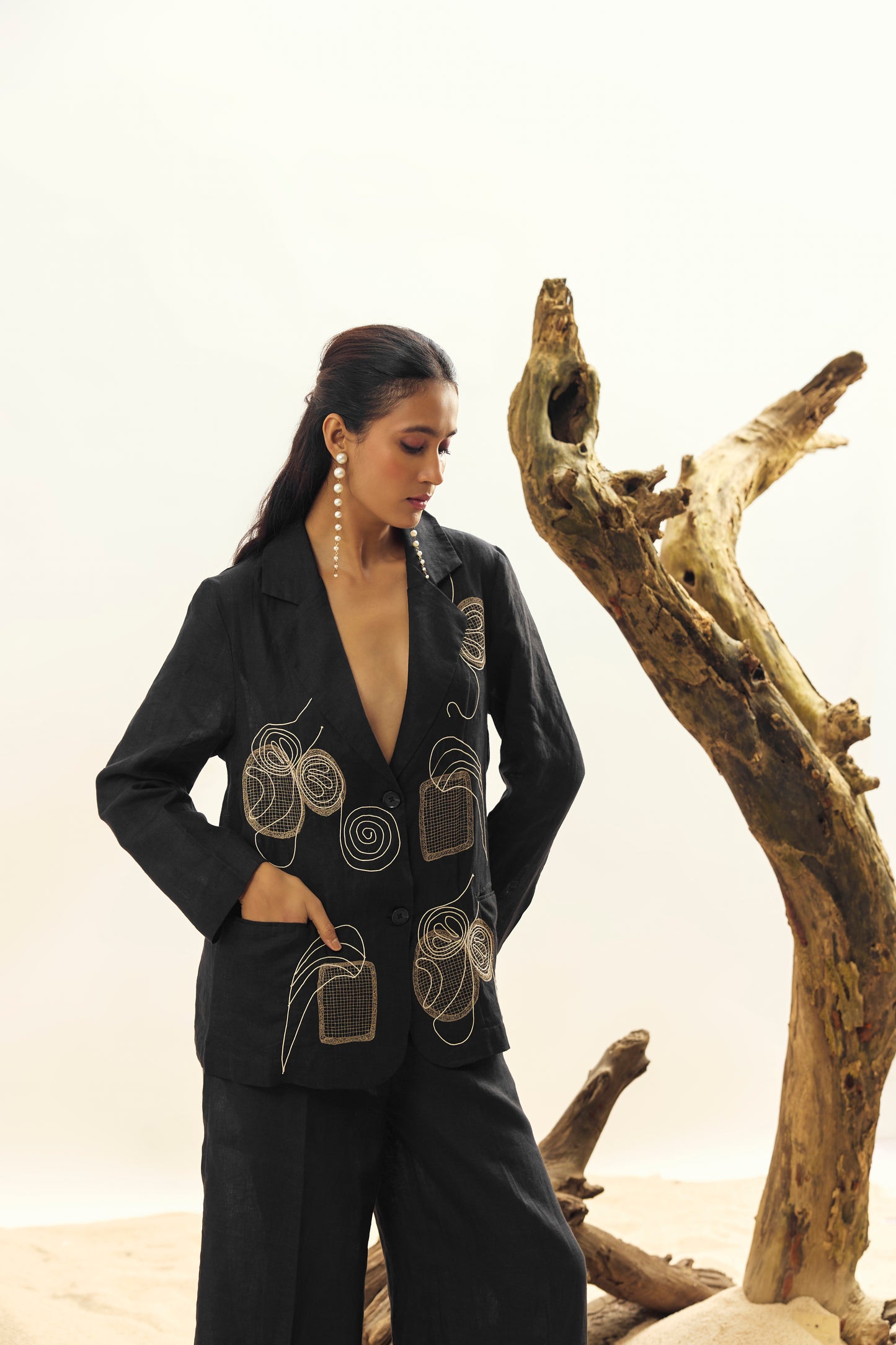 Elevate your look with our Black Mesh Blazer, crafted from breathable 100% Irish linen. Featuring a modern mesh design, this blazer combines sophistication with lightweight comfort—perfect for chic layering in any season.