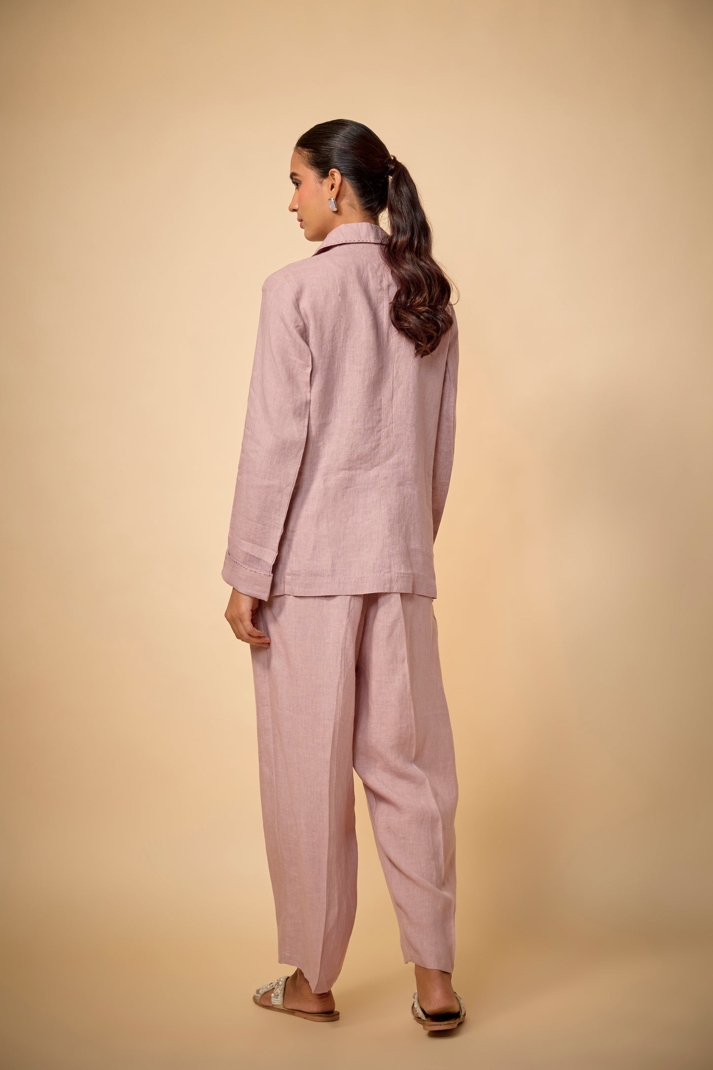 Pure Linen Pink Travel Embroidered Blazer Tailored From 100% Pure Irish Linen For A Refined Yet Breathable Feel. Designed For Effortless Travel Dressing, This Lightweight Blazer Features Delicate Embroidery And A Soft Pink Hue, Offering Comfort, Polish, And Easy Elegance For Warm-Weather Layering.