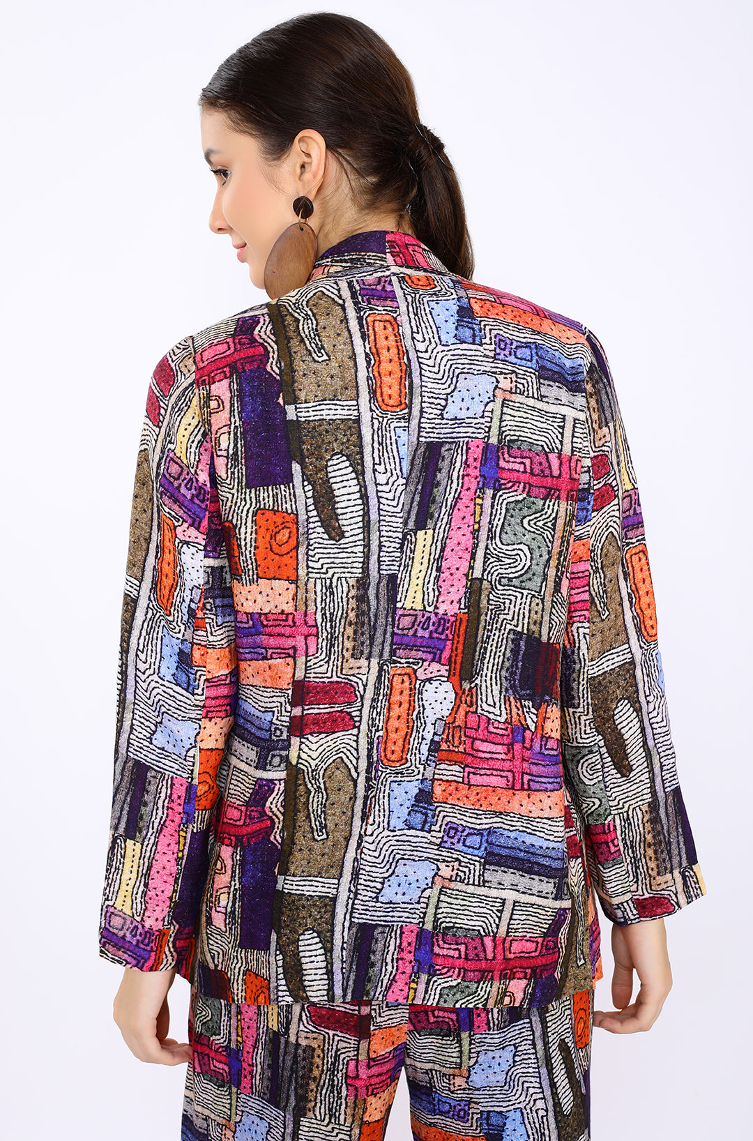 Digital Print Blazer And Pants With Elasticated Back Made In 100% Linen With Super Soft Hand Feel And Relaxed Fit.