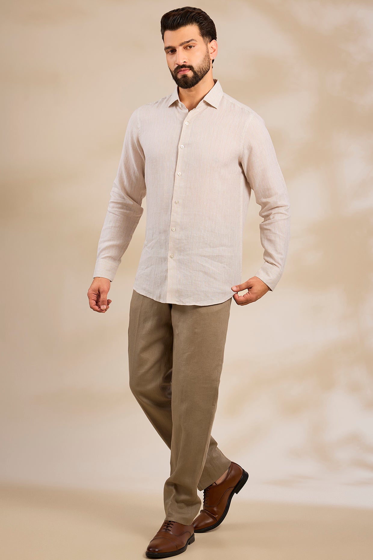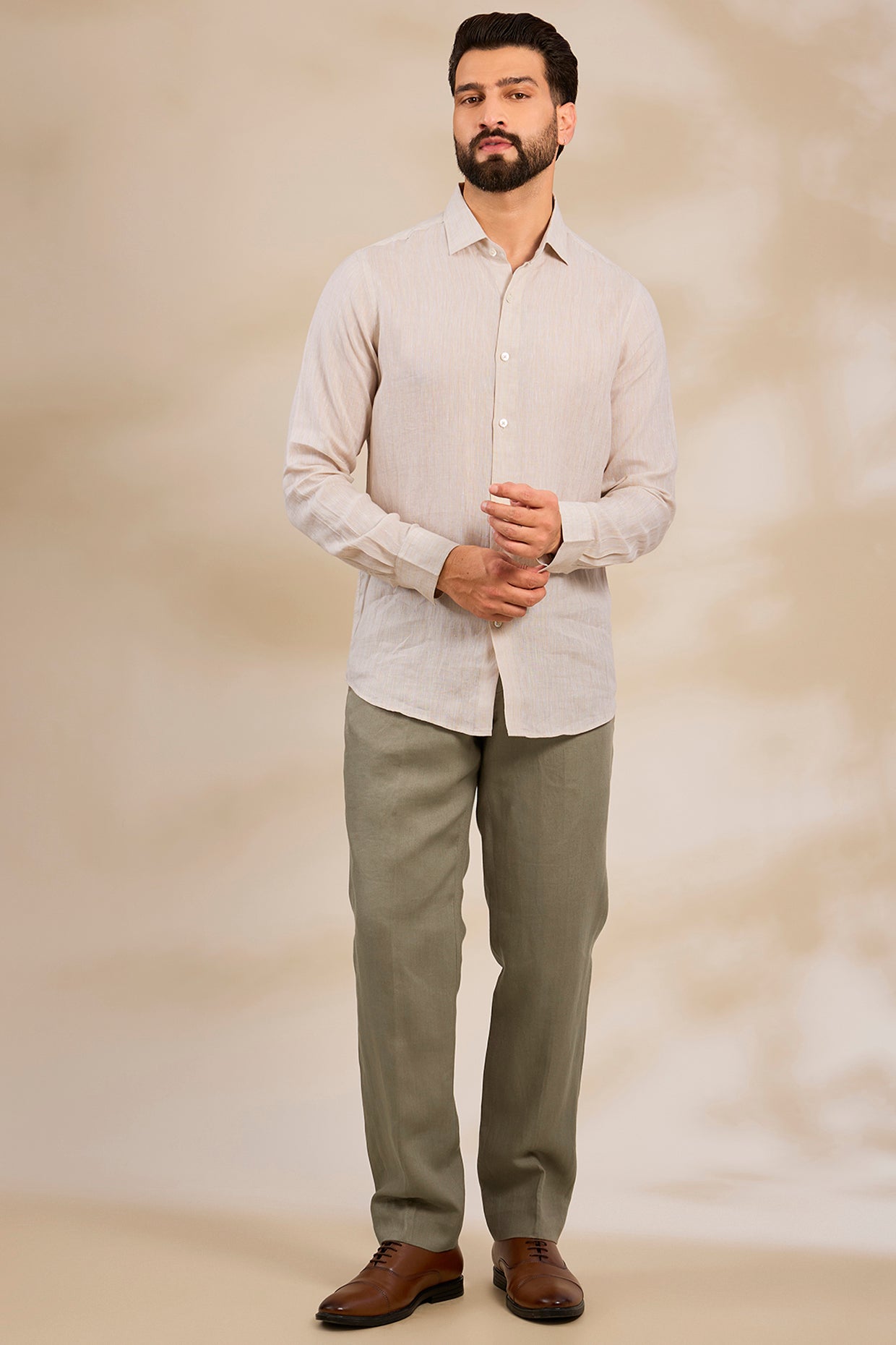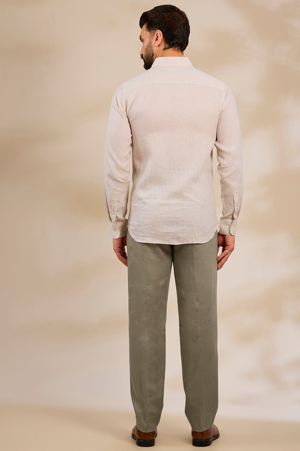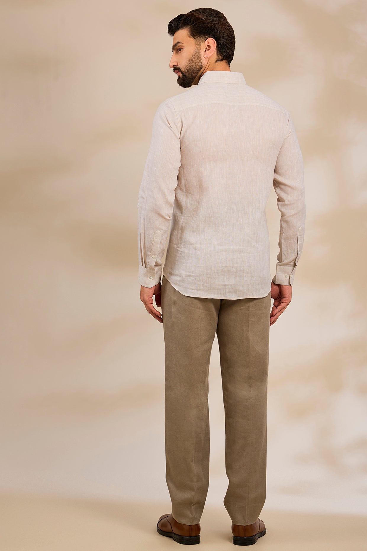 Pure Irish Linen Men'S Classic Beige Shirt