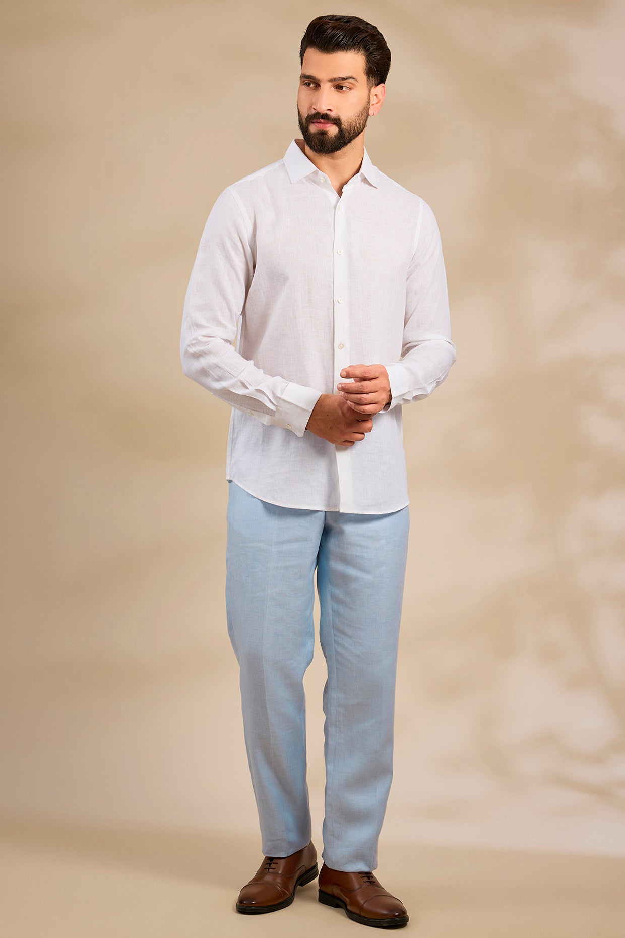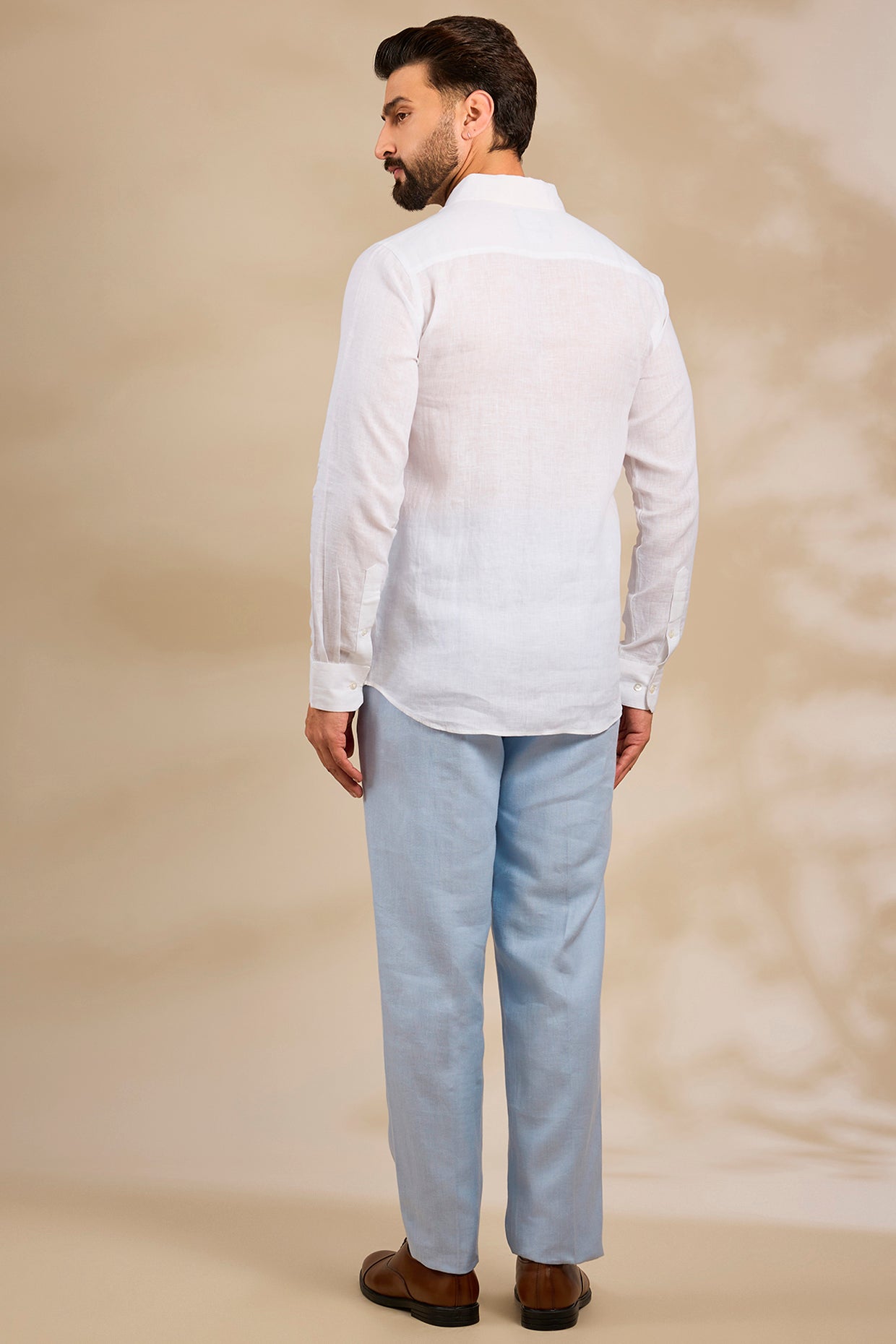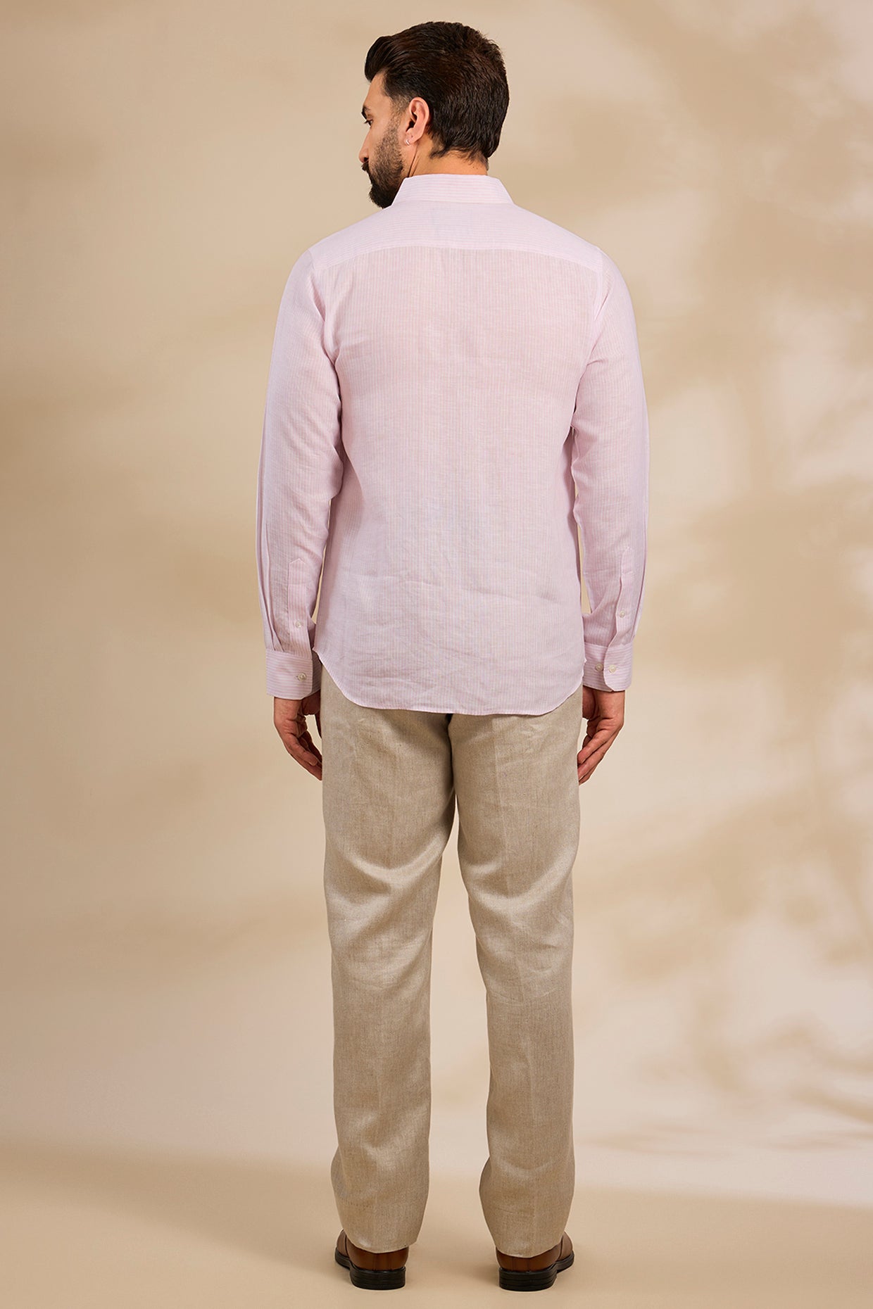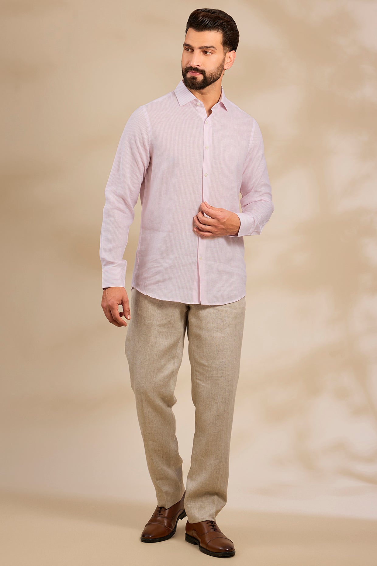 Pure Irish Linen Men'S Classic Beige Shirt