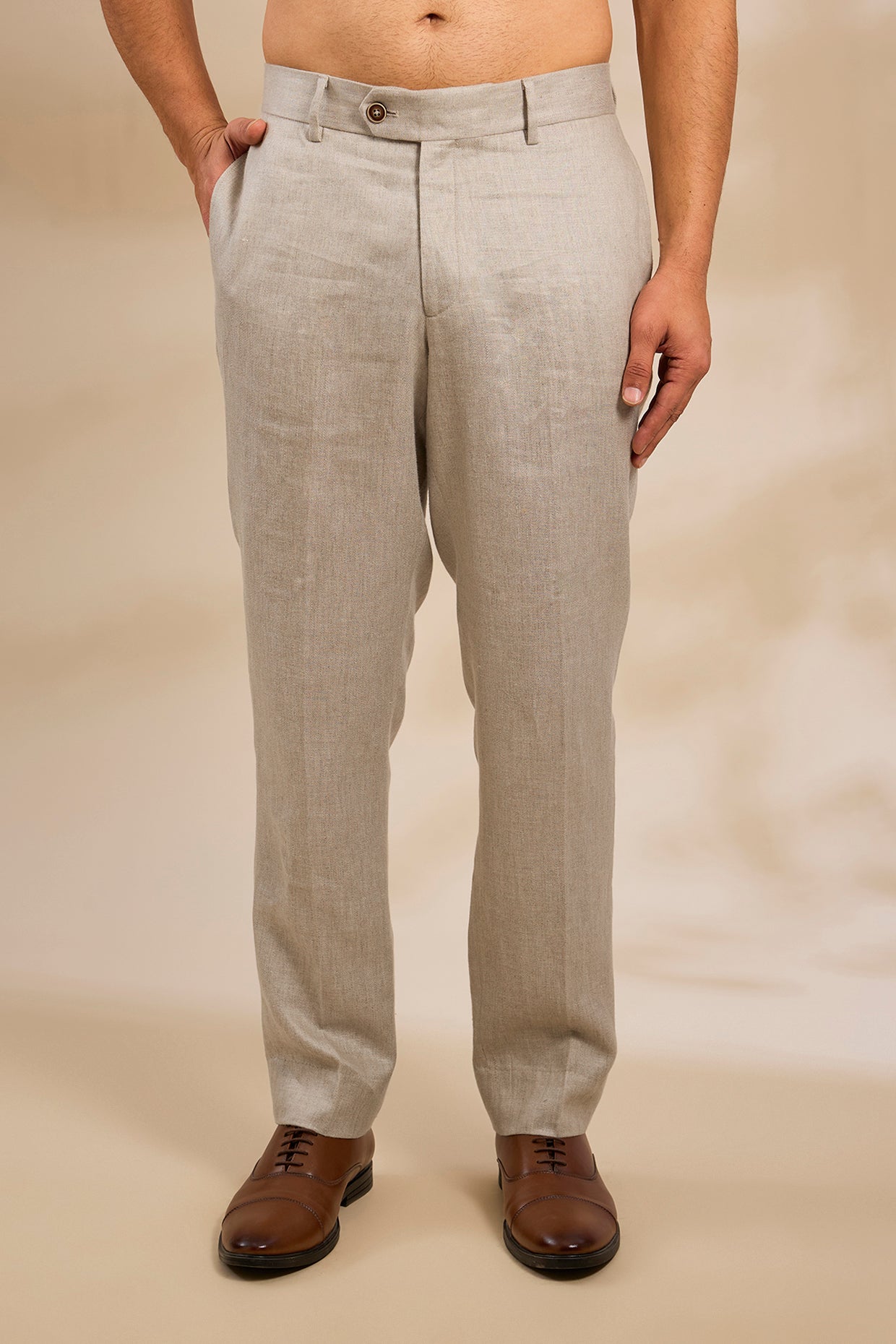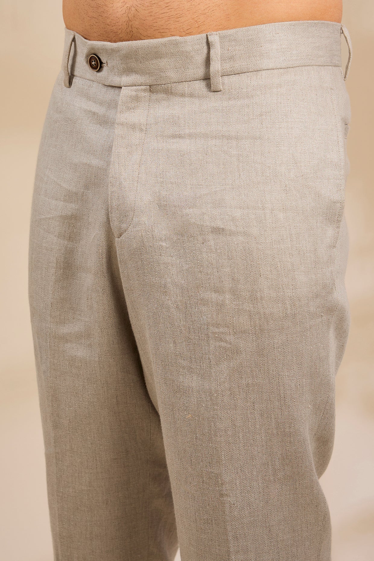 Pure Irish Linen Men'S Classic Beige Trousers