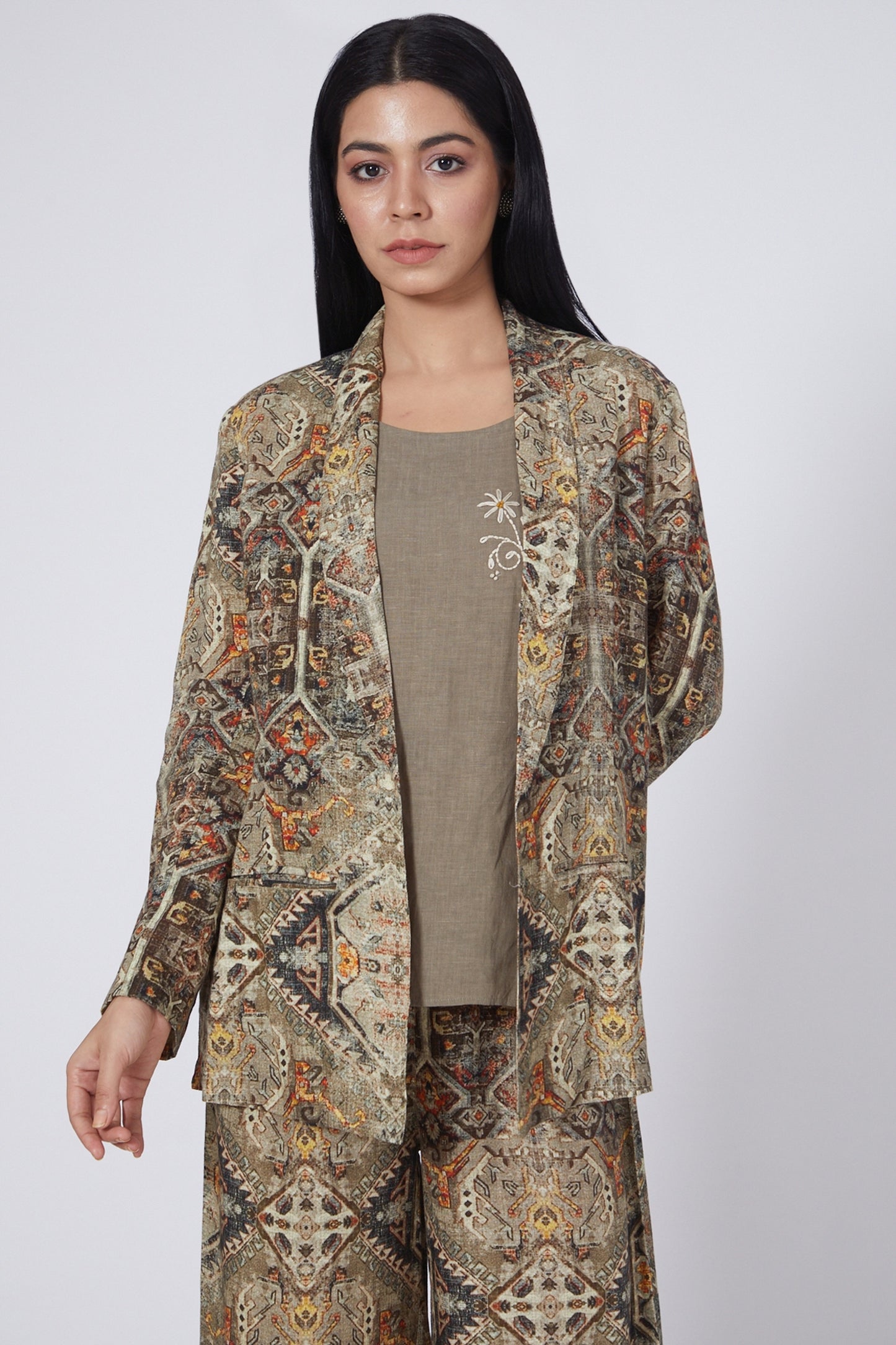 Aztec Print Blazer Digitally Printed. Pants Have Elasticated Back And Relaxed Fit