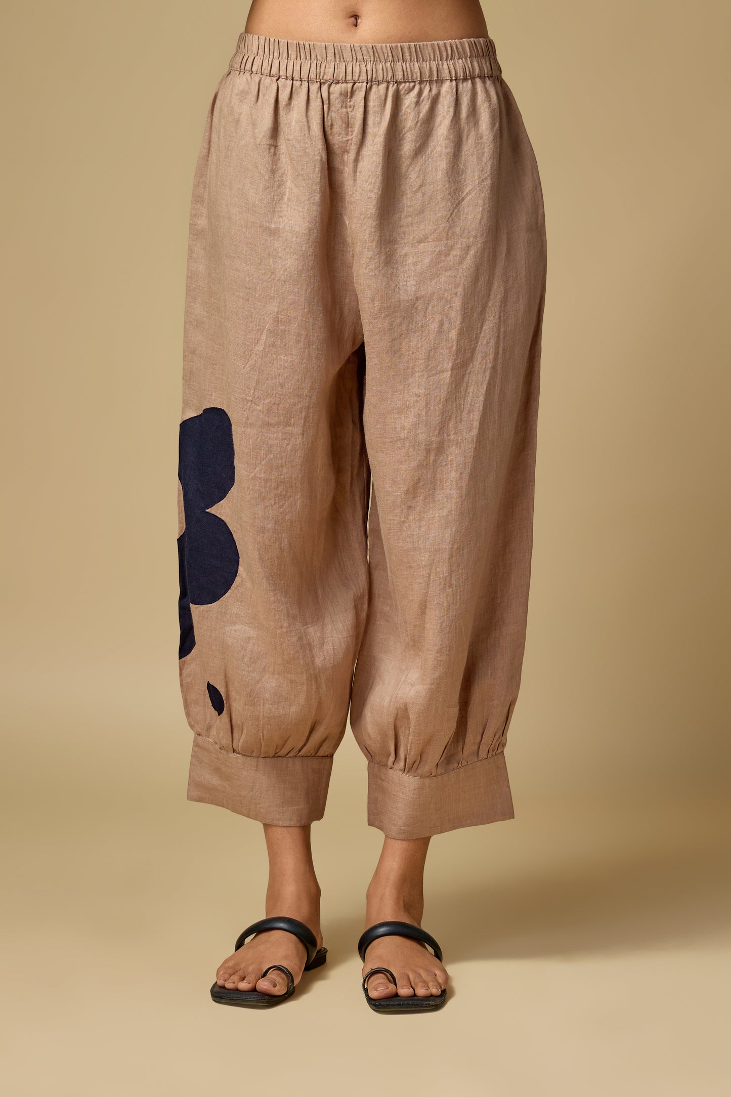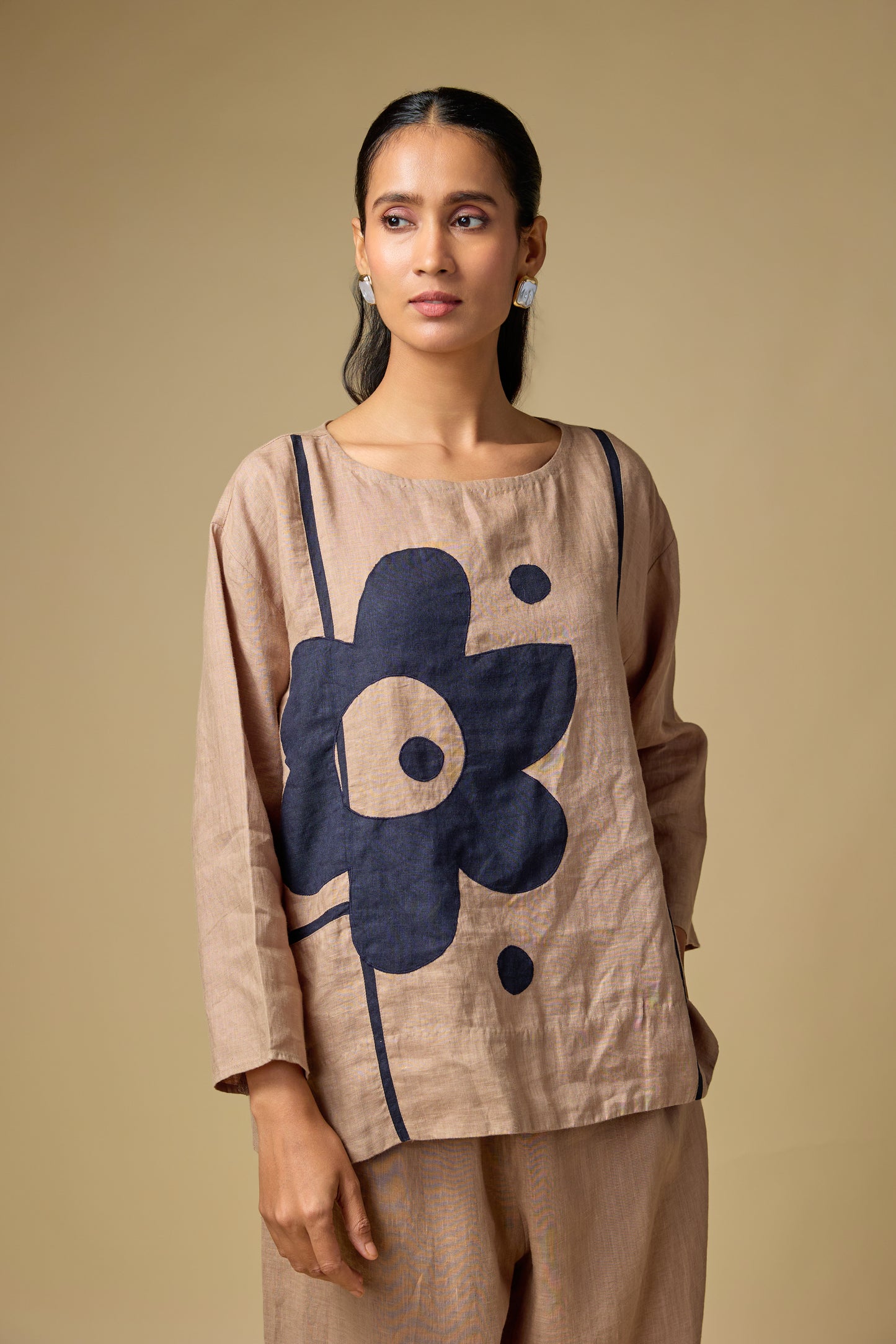 Pure Linen Khakhi Floral Co-ord Set