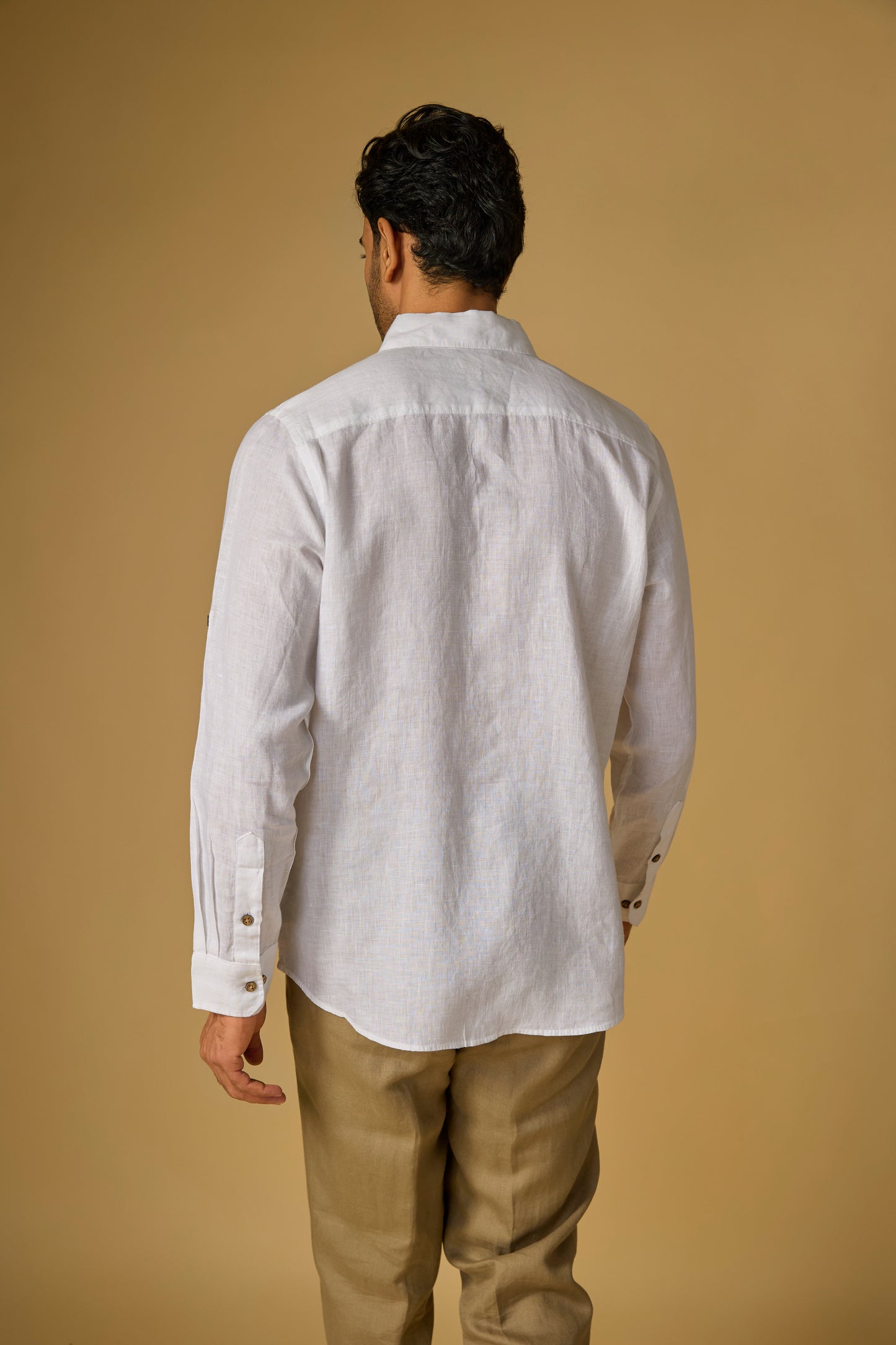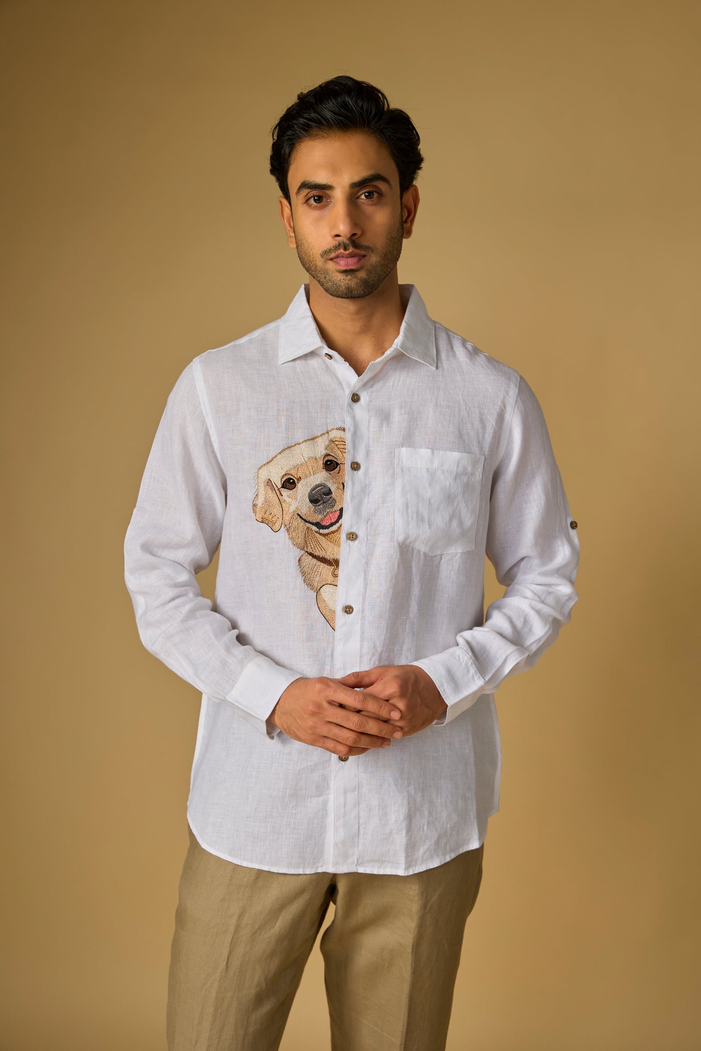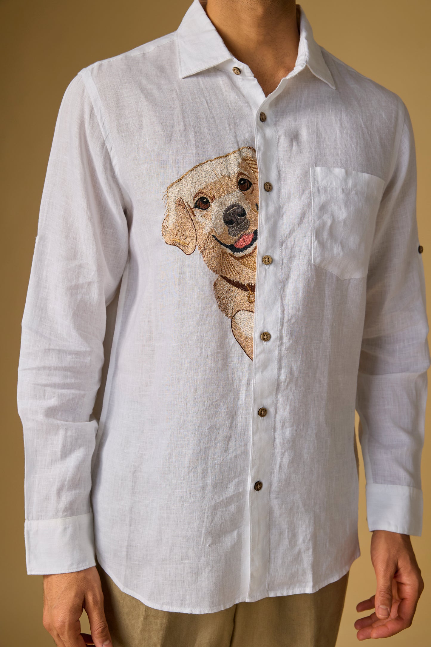 Pure Linen White Golfer Teddy Embroidered Shirt