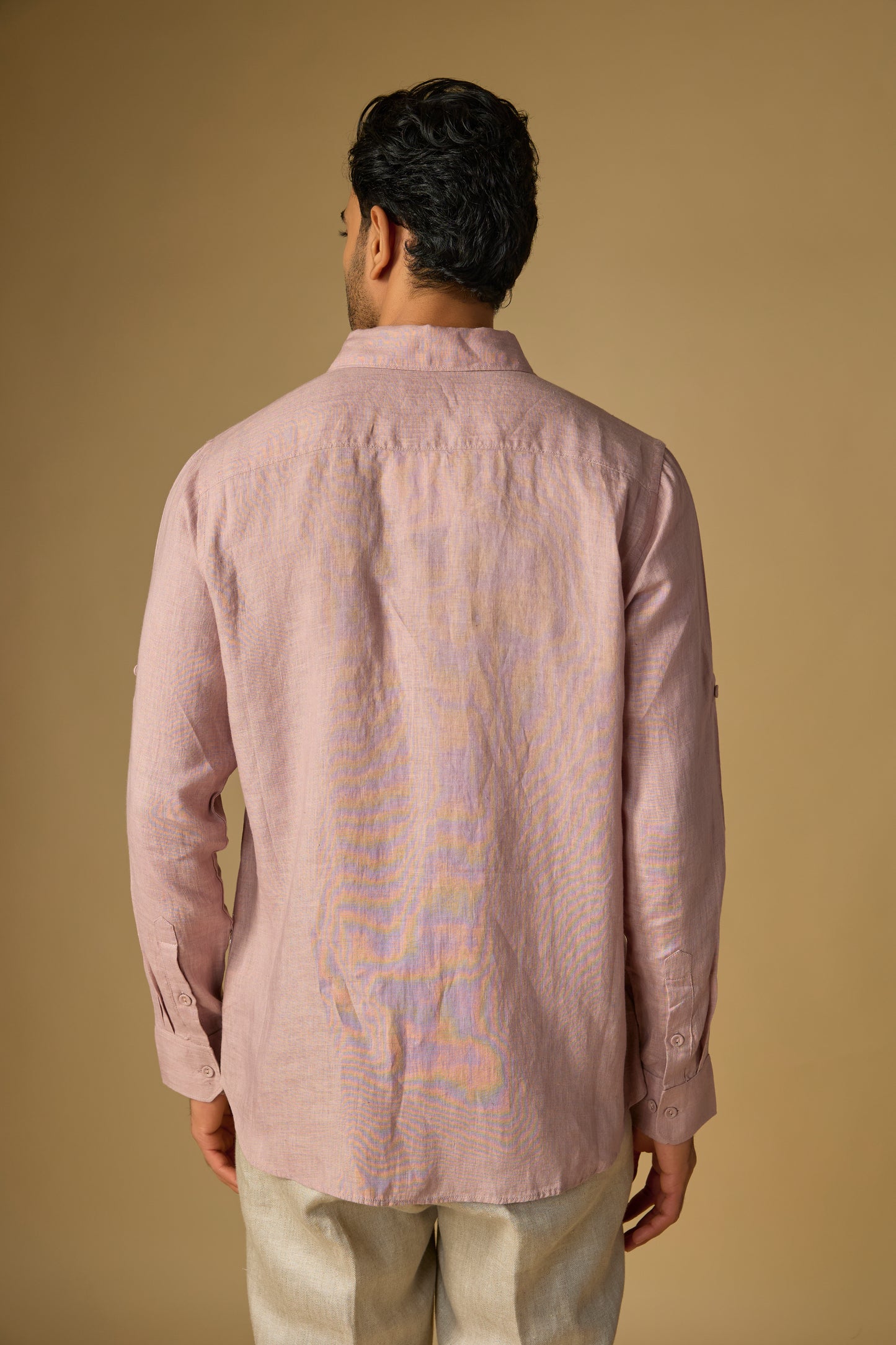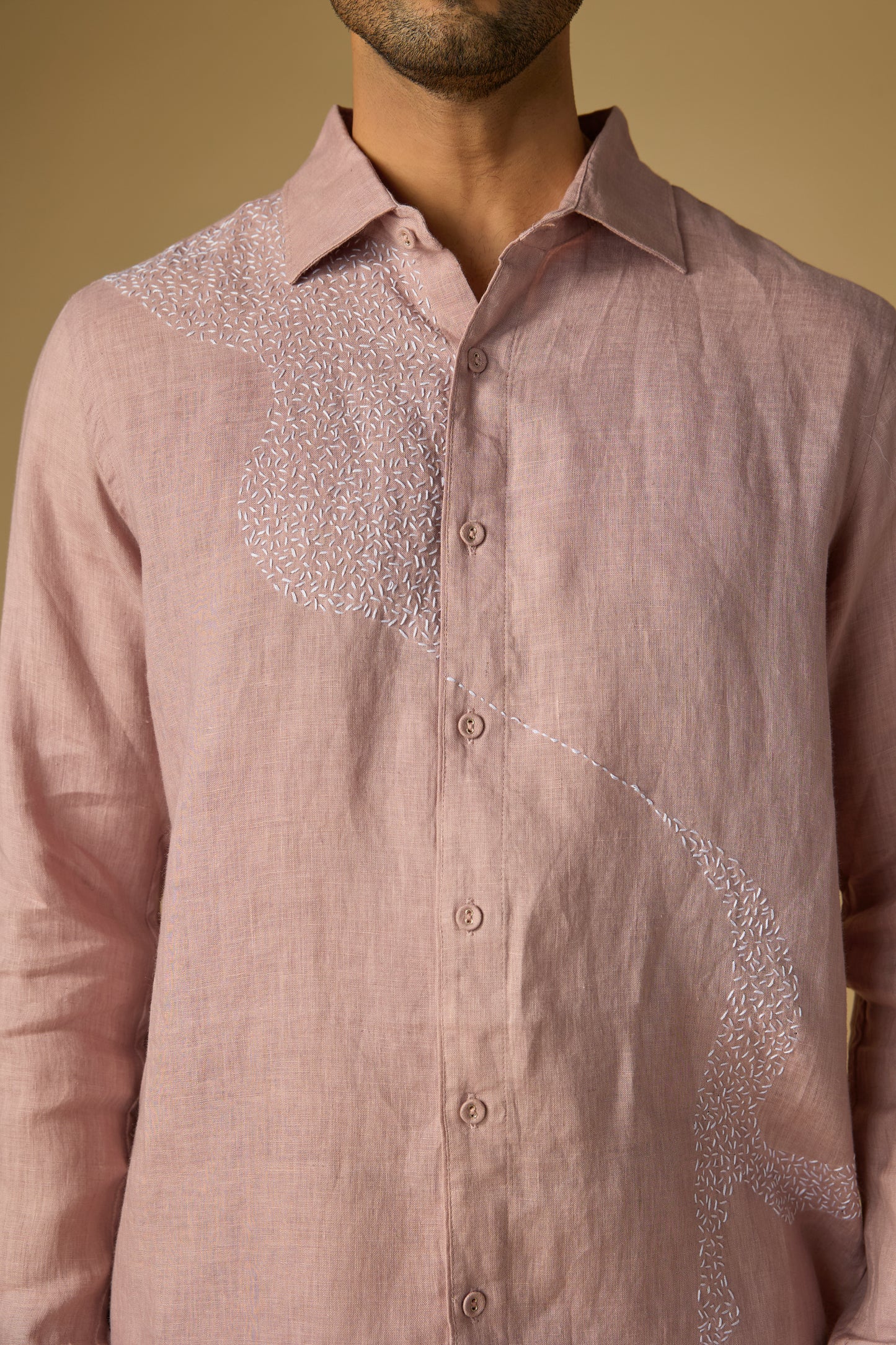 Pure Linen Pink Kantha Work Embroidered Shirt