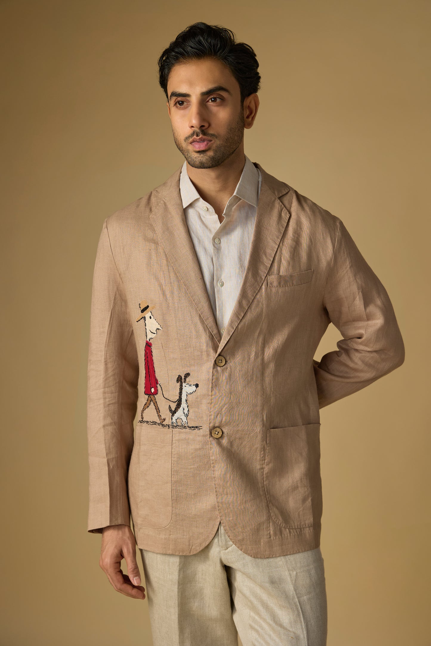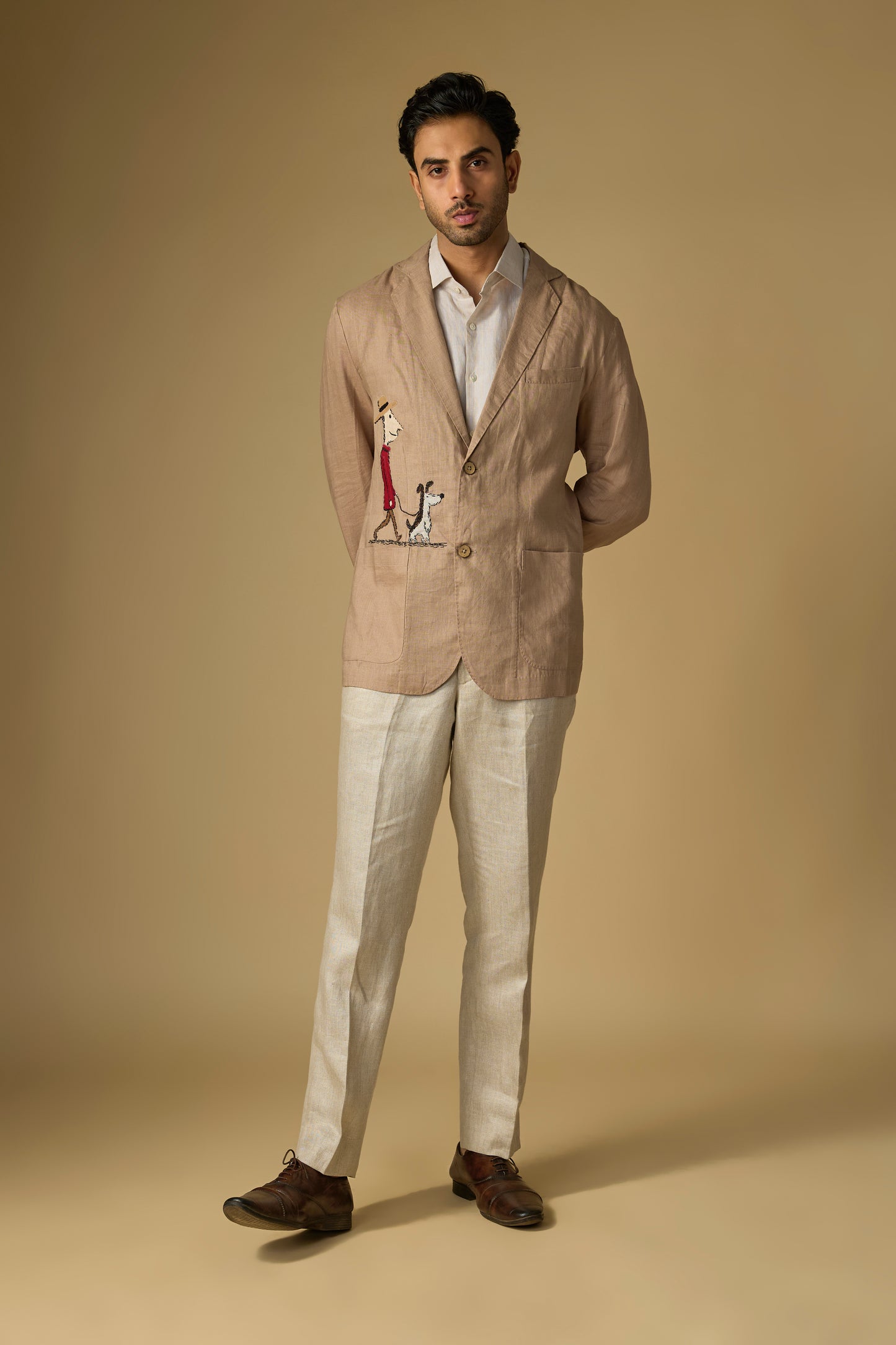 Pure Irish Linen Men'S Classic Khakhi Blazer