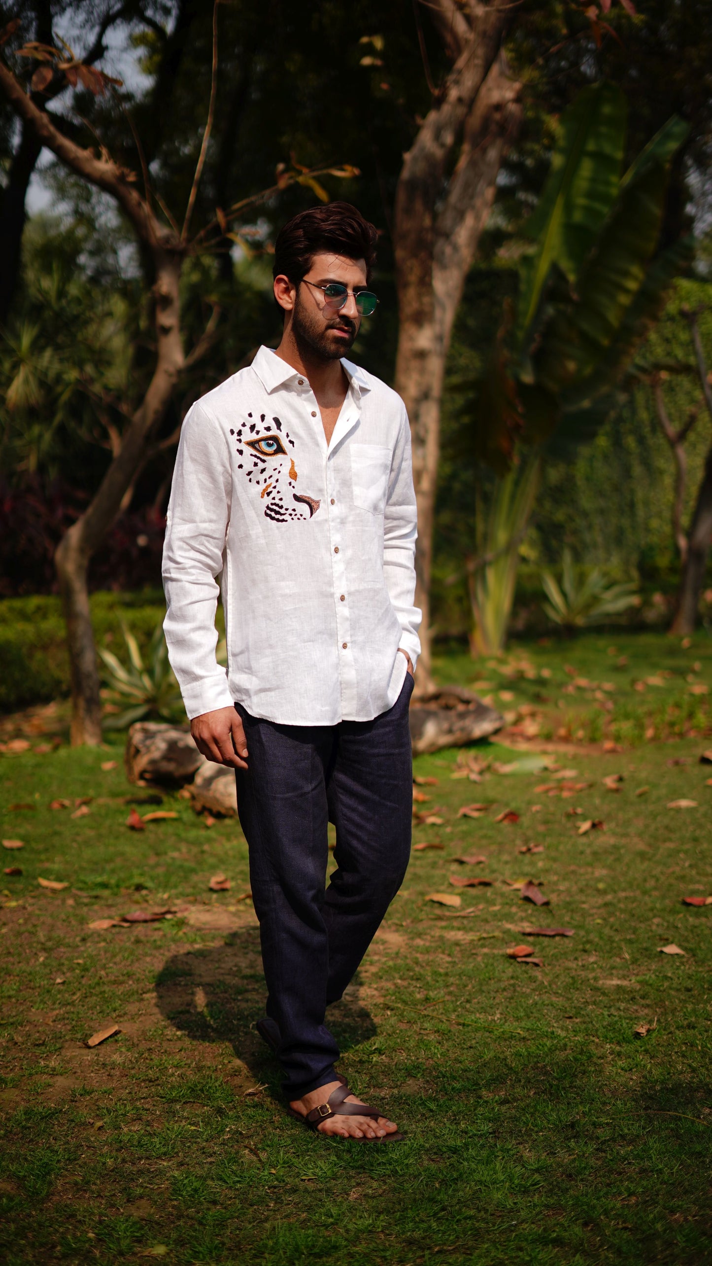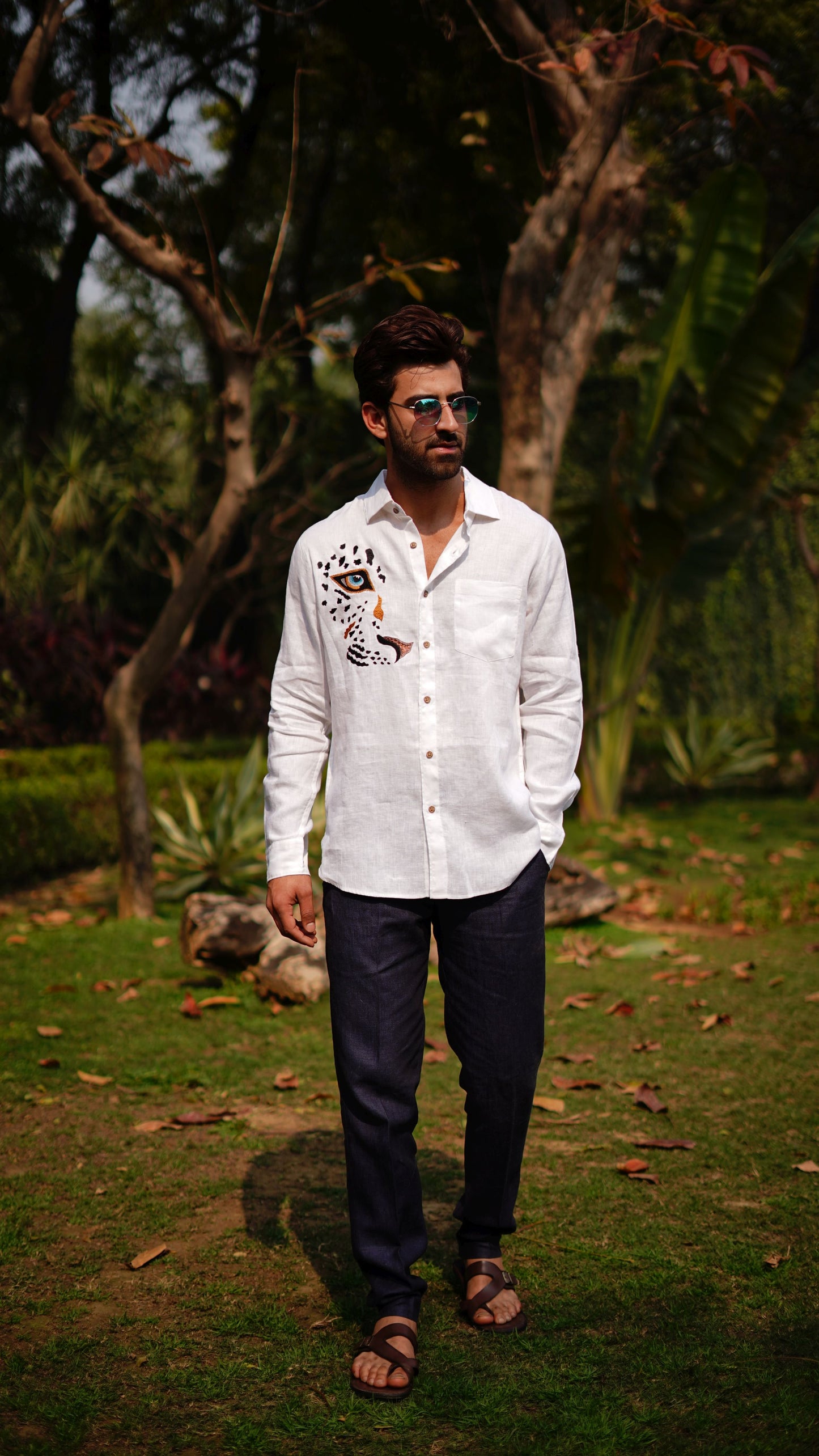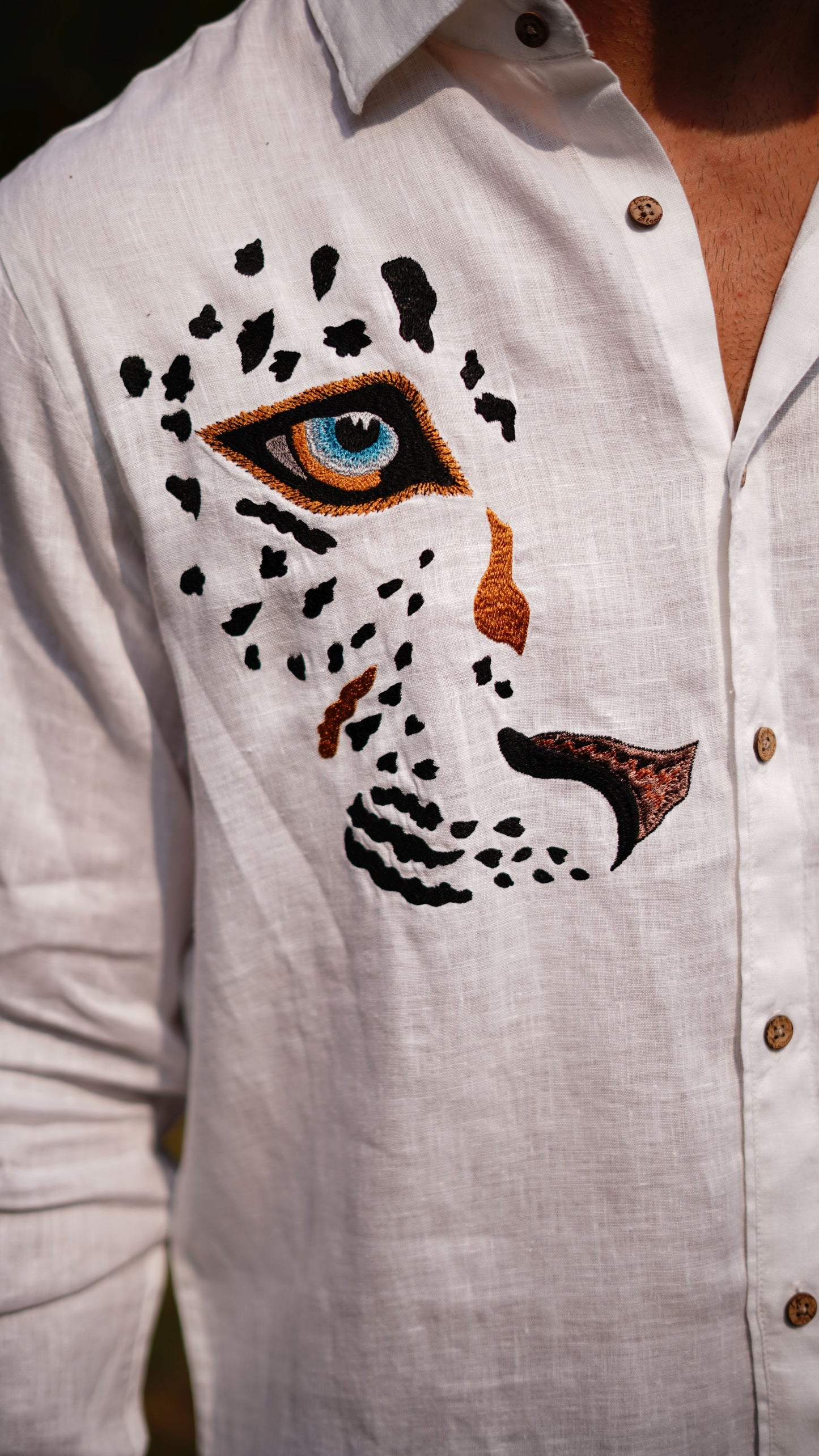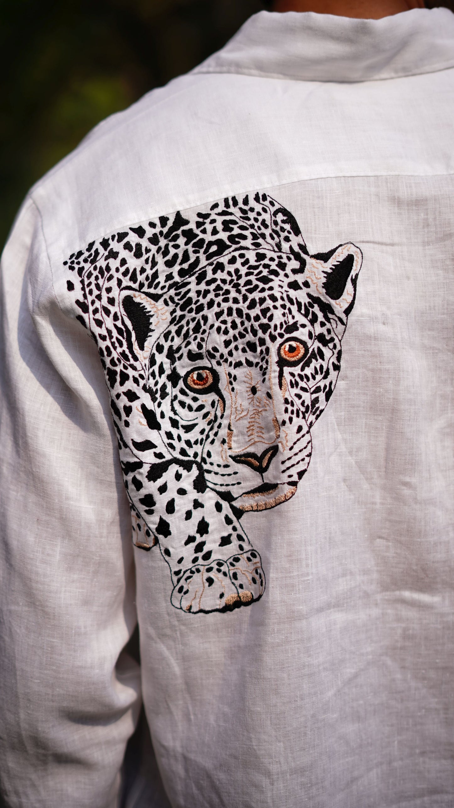 WHITE LEOPARD FRONT AND BACK EMB SHIRT
