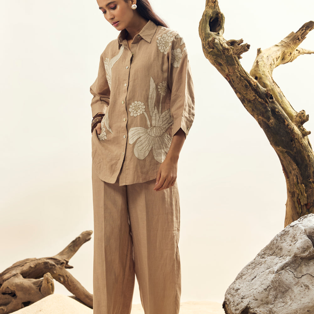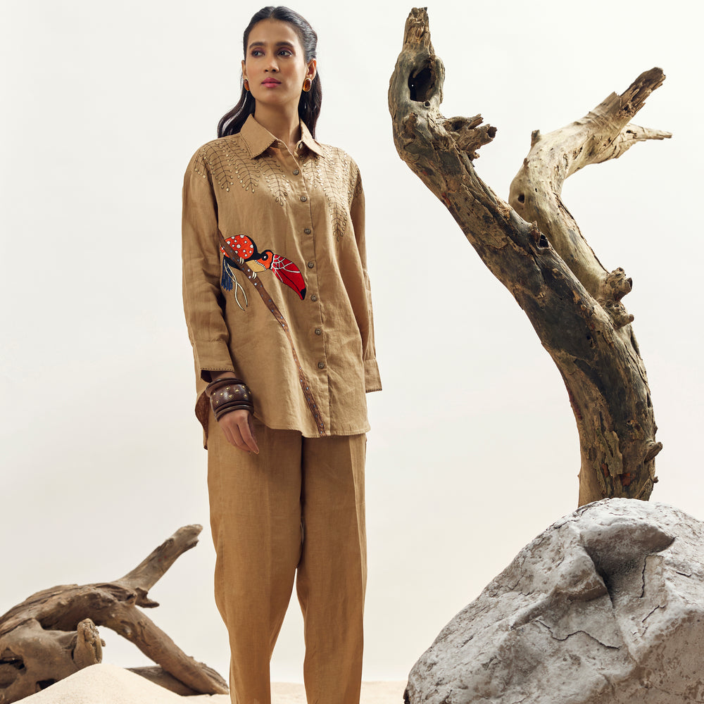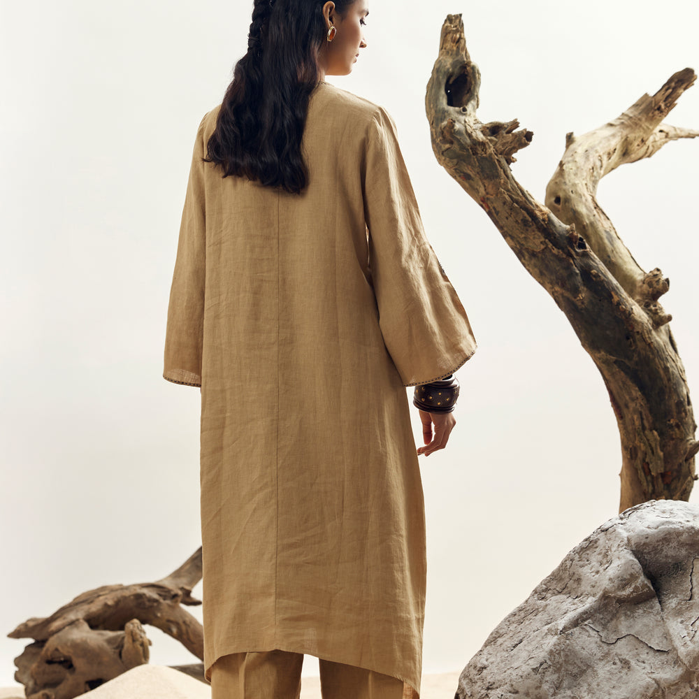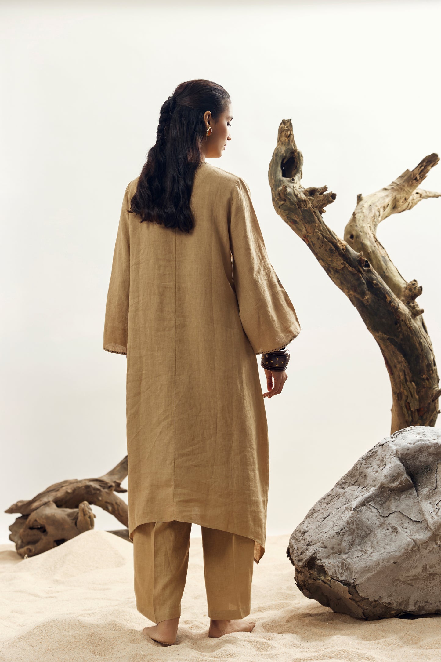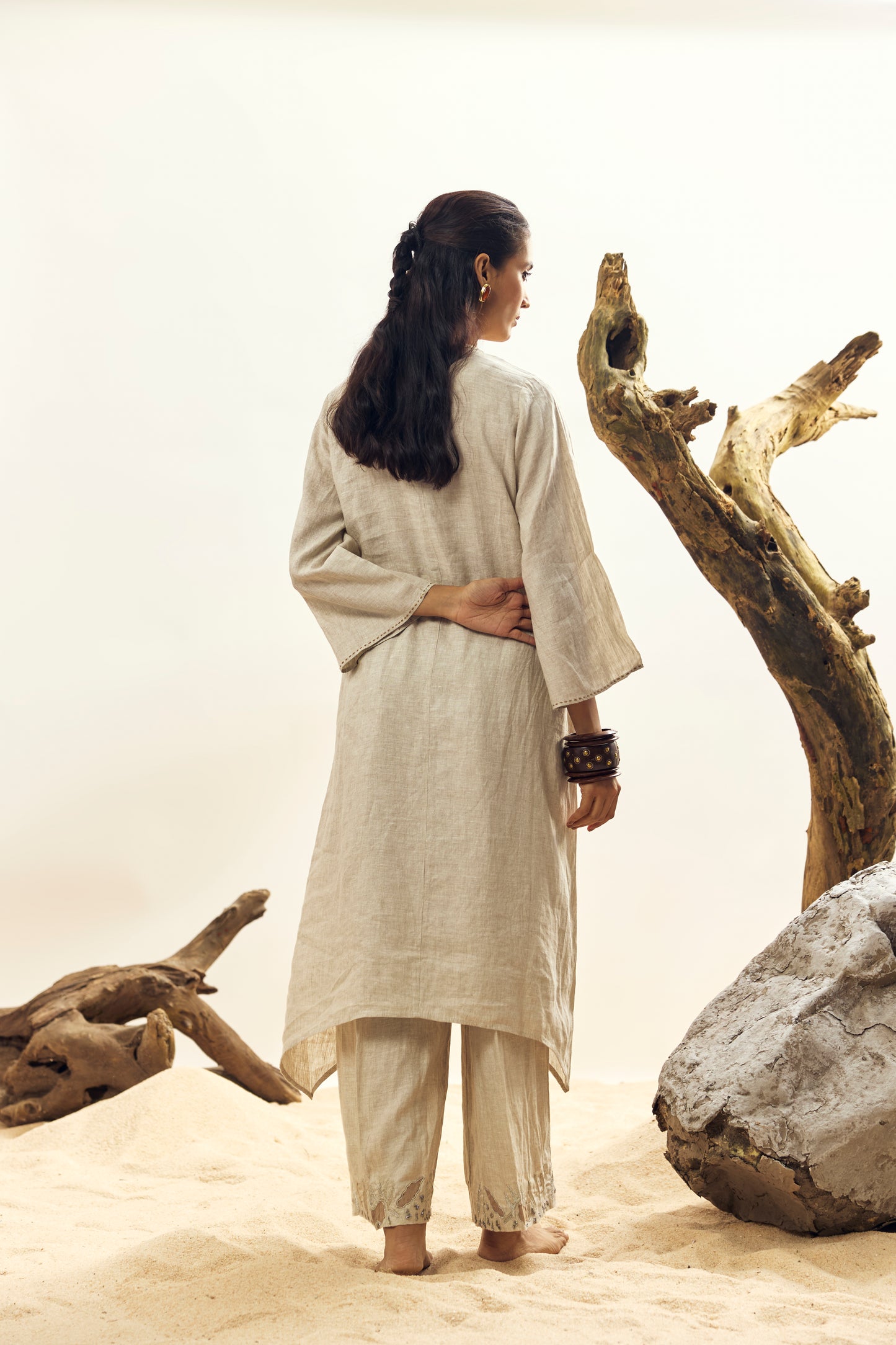 Beige Sequins Work Embroidery Tunic and Pants Set