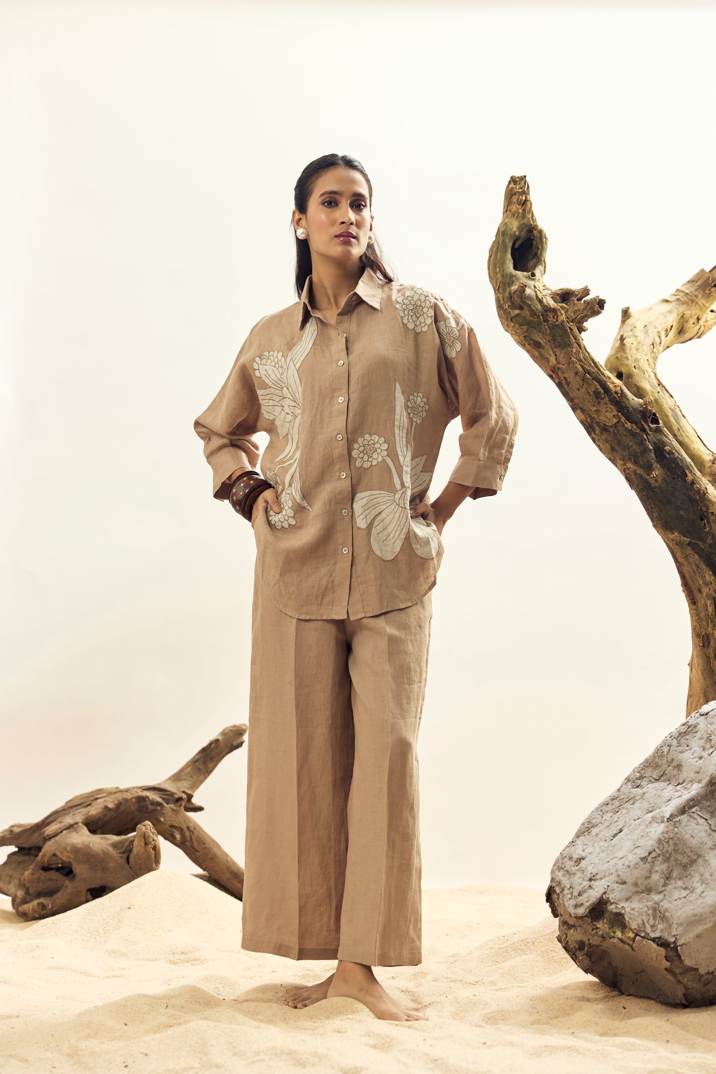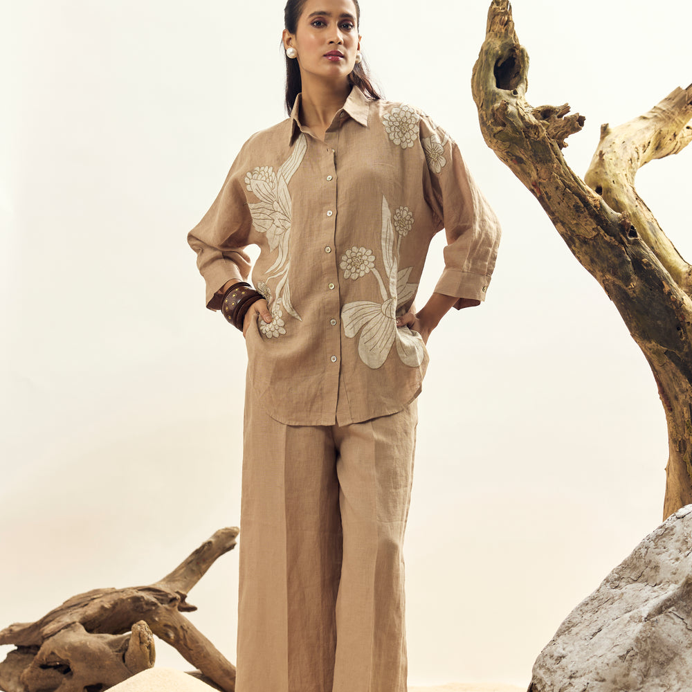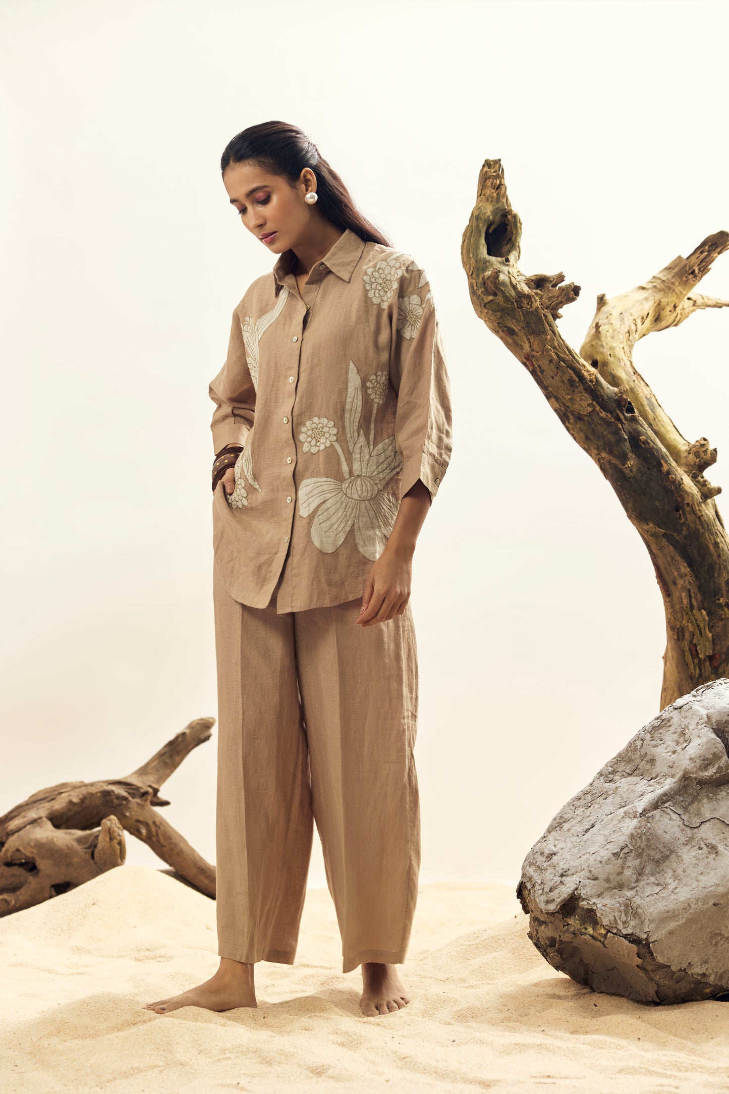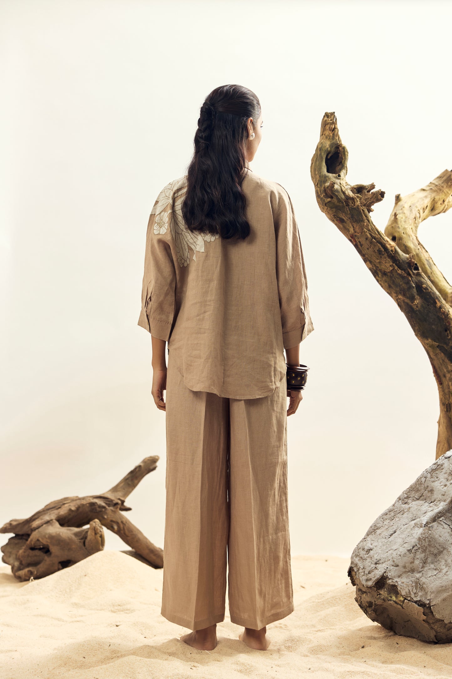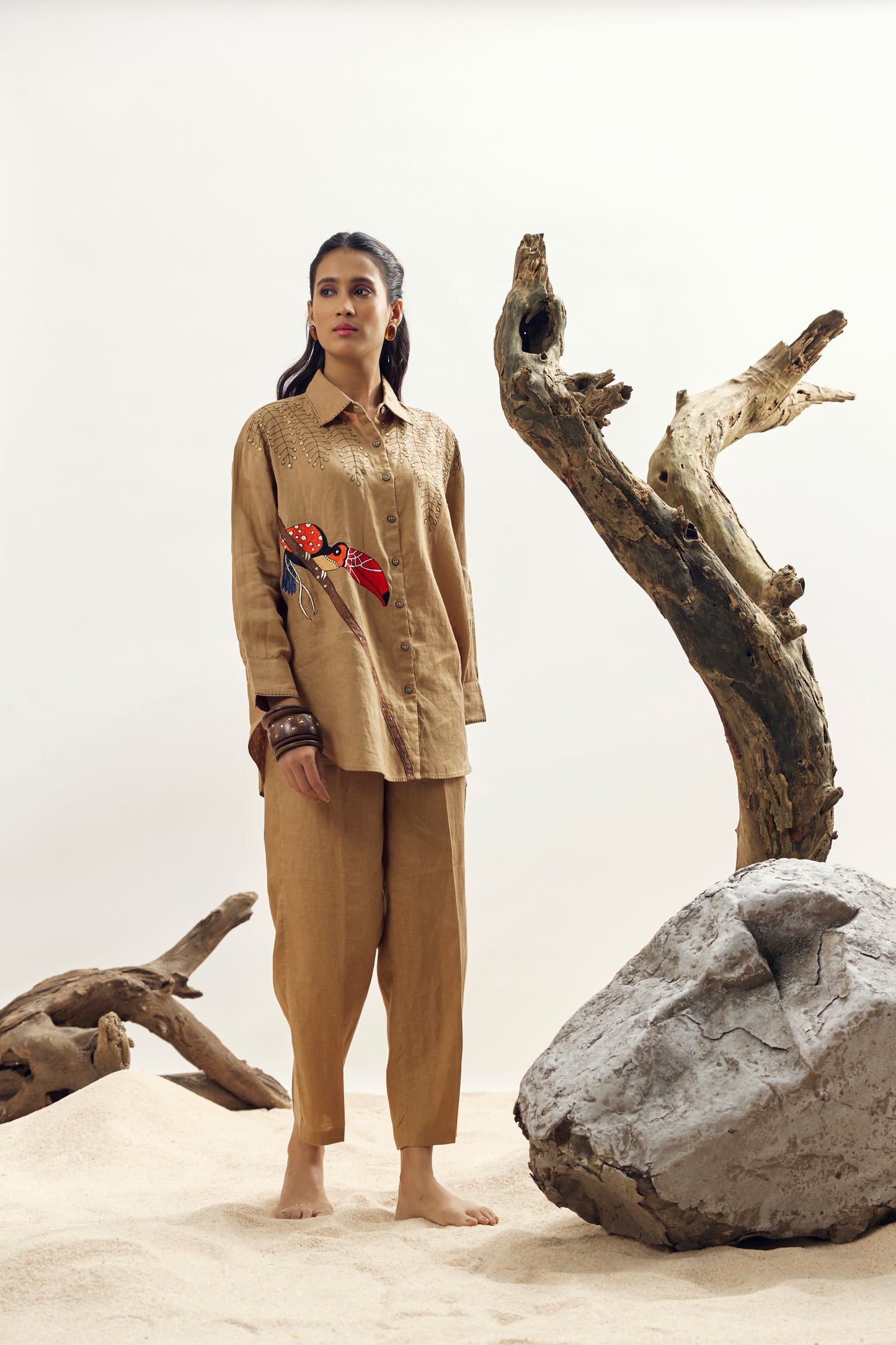 Beige Sequins Work Embroidery Tunic and Pants Set