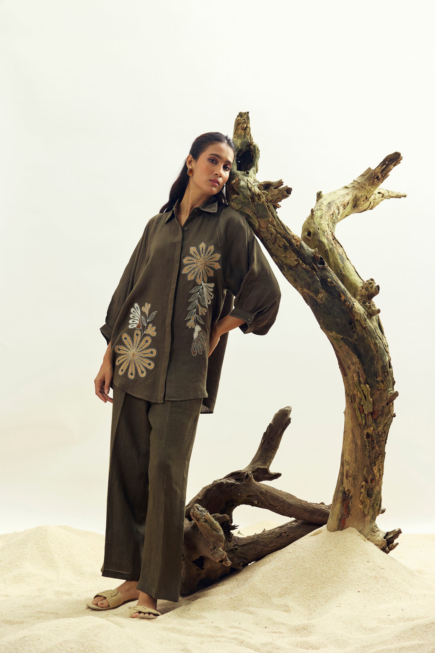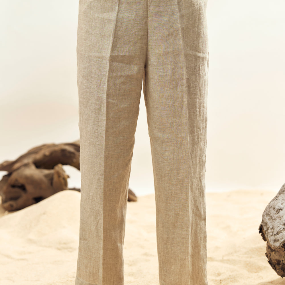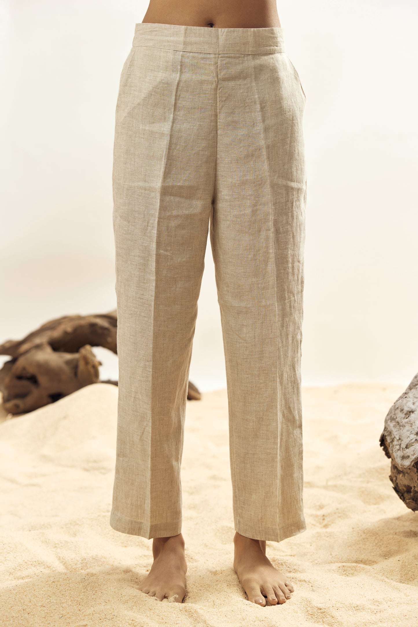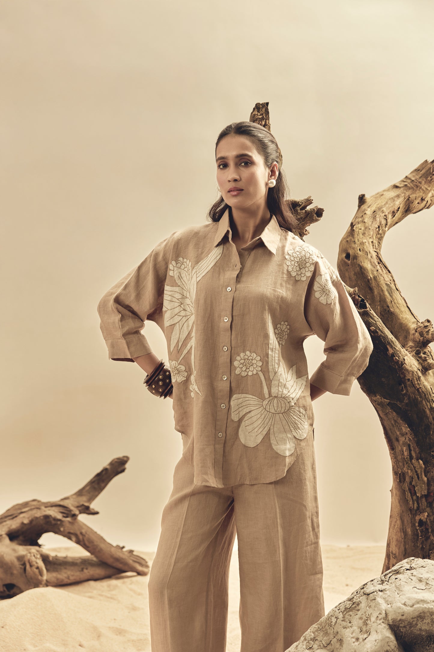 Beige Sequins Work Embroidery Tunic and Pants Set