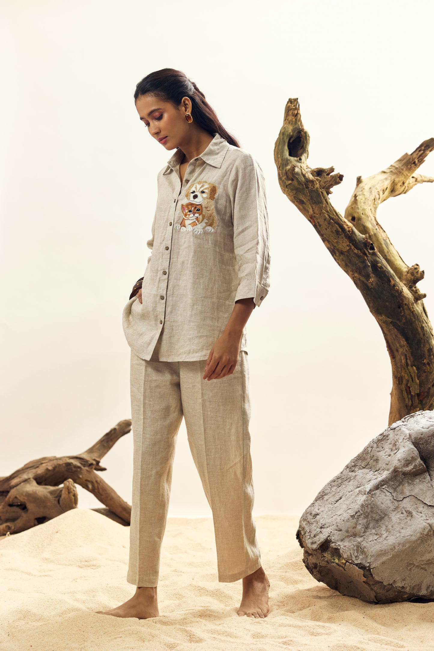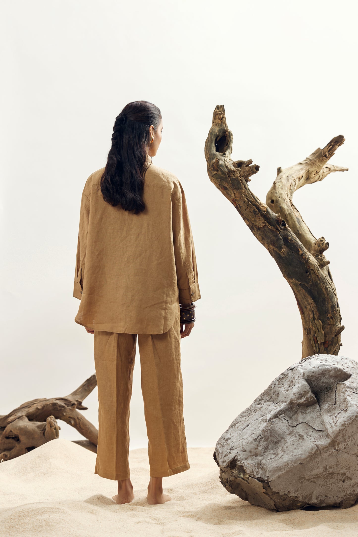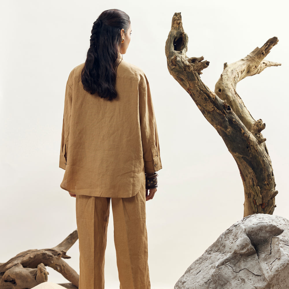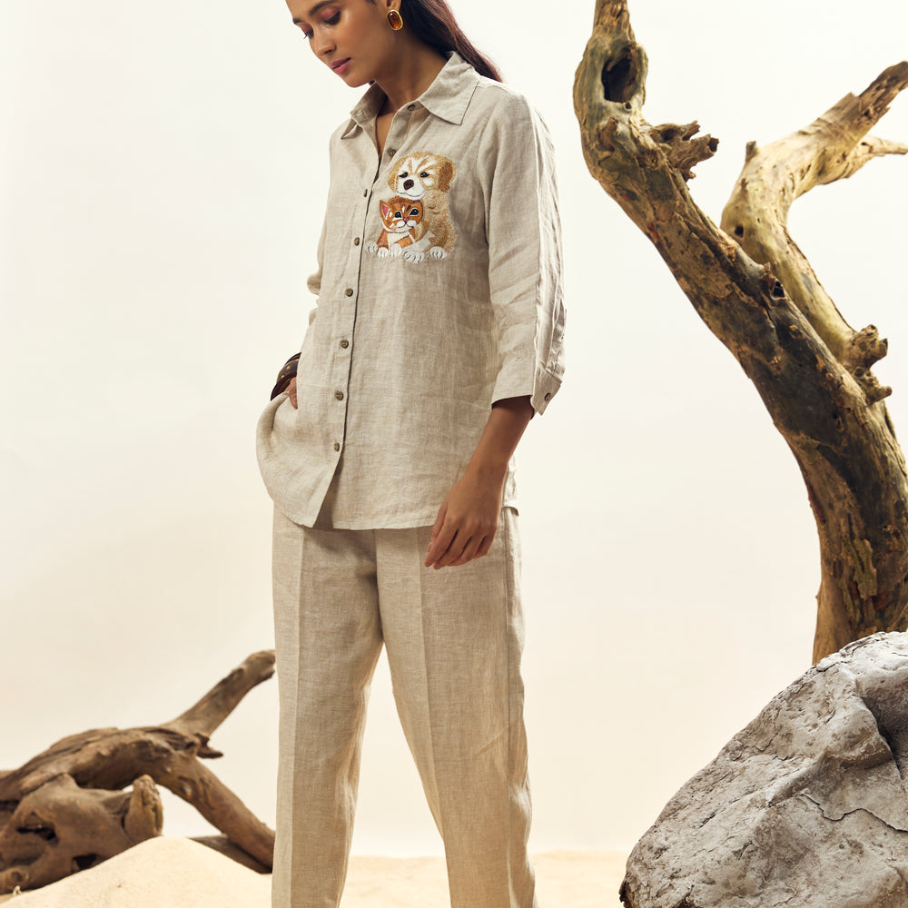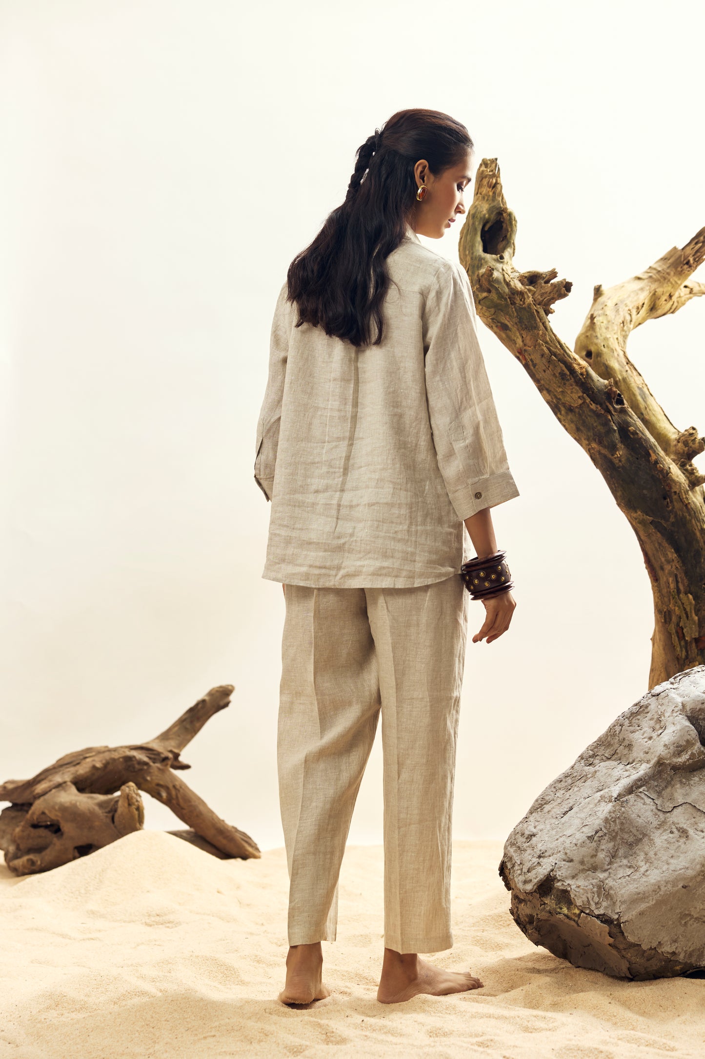 Beige Sequins Work Embroidery Tunic and Pants Set
