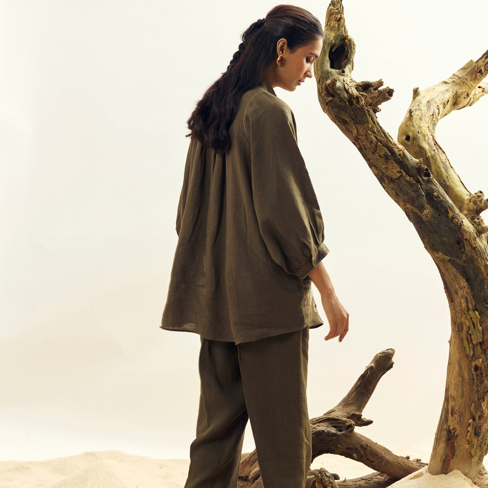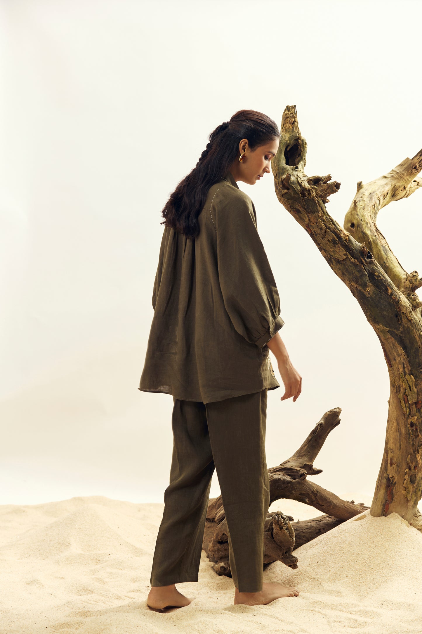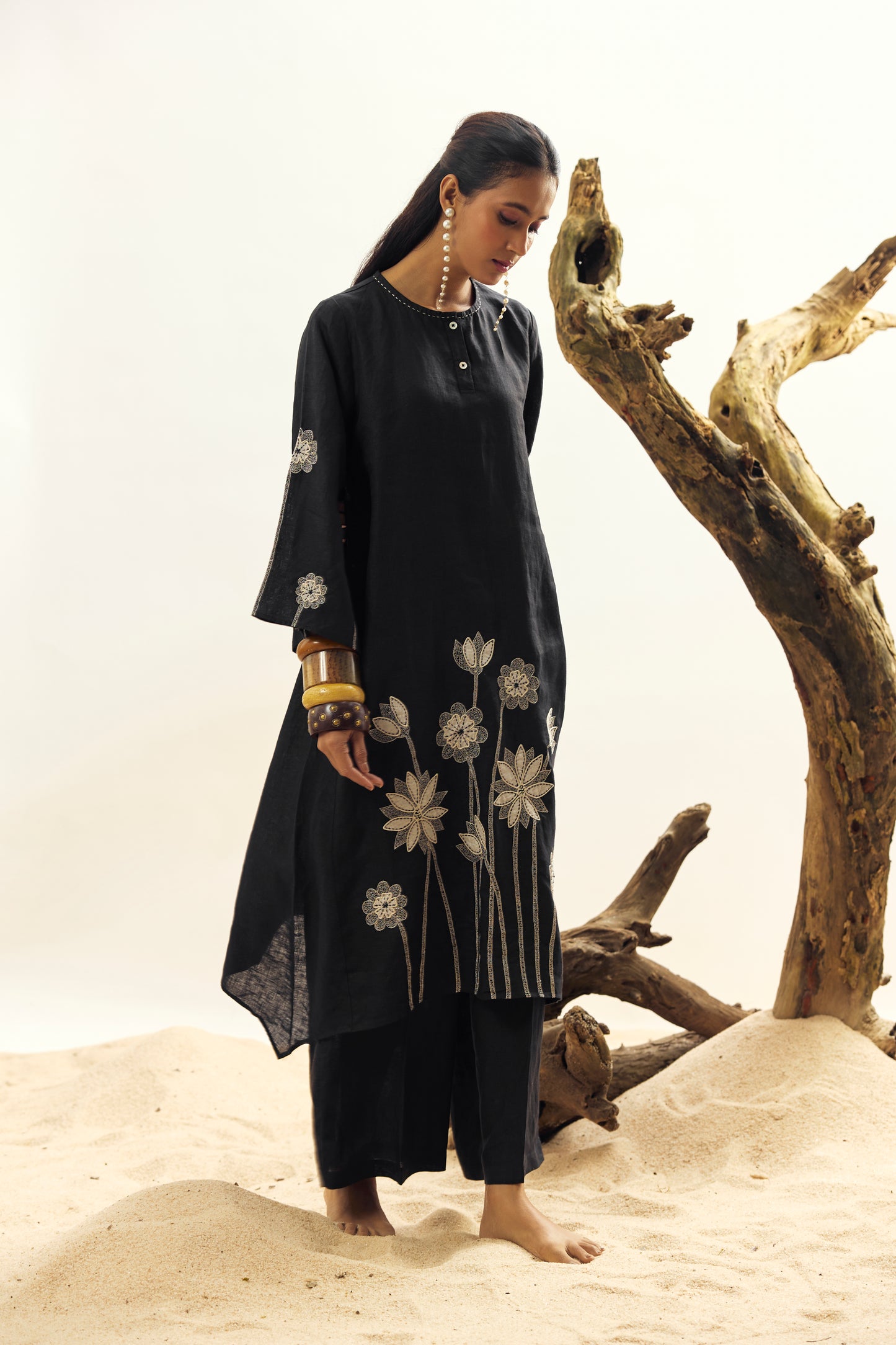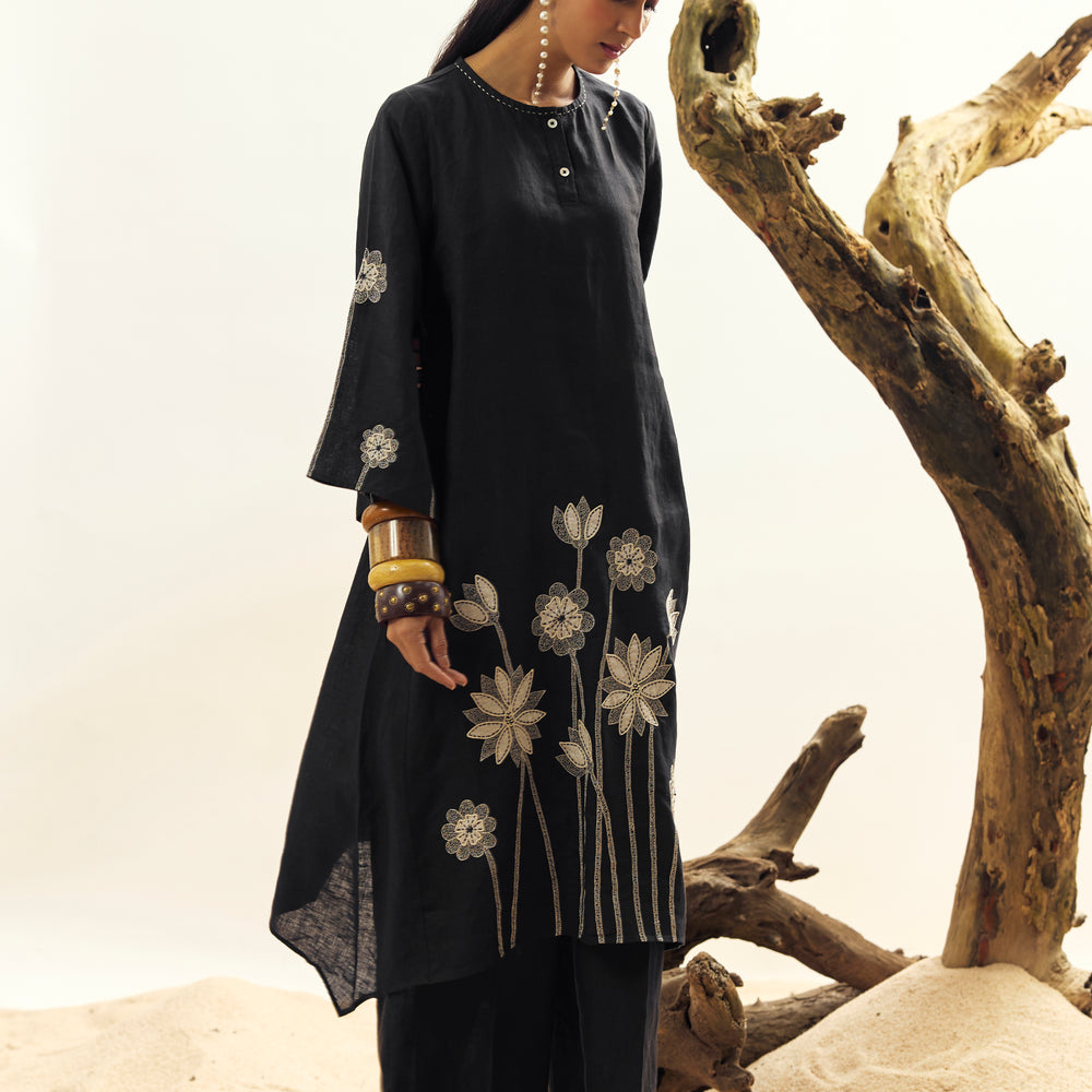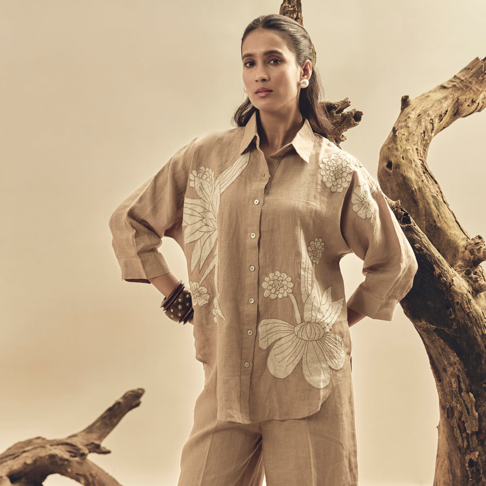 Beige Sequins Work Embroidery Tunic and Pants Set
