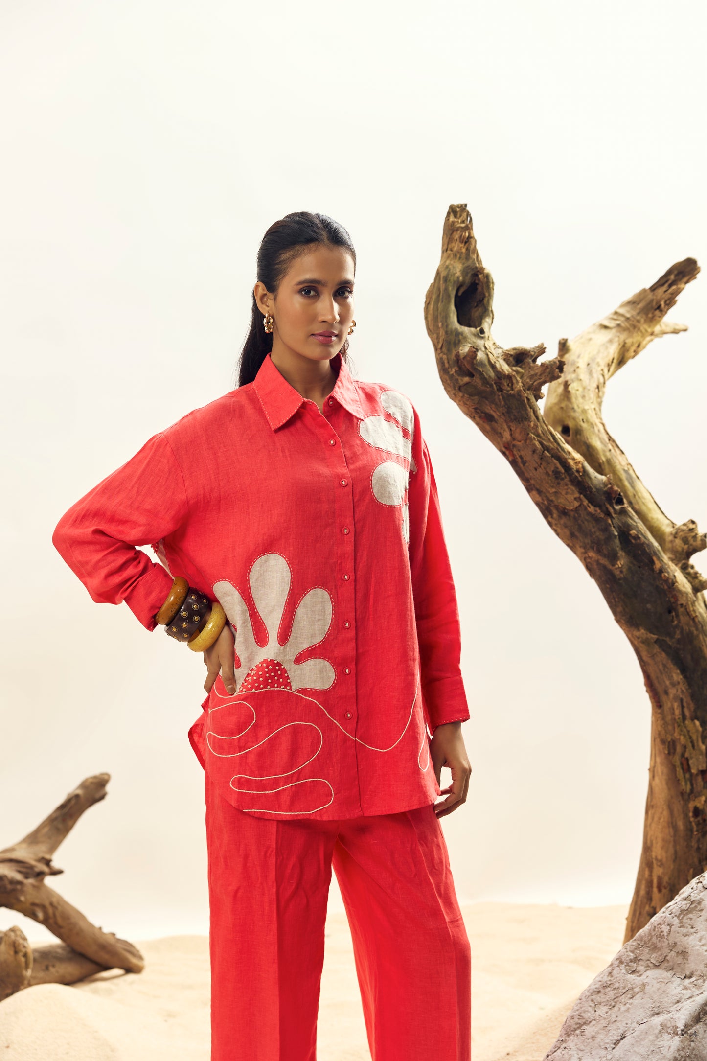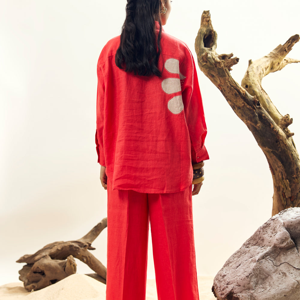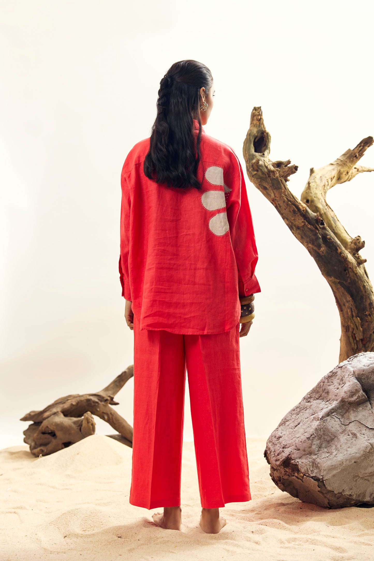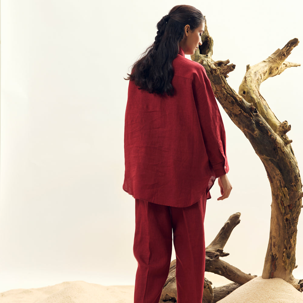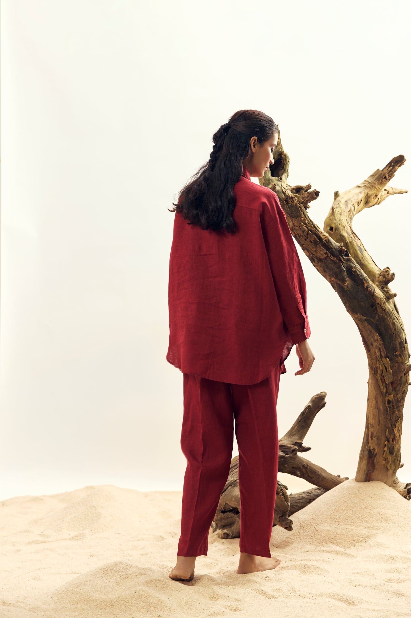 Crimson Two Button Sequin Embroidery Dress and Pants