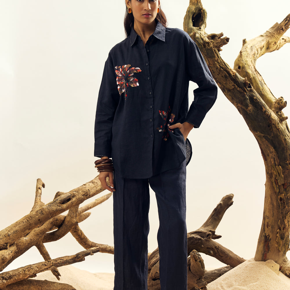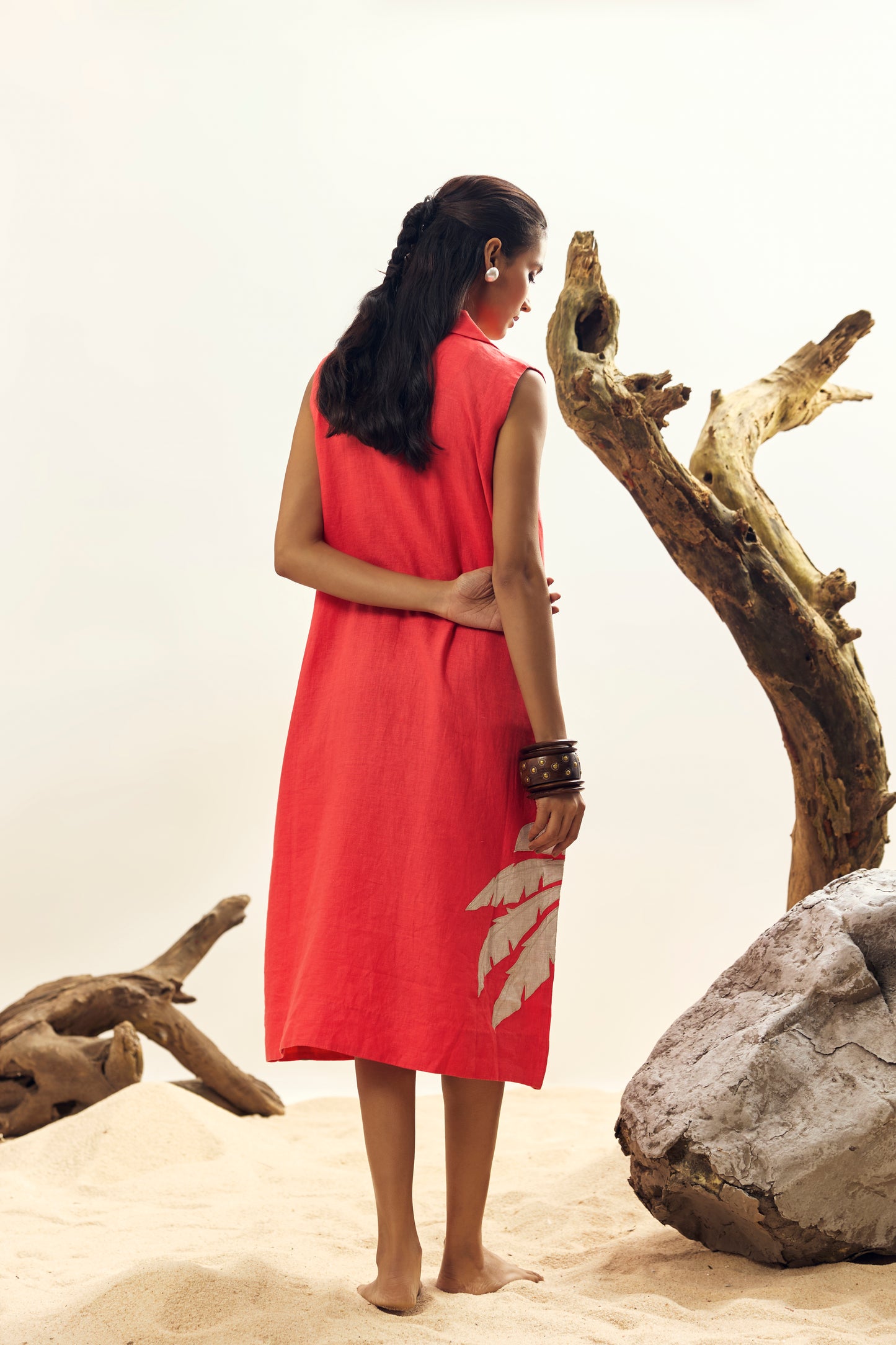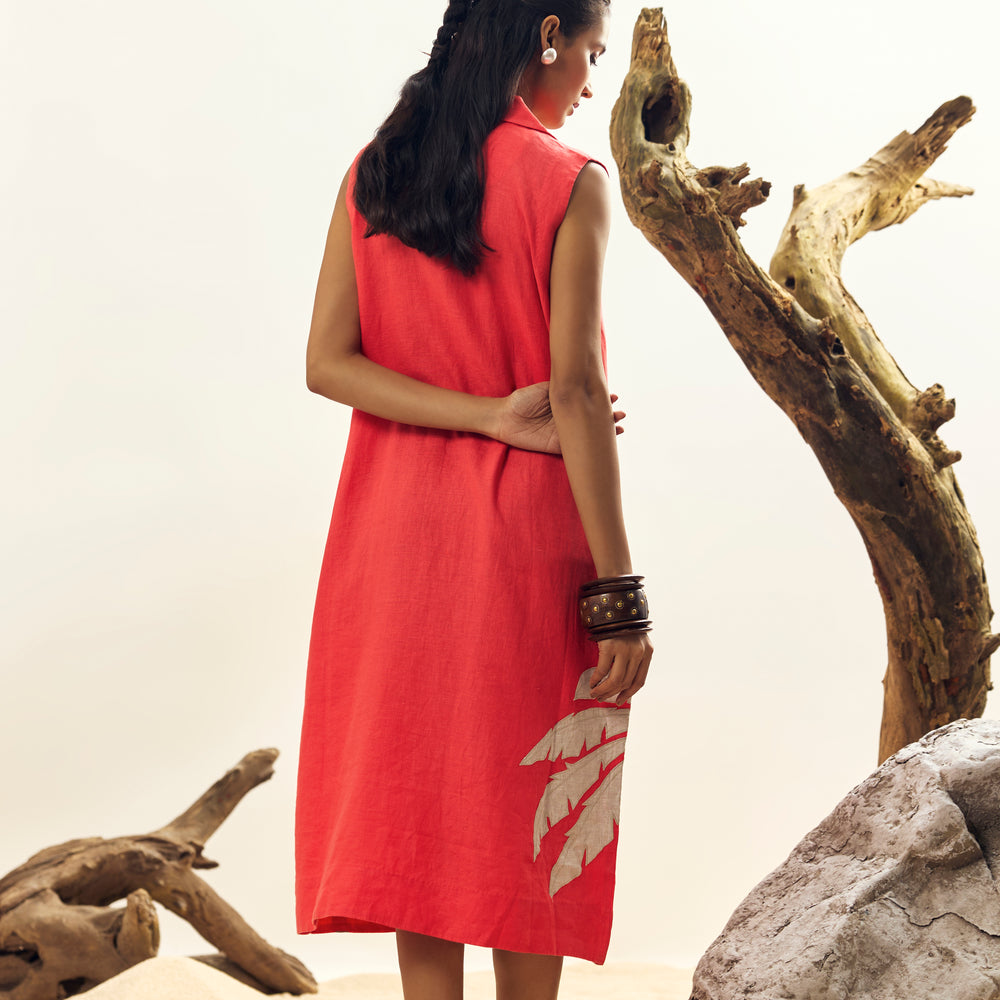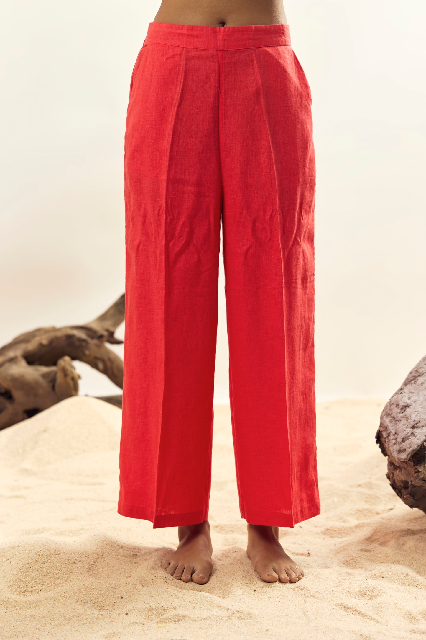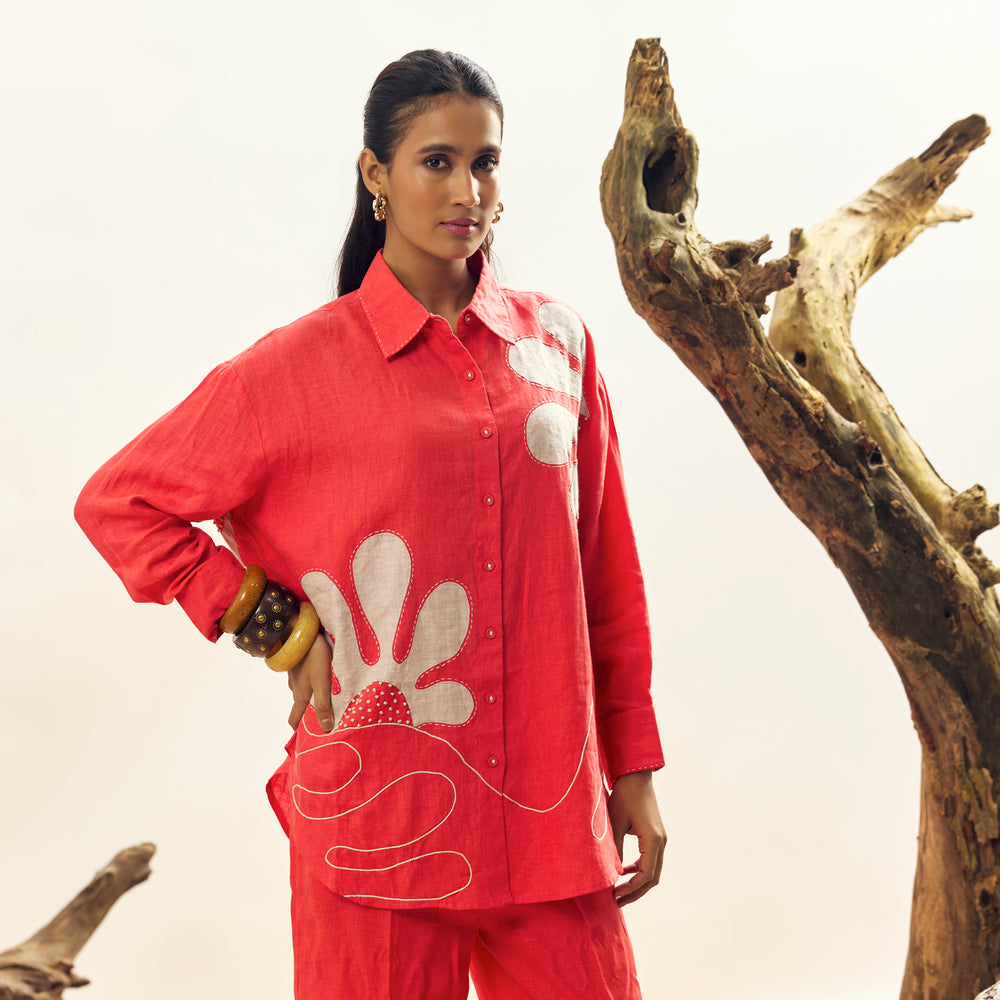 Crimson Two Button Sequin Embroidery Dress and Pants