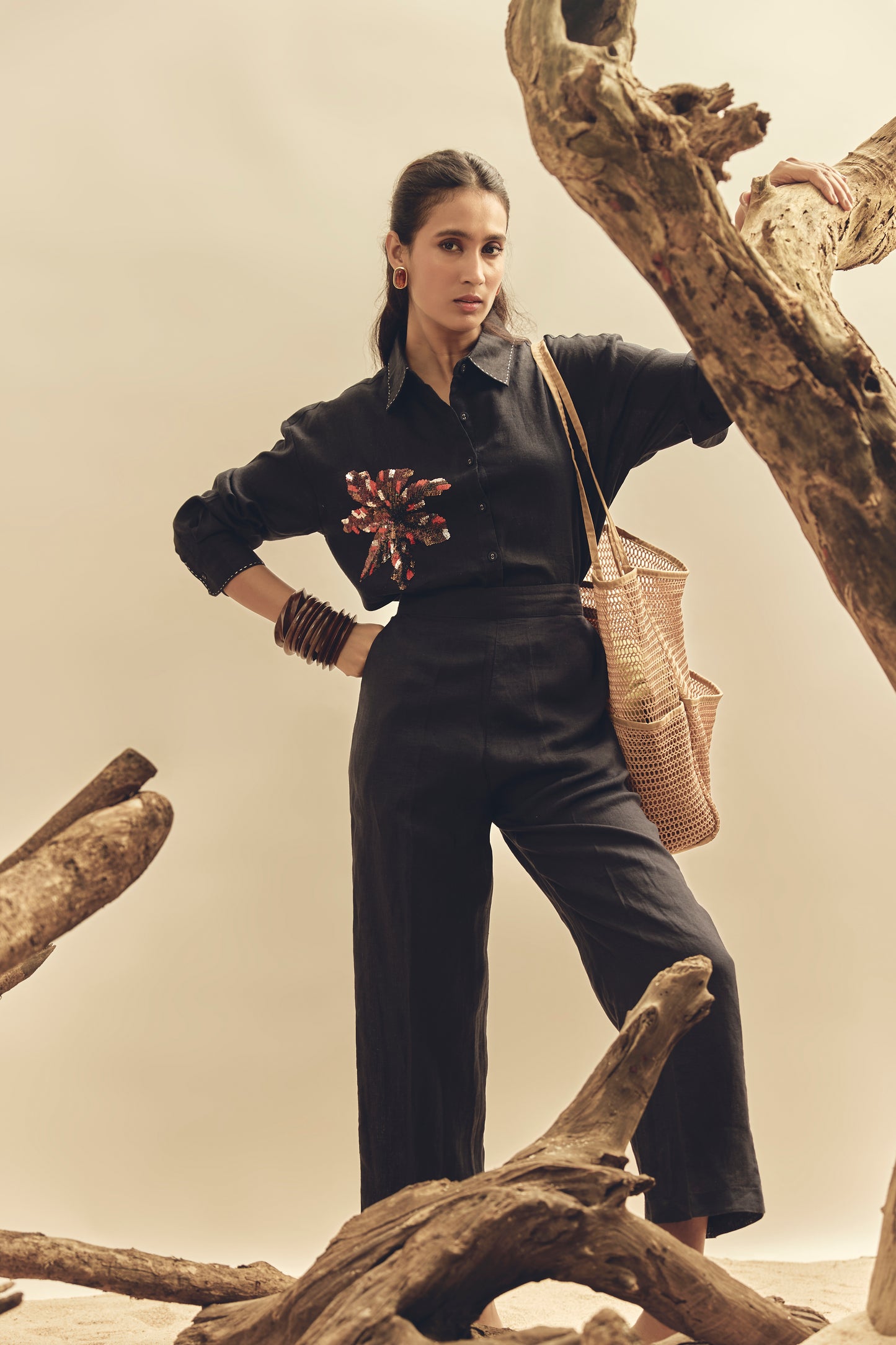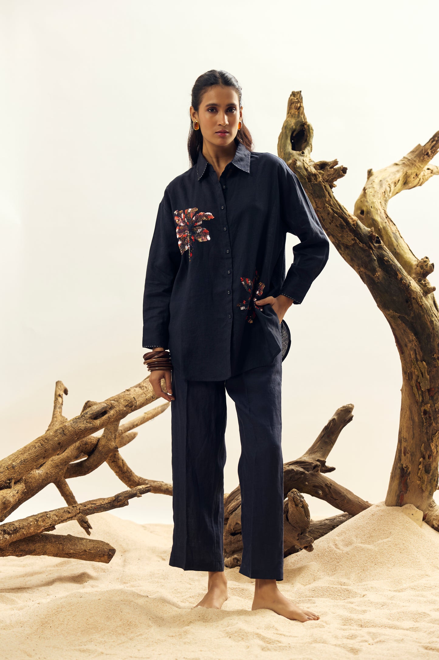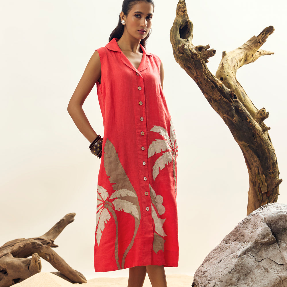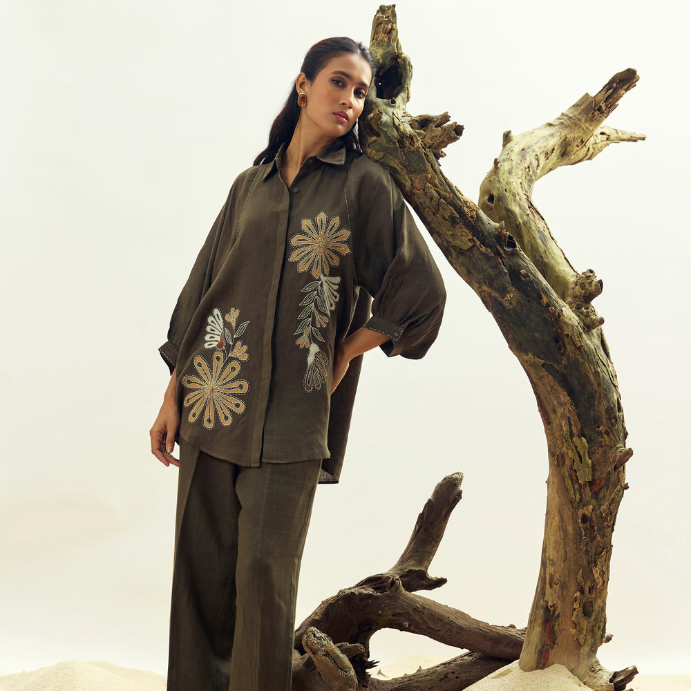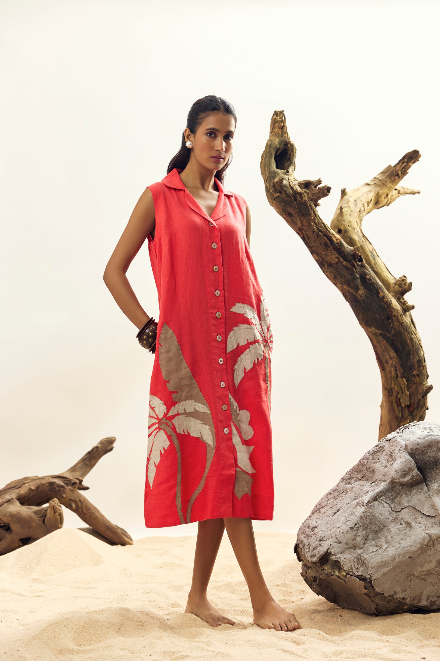 Crimson Two Button Sequin Embroidery Dress and Pants