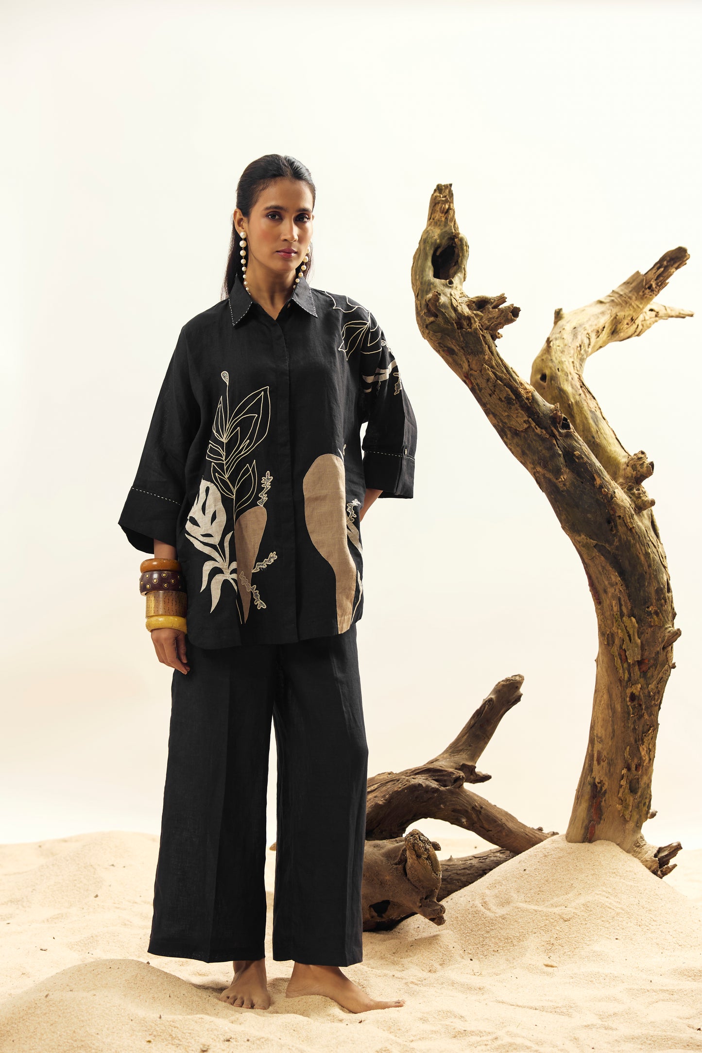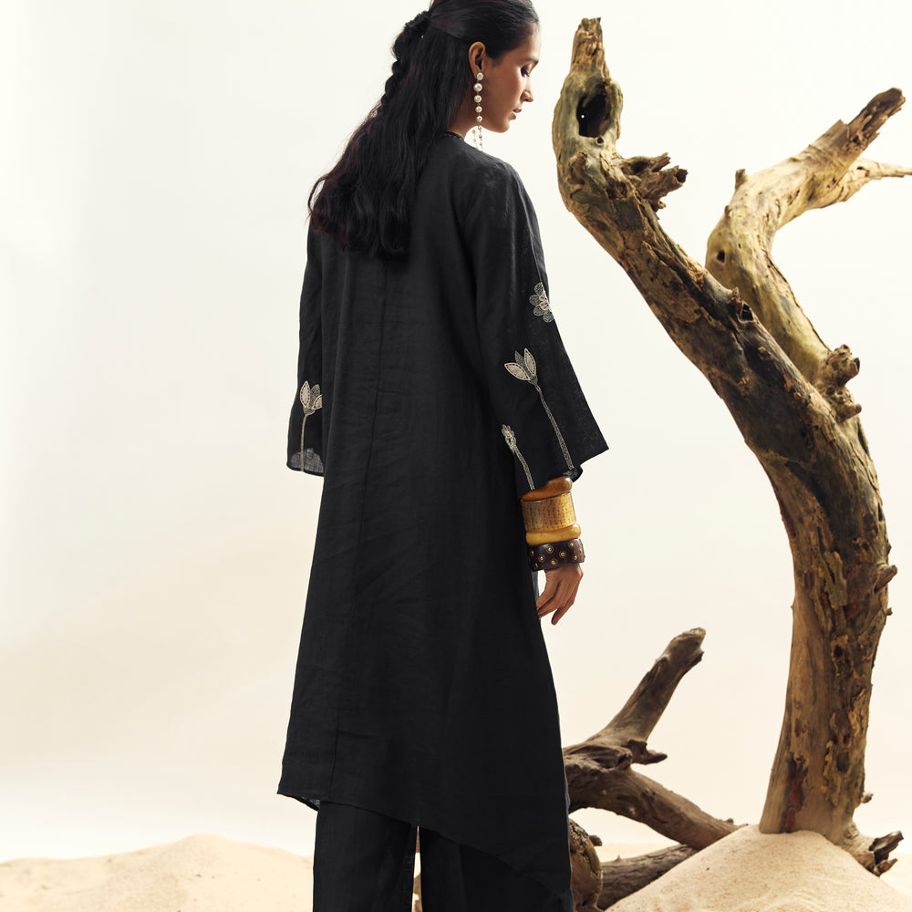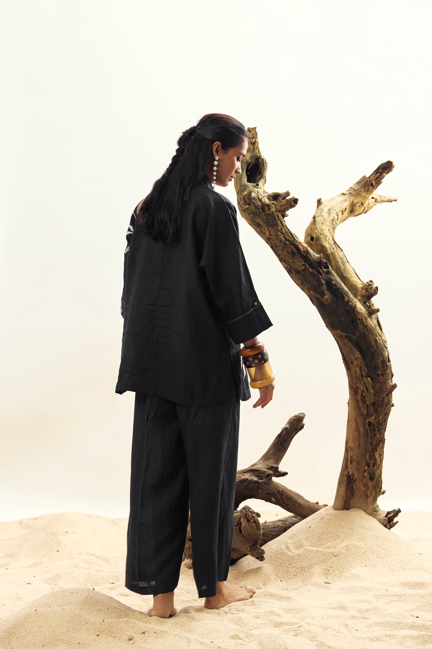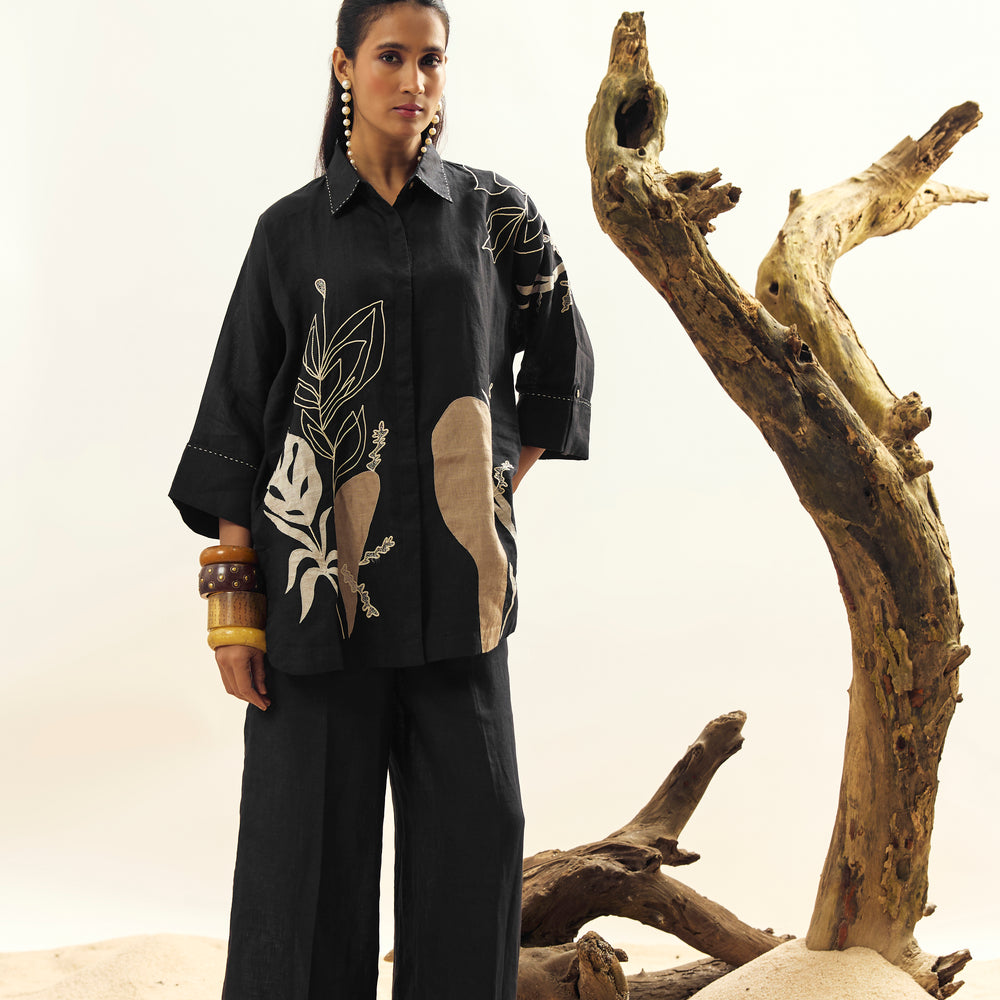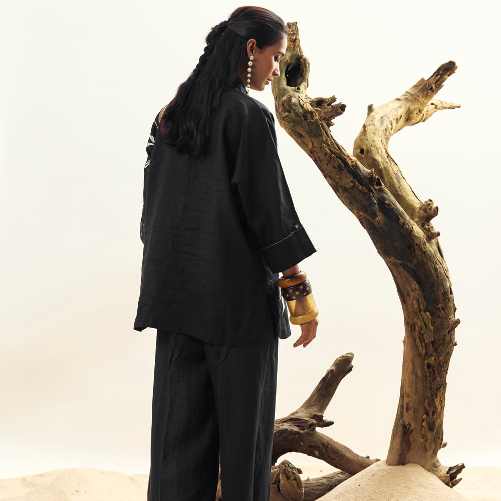 Crimson Two Button Sequin Embroidery Dress and Pants