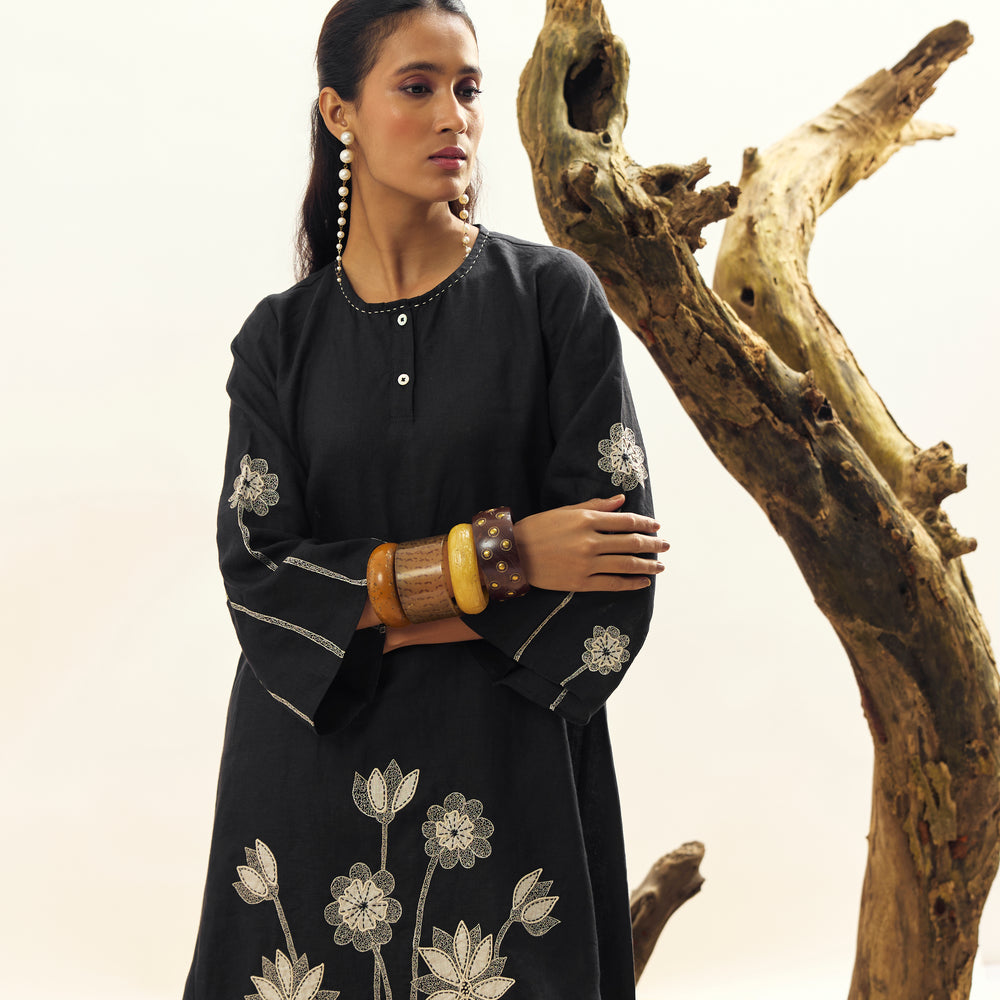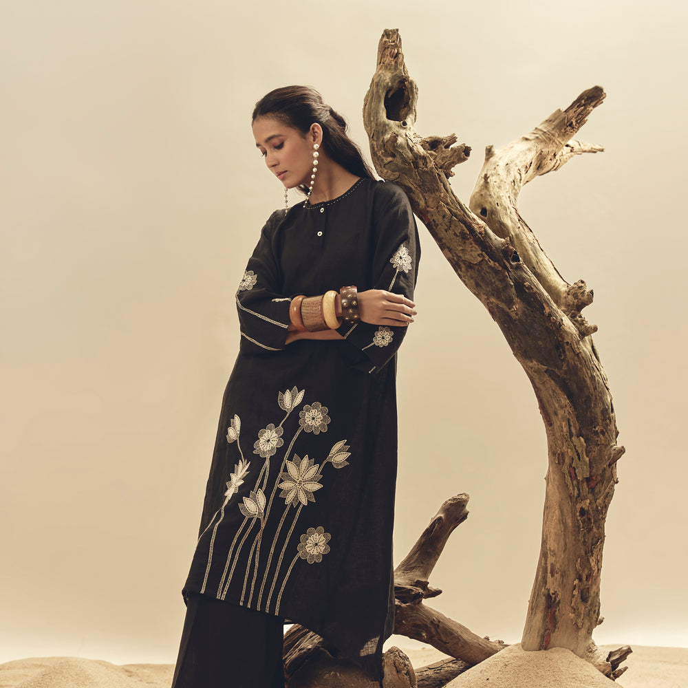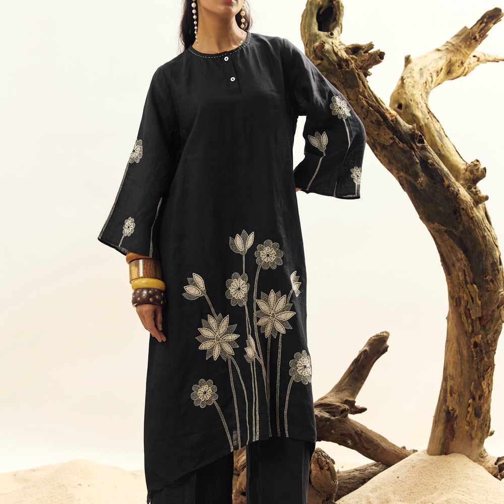 Crafted from 100% Irish linen, this Crimson Hi-Low Tunic and Pants Set features elegant embroidery and a flattering silhouette for breathable, stylish comfort perfect for any occasion.