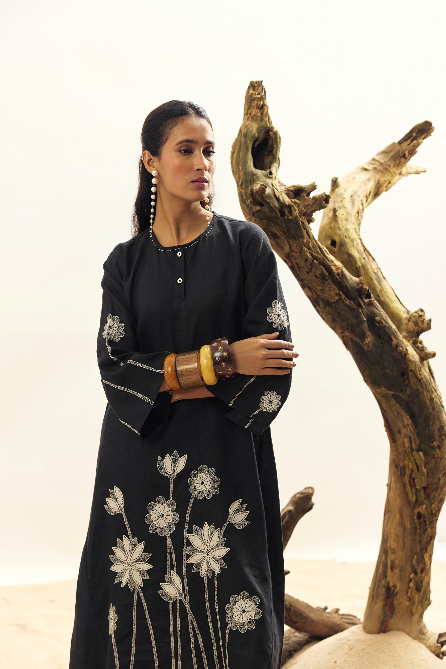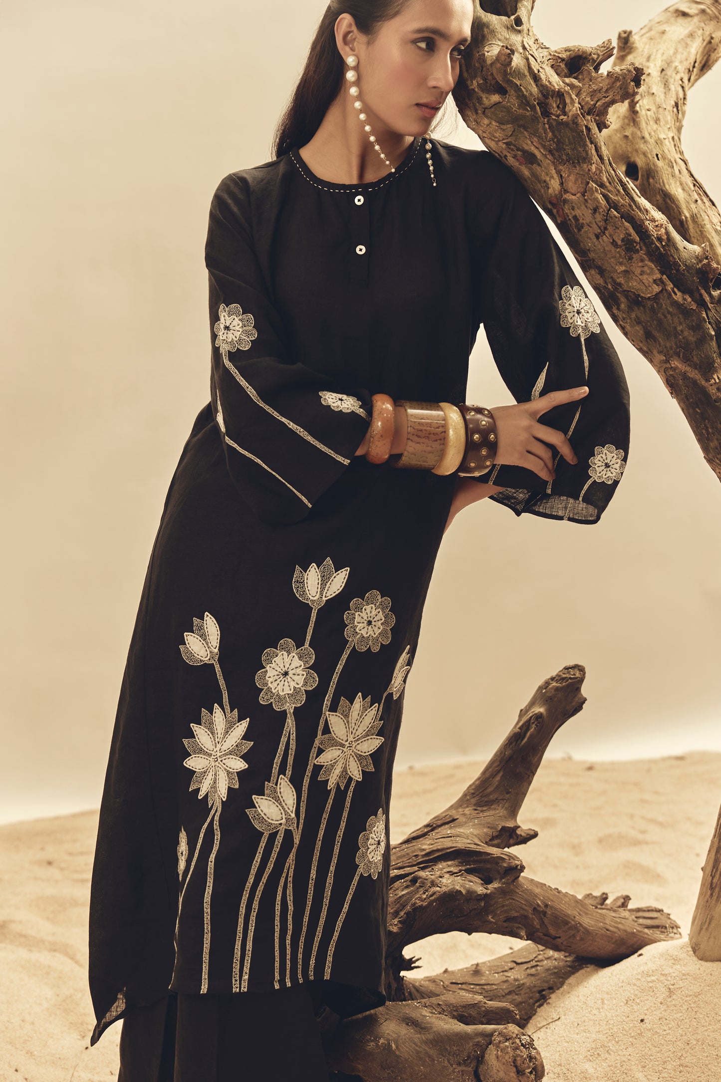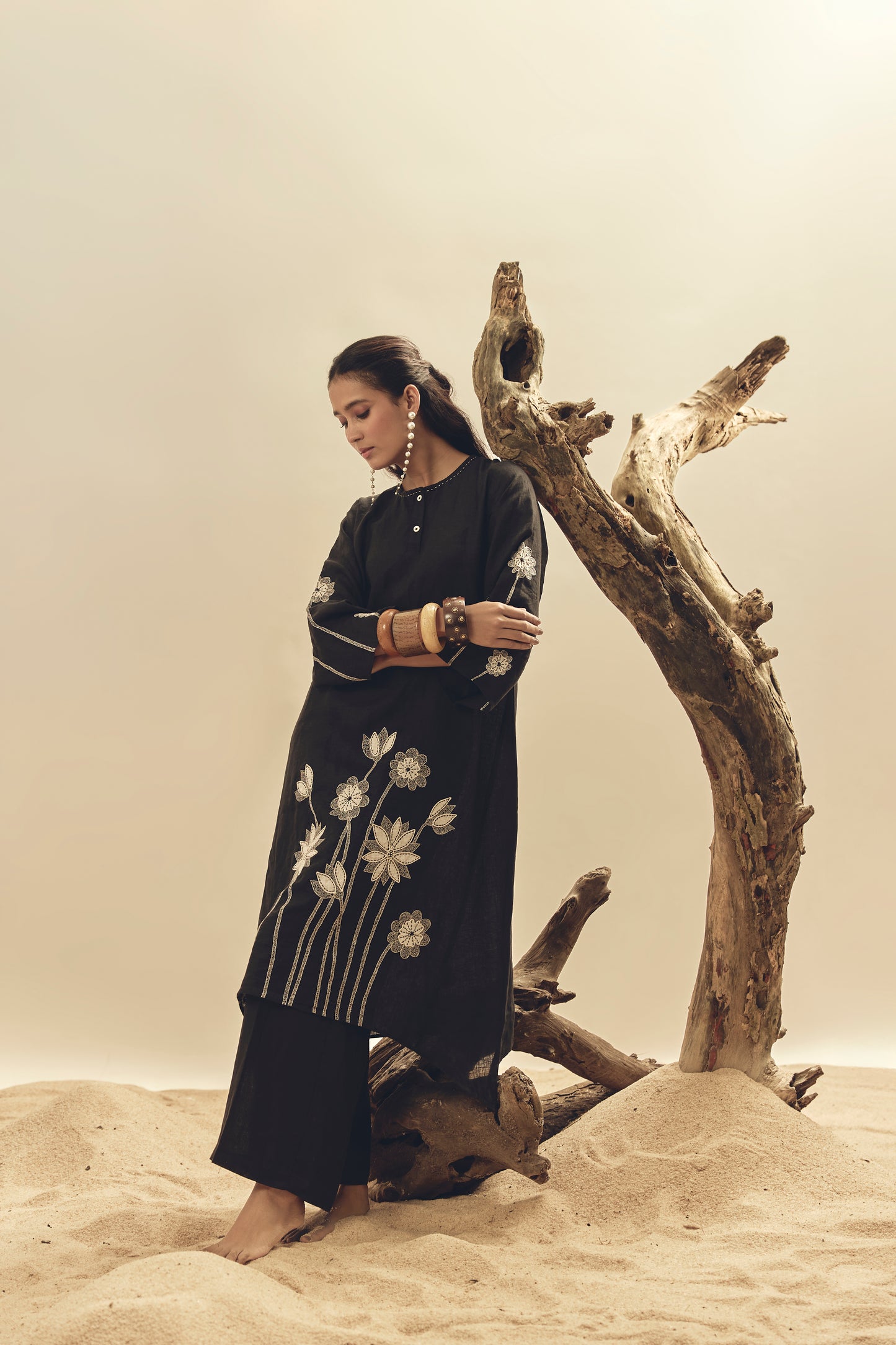 Crafted from 100% Irish linen, this Crimson Hi-Low Tunic and Pants Set features elegant embroidery and a flattering silhouette for breathable, stylish comfort perfect for any occasion.
