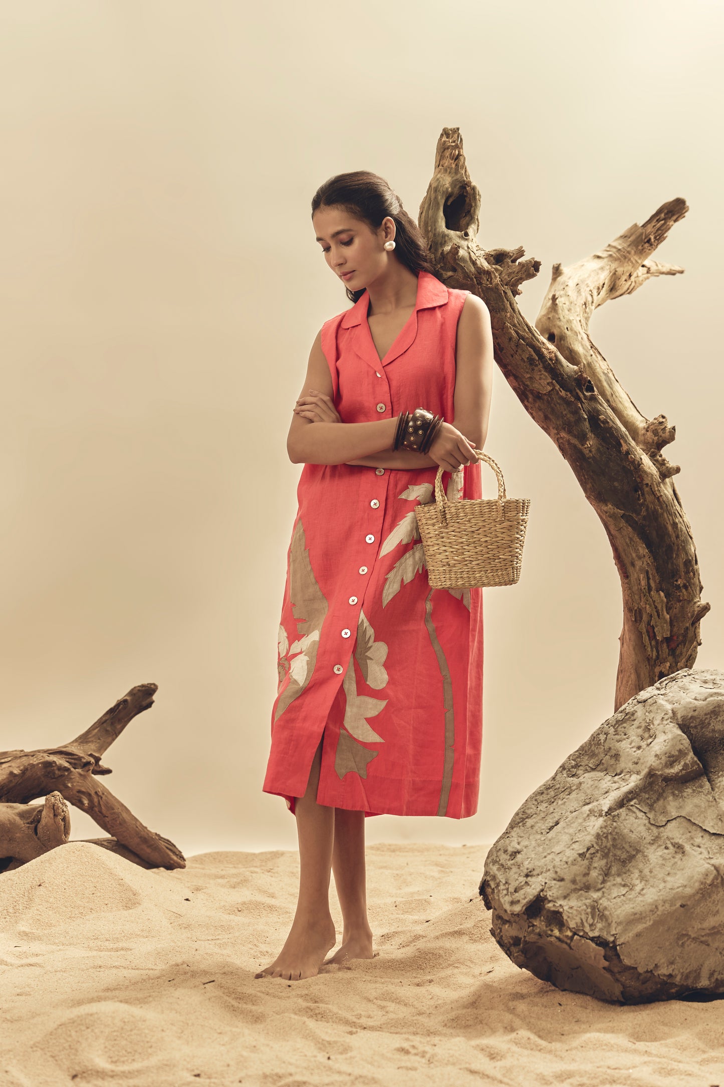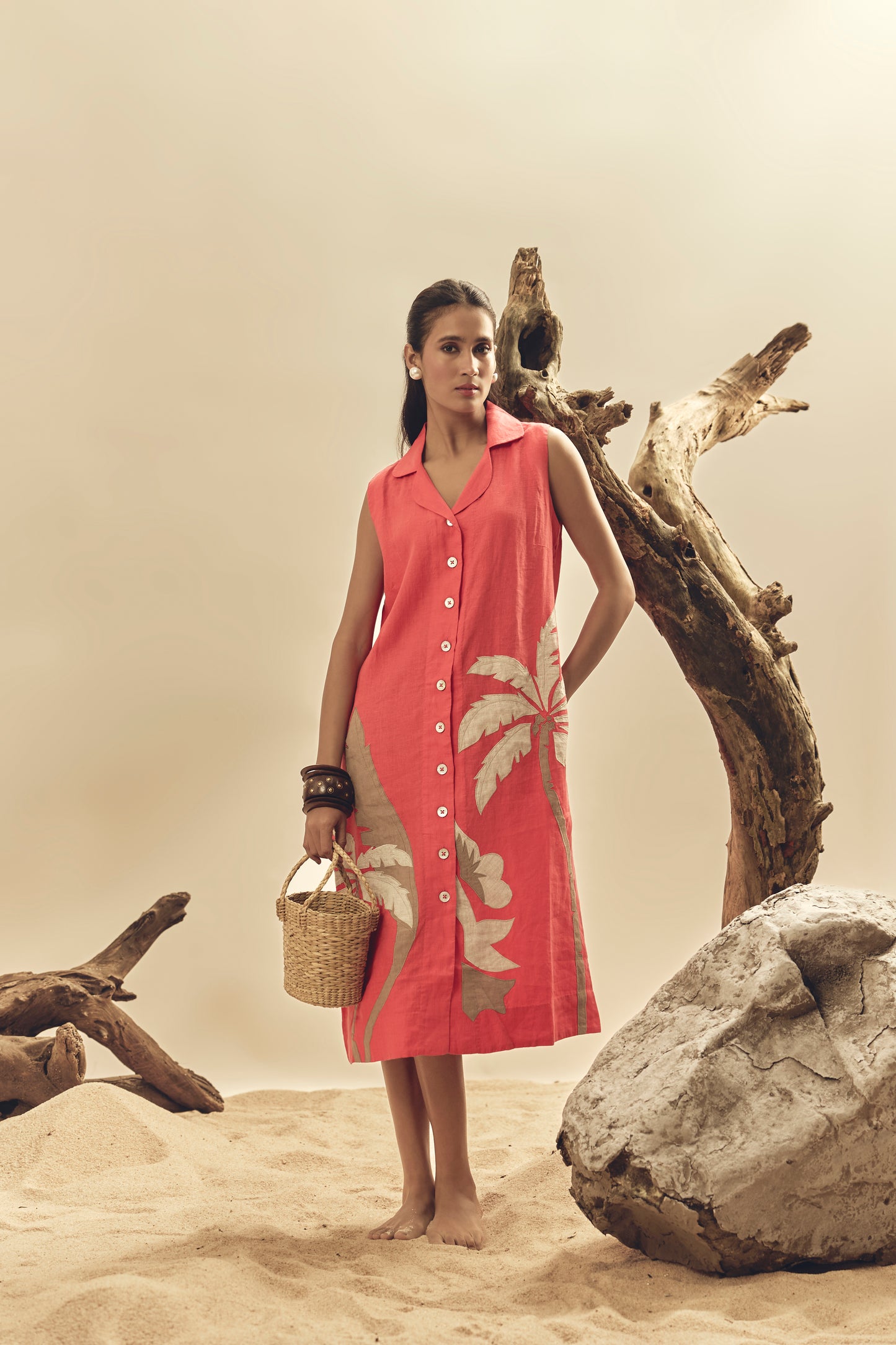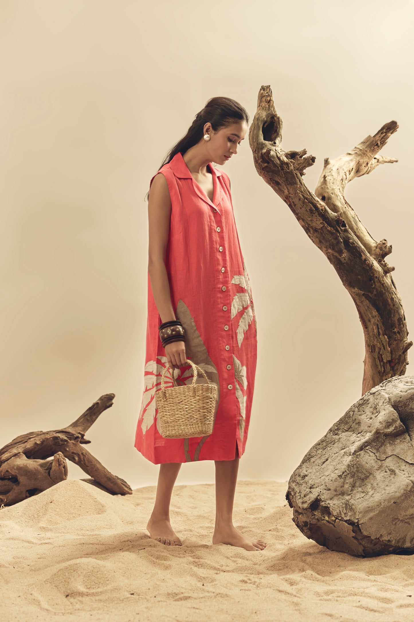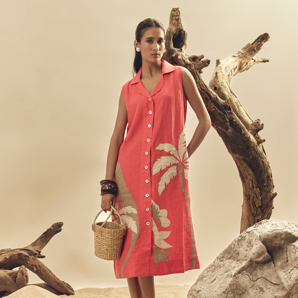 Feel fresh and elegant in this Coral Sleeveless Embroidered Dress, crafted from breathable 100% Irish linen. Featuring delicate embroidery and a flattering silhouette, it’s perfect for warm weather and special occasions.