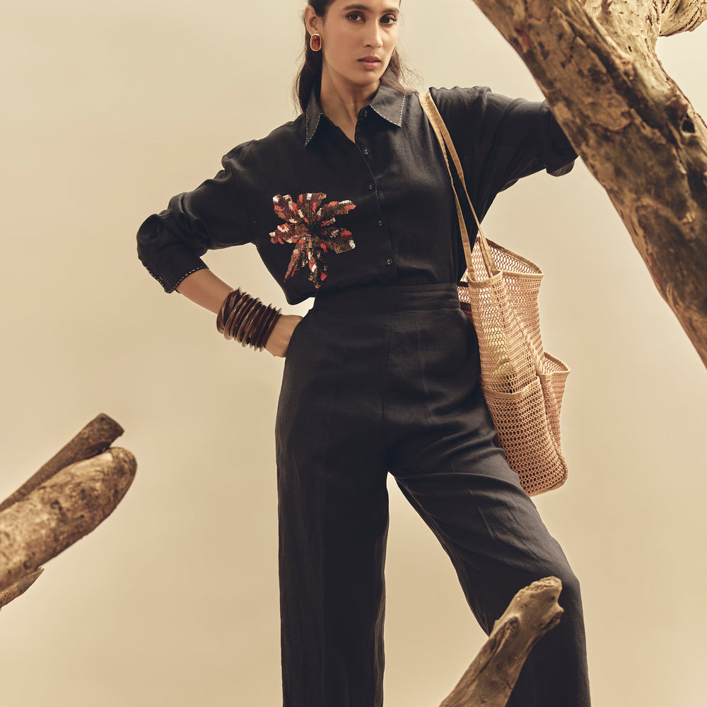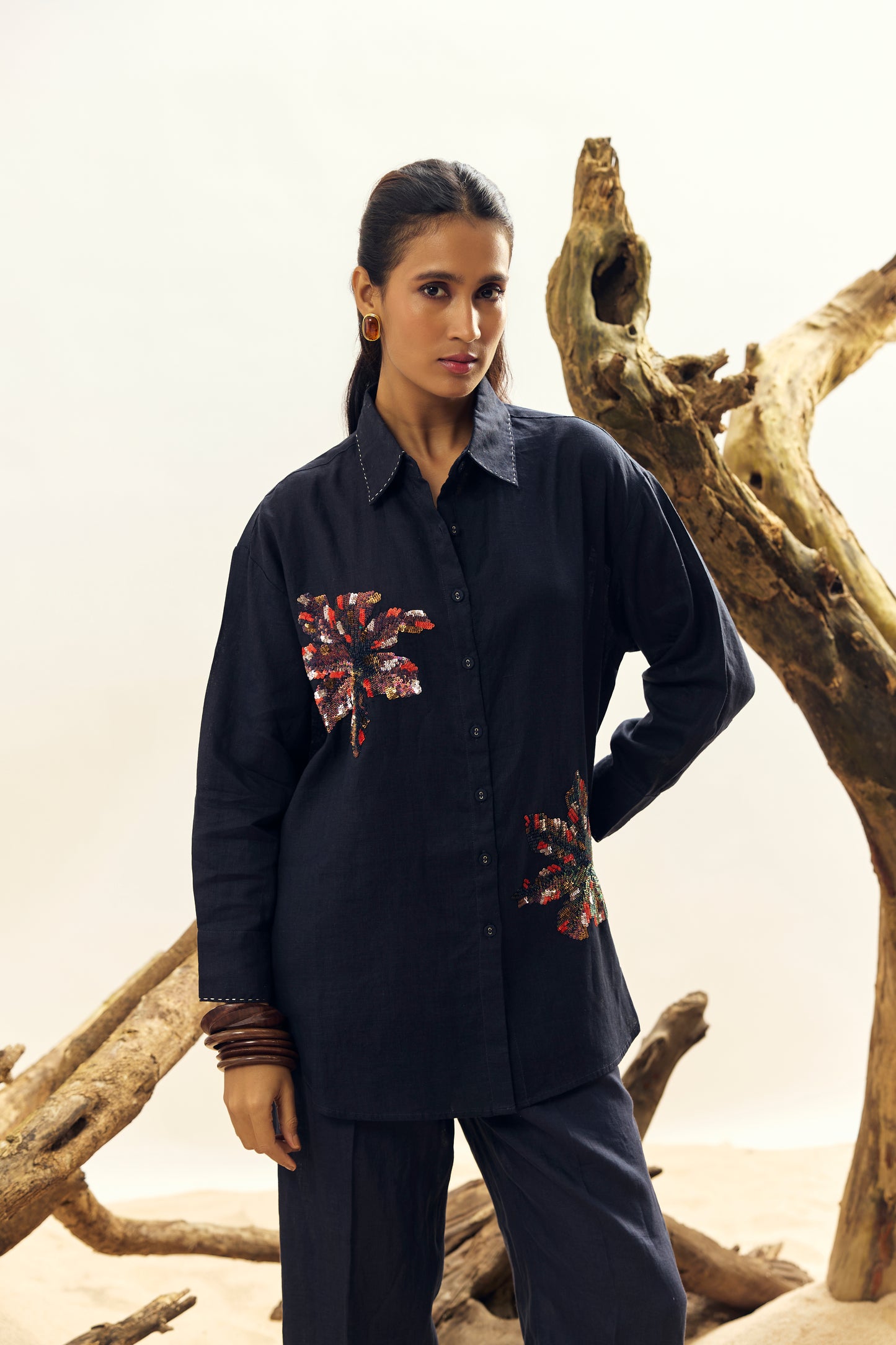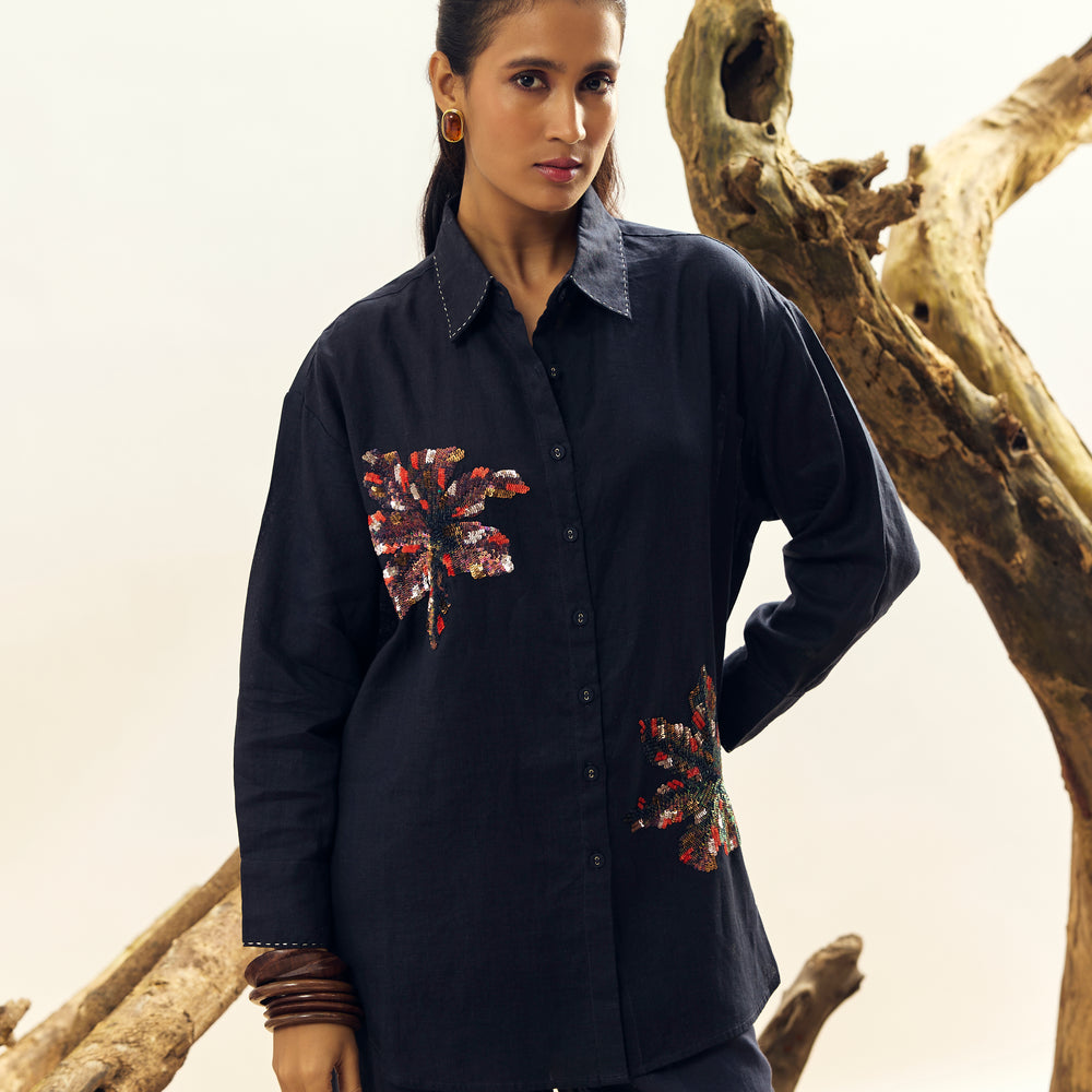 Navy Sequins Work Big Shirt