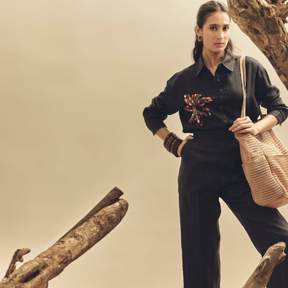 Add a touch of sparkle with our Navy Sequins Work Big Shirt. Featuring shimmering sequin embellishments and a relaxed oversized fit, this shirt effortlessly combines comfort and glam for day-to-night style.