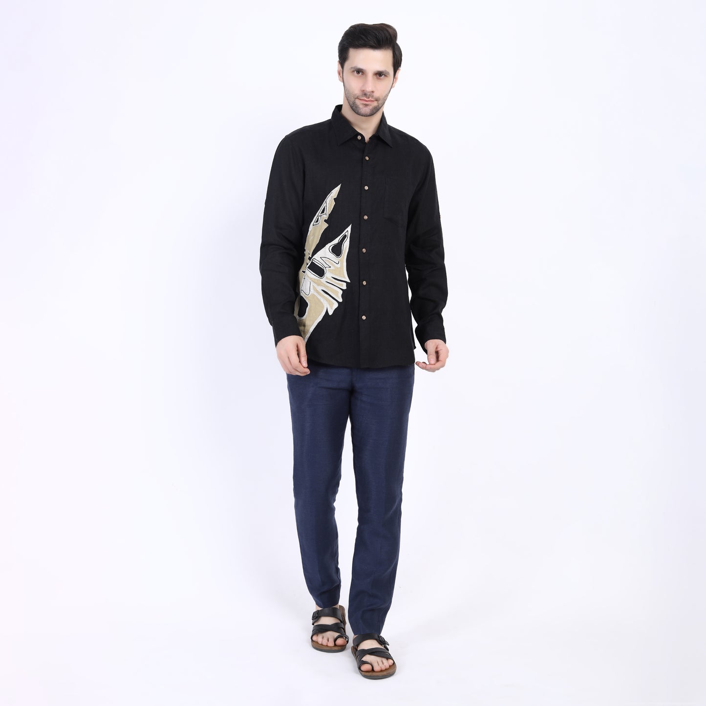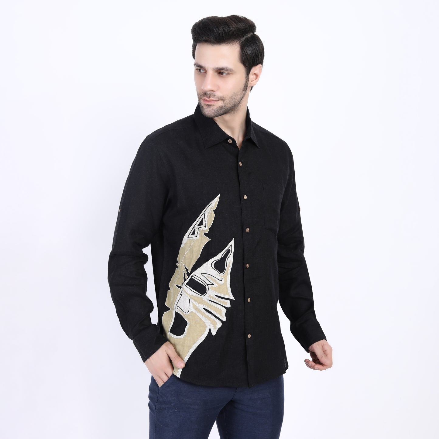 Channel tropical vibes with the Black Palm Leaf Embroidered Linen Shirt, made from breathable linen fabric for all-day comfort. The detailed palm leaf embroidery adds a bold yet breezy touch. Perfect for casual outings and beachy moods. A stylish must-have for effortless dressing.