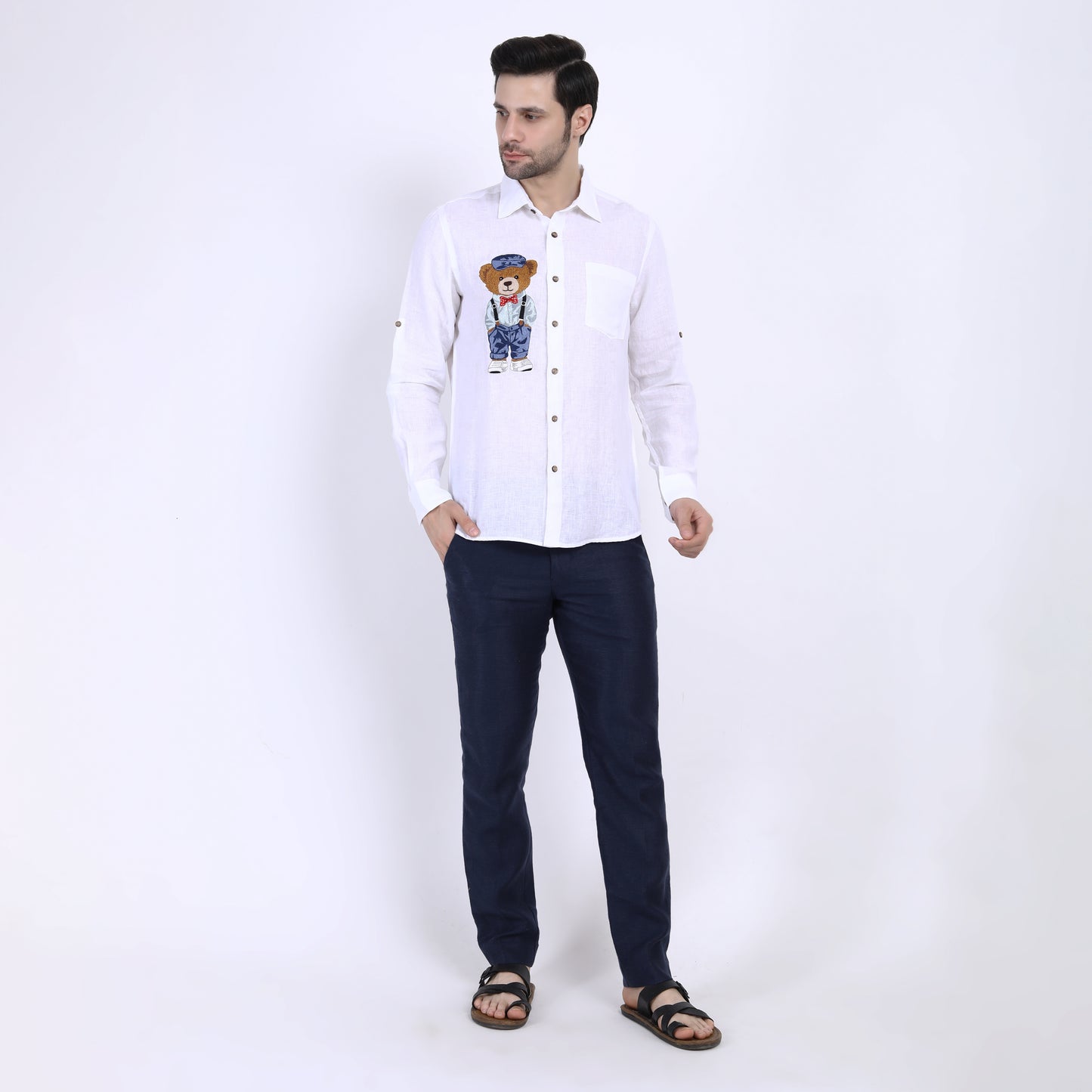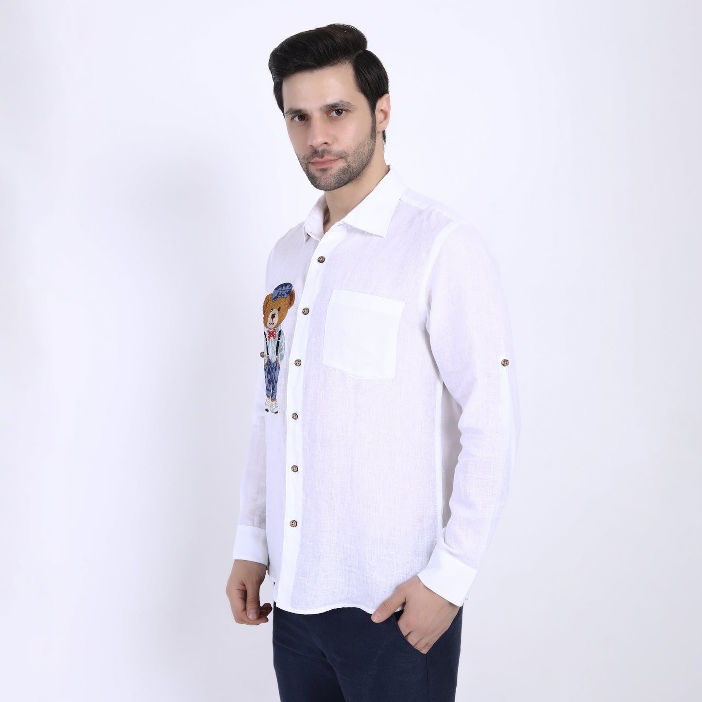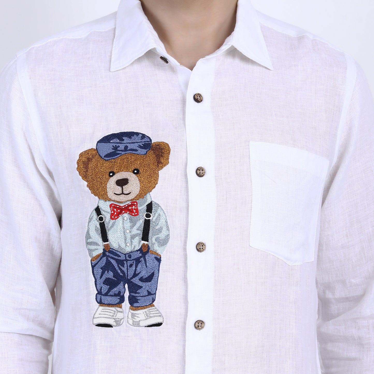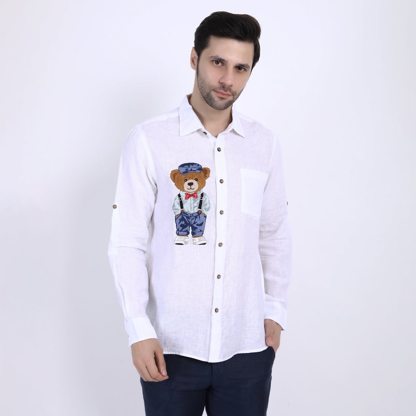 Make a playful yet confident statement with the Boss Teddy Embroidered Linen Shirt. Crafted from breathable linen fabric, it offers all-day comfort with a touch of fun. The bold teddy embroidery adds personality to your casual look. A unique pick for relaxed yet standout styling.