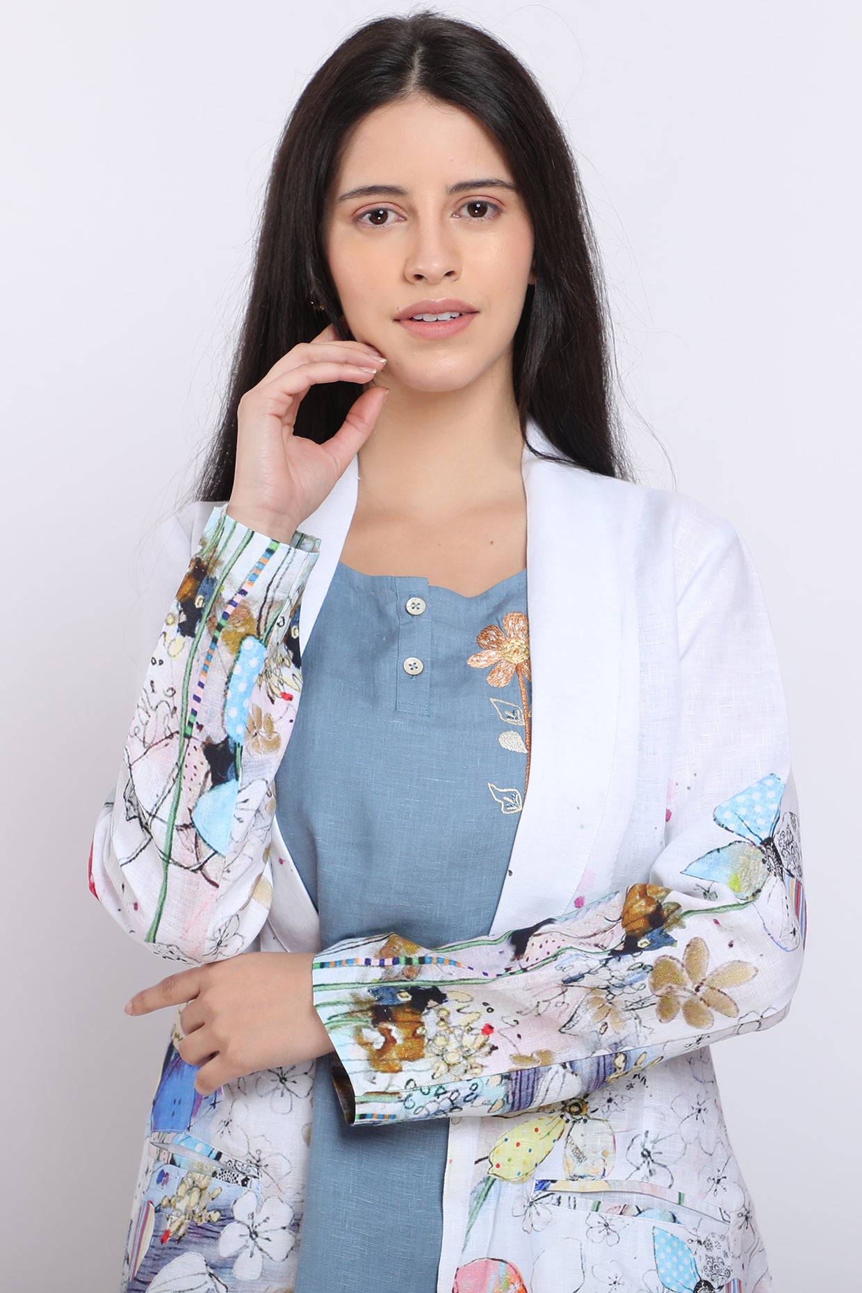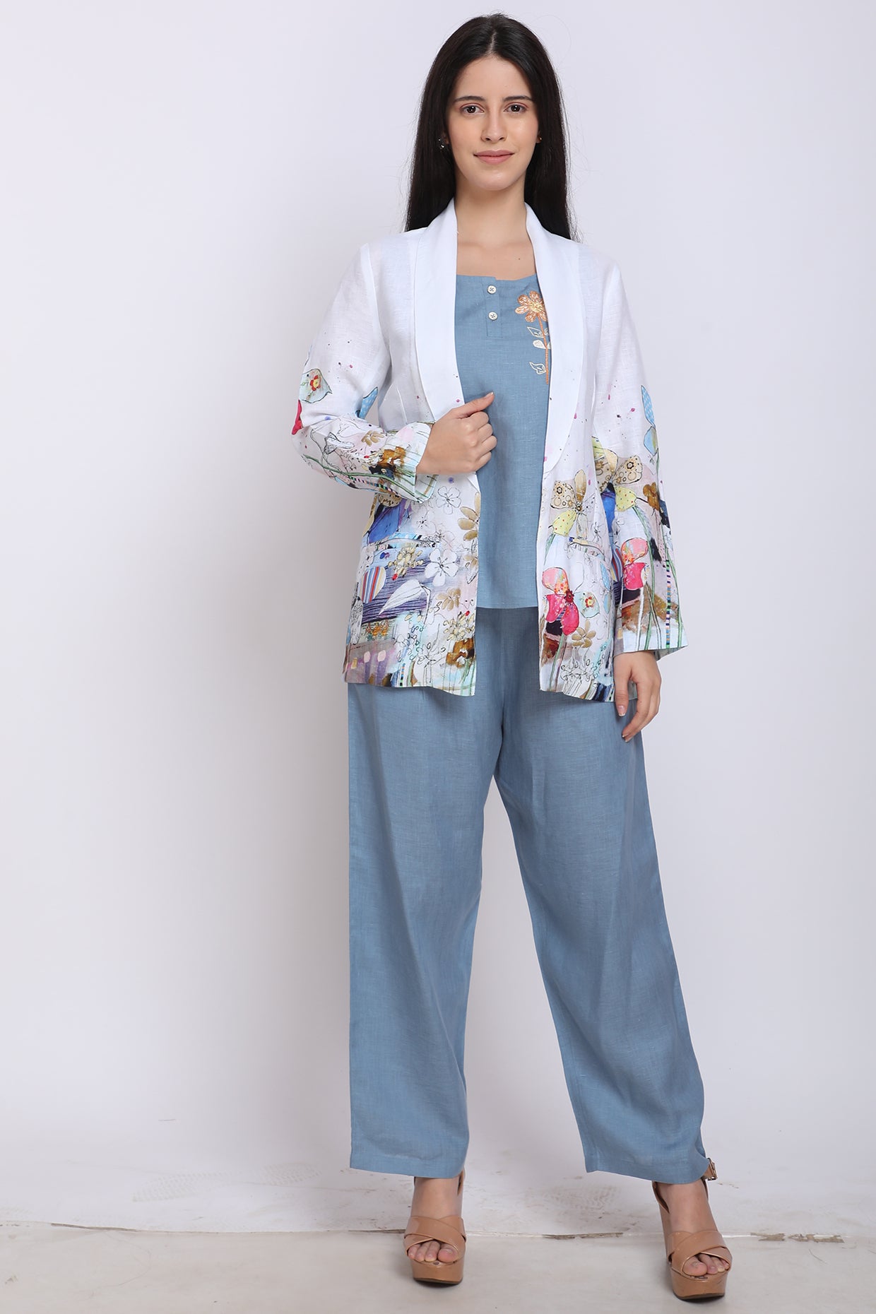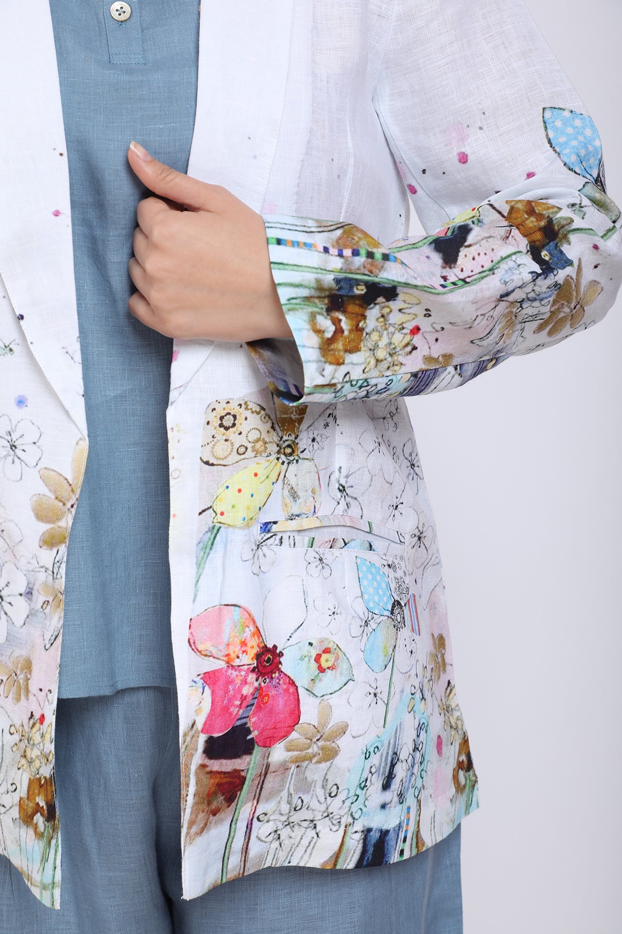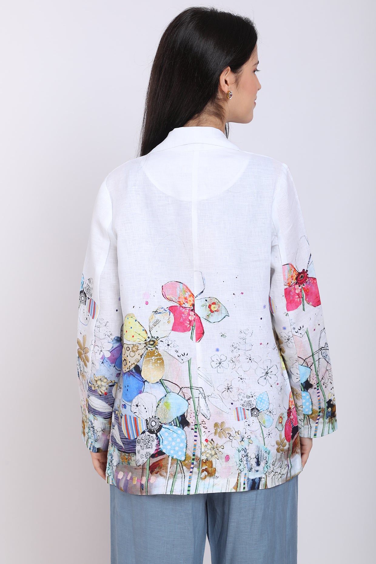 Featuring An Ivory Blazer In Pure Linen Base With Floral Print. This Contains Only One Piece.