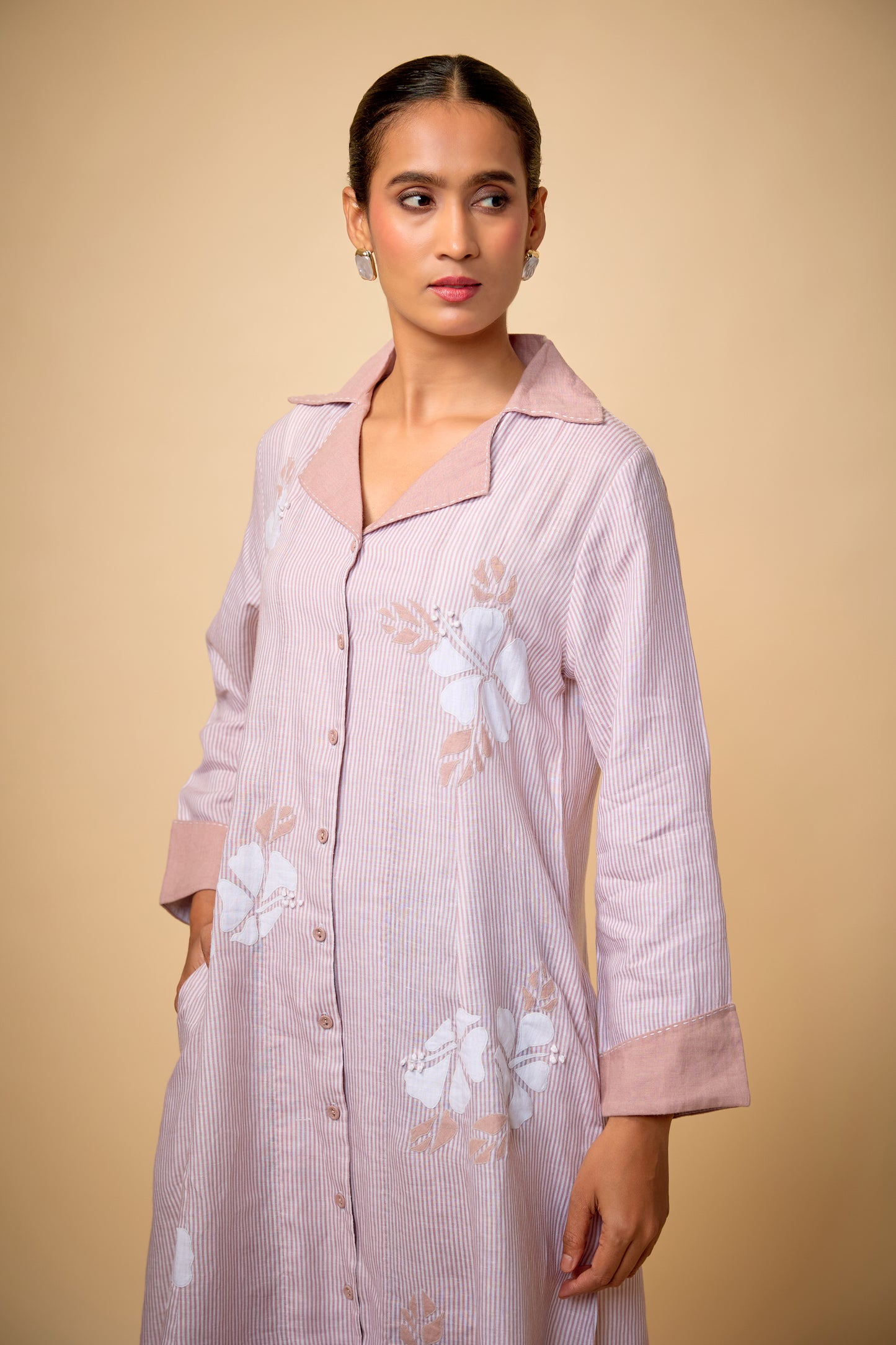 Pink Stripe Dress Crafted From 100% Pure Irish Linen, Offering A Light, Airy Feel With Natural Breathability. Designed With Soft Pink Stripes For A Fresh, Feminine Look, This Linen Dress Delivers Effortless Comfort And Timeless Charm—Perfect For Warm Days, Casual Outings, And Relaxed Summer Styling.
