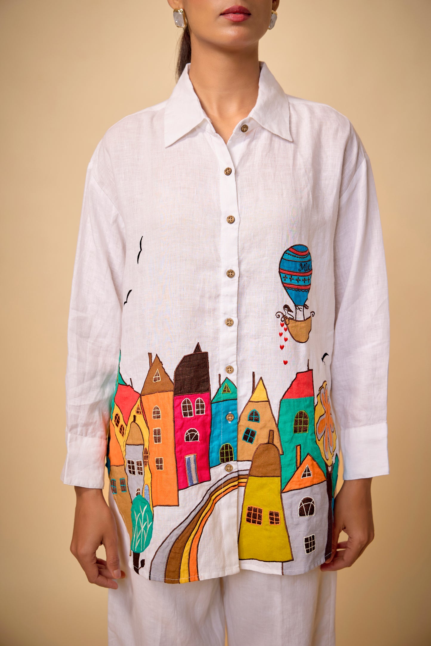 Pure Linen White Ambleside Ebroidered Big Shirt