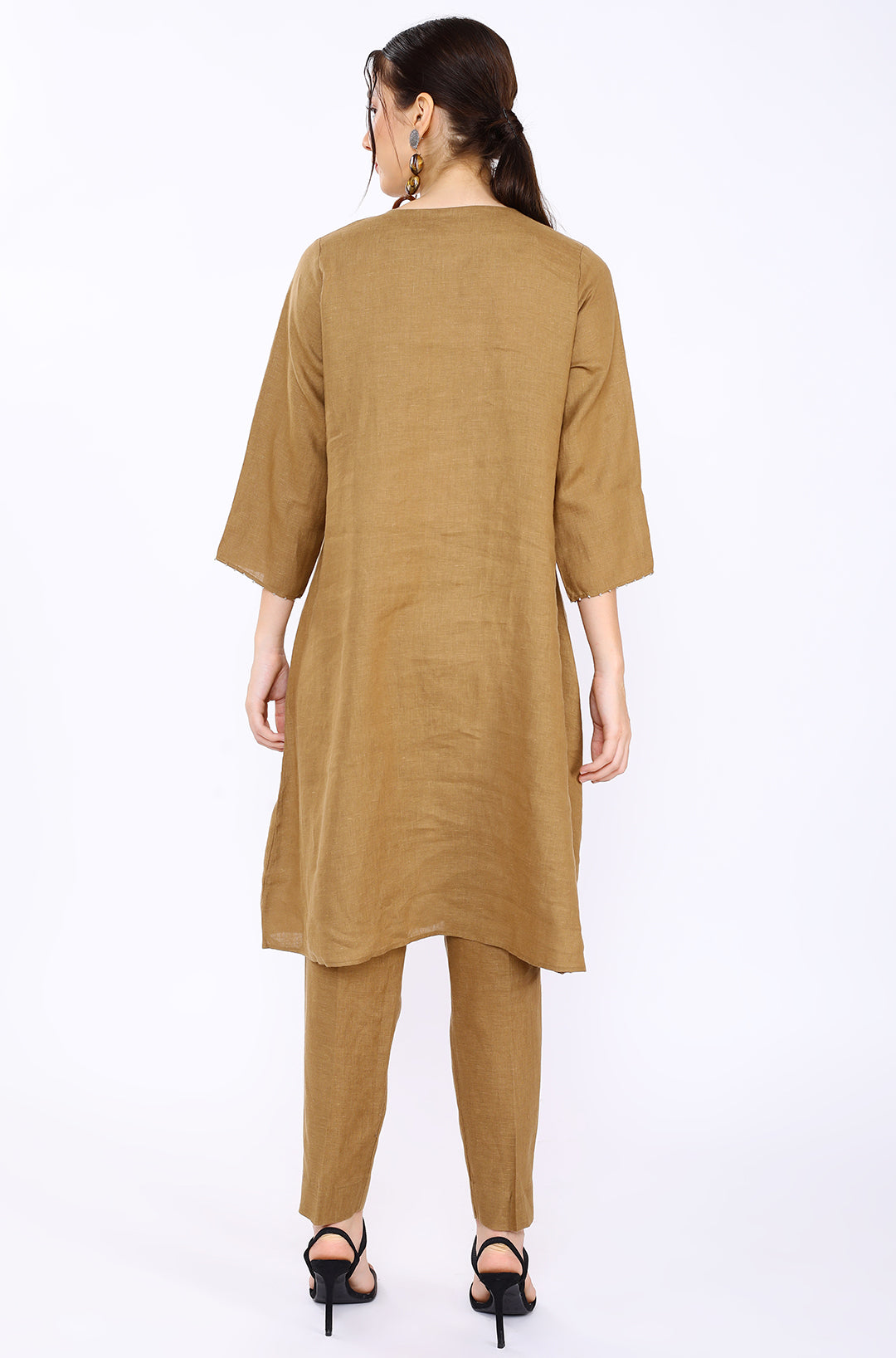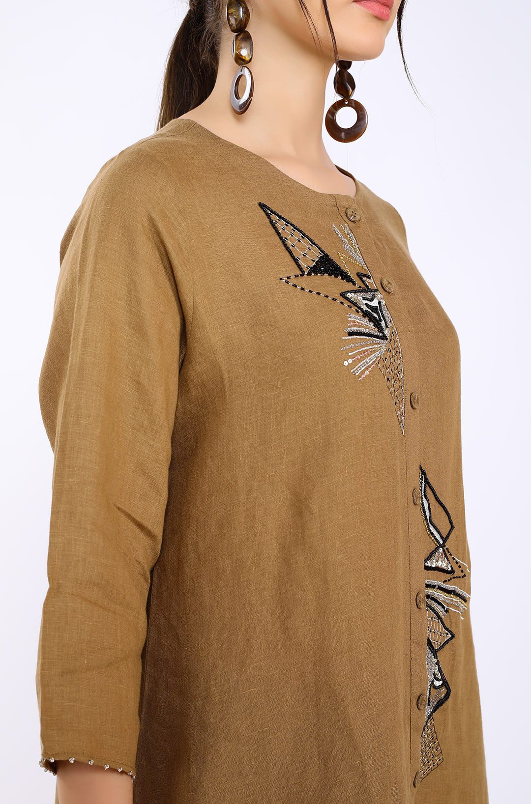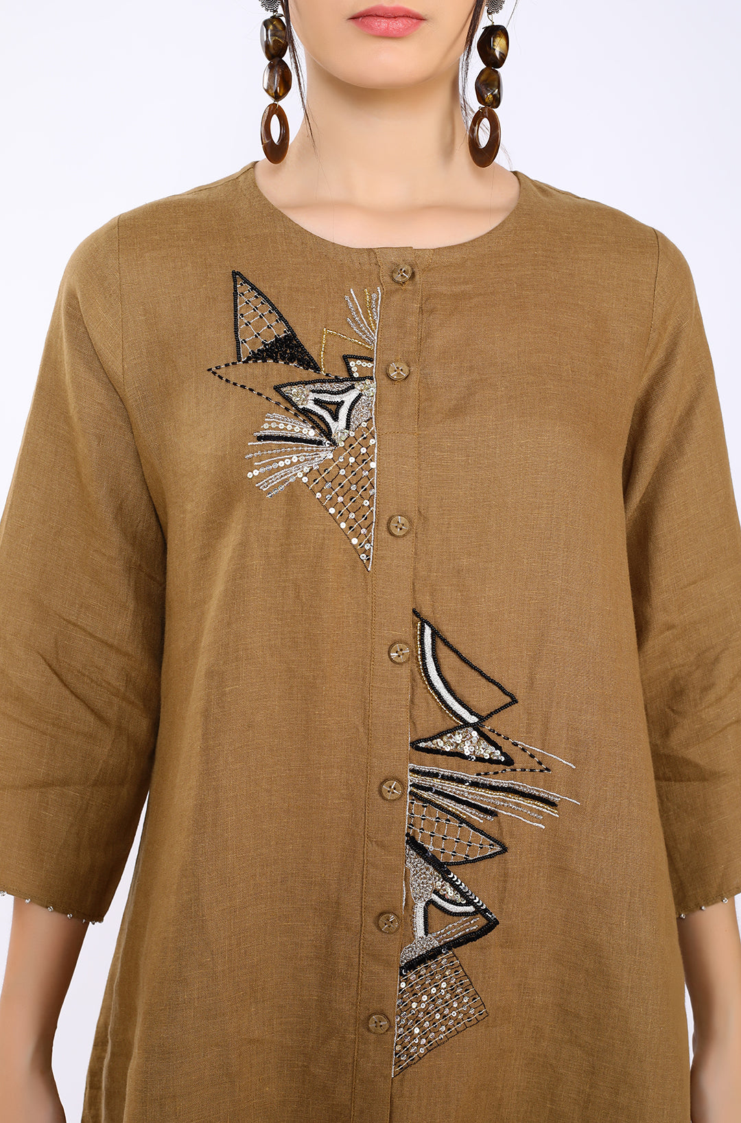 Tobacco Hand Embroidered Tunic Made In Finest Pure Linen With Soft Hand Feel